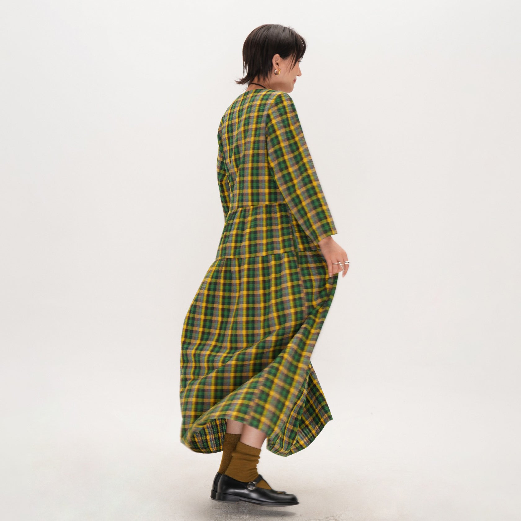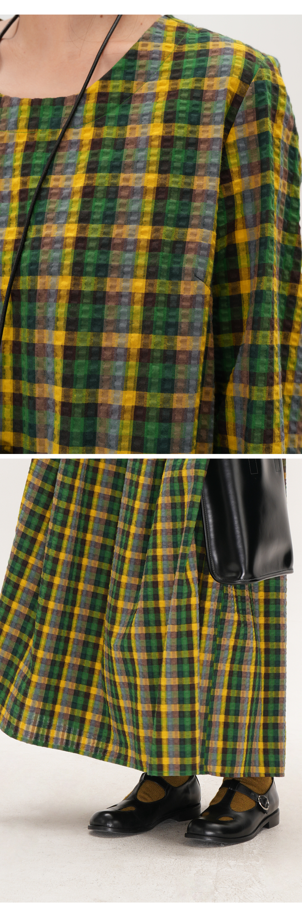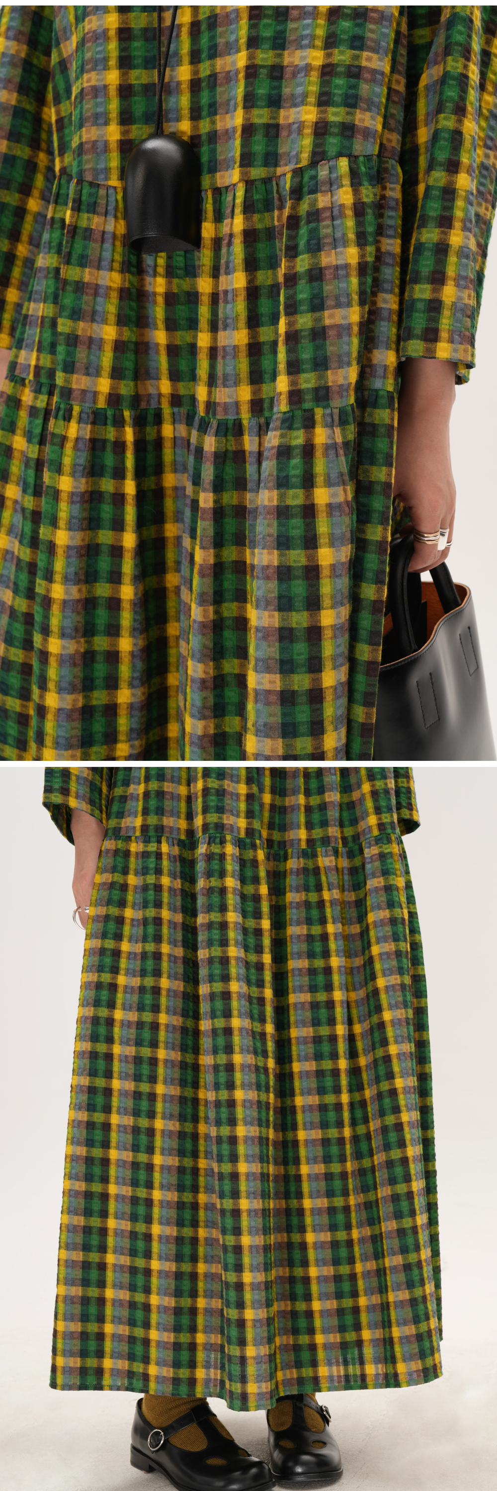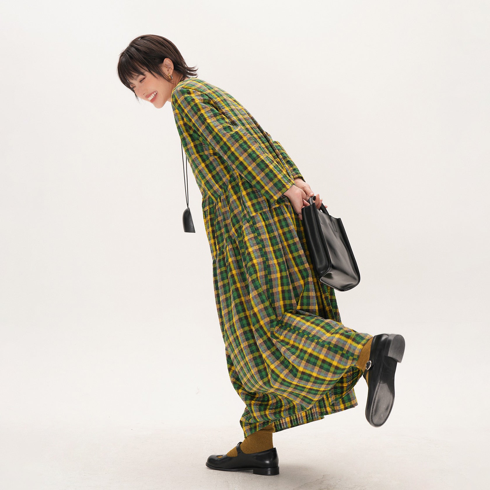 【商品名】【ワンピース】レトロ チェック ワンピース レディース ゆったり 体型カバー 大きいサイズ ミディアム丈 長袖 デザイン感 ワンピース【SHシリーズ】