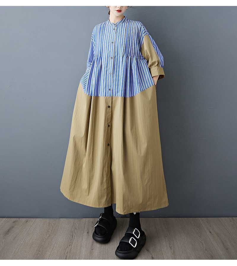 【ワンピース】フレンチレトロ 切替デザイン 大ポケット 長袖 ワンピース 秋新作 ゆったり 【JZシリーズ】