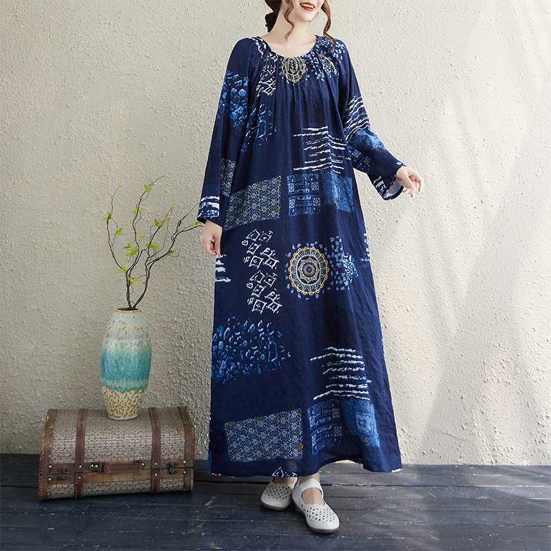 【ワンピース】フレンチレトロ 切替デザイン 大ポケット 長袖 ワンピース 秋新作 ゆったり 【JZシリーズ】