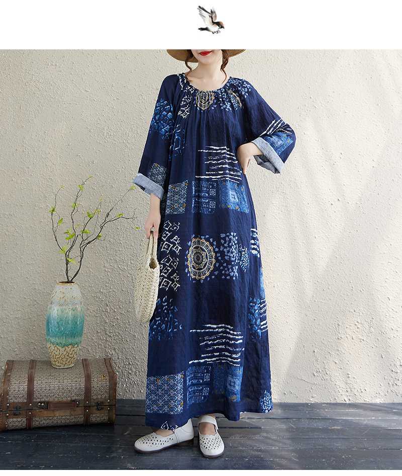 【商品名】【ワンピース】春 秋 夏 クルーネック ギャザー入り プリント 長袖 ワンピース 【SHシリーズ】
