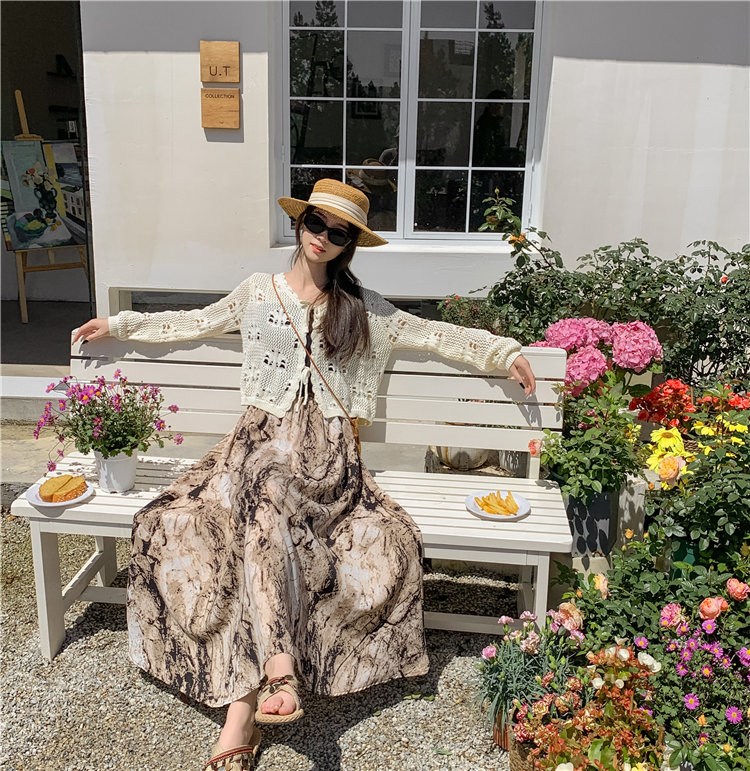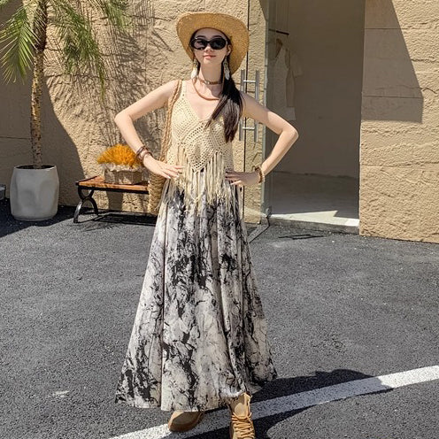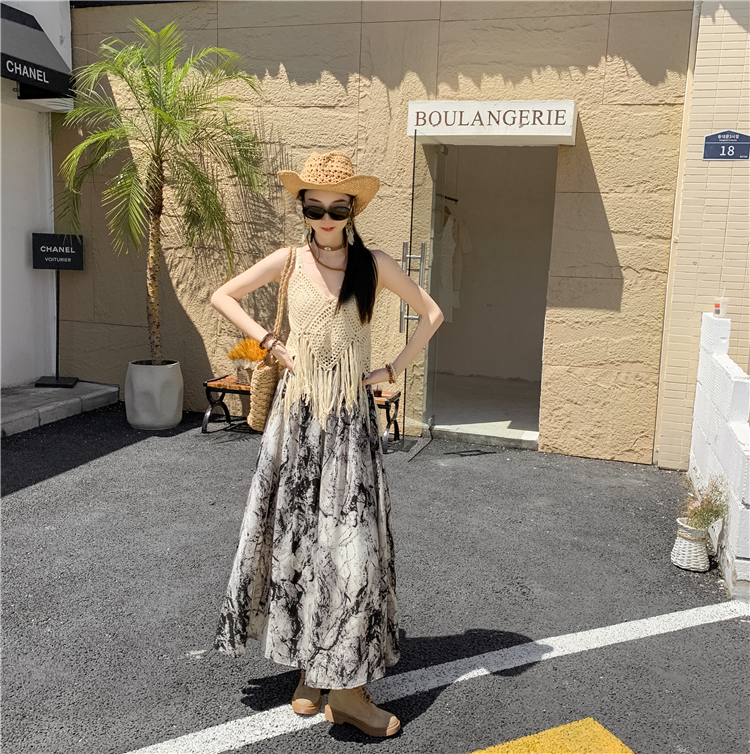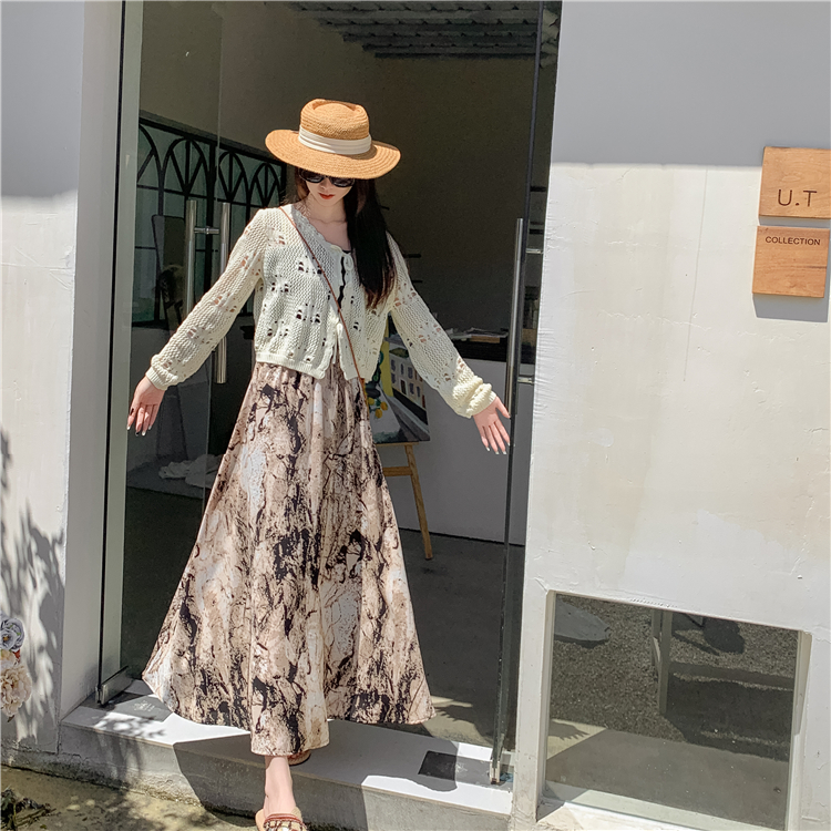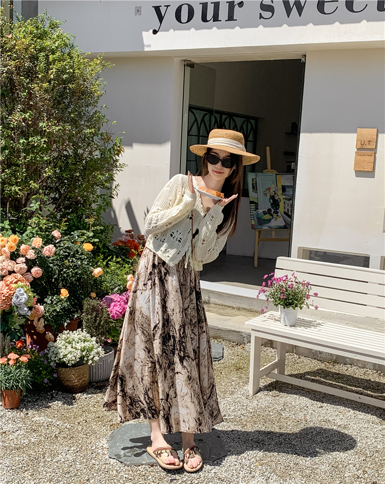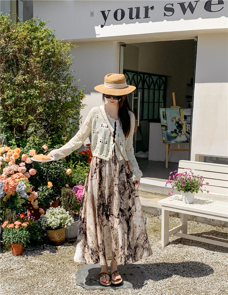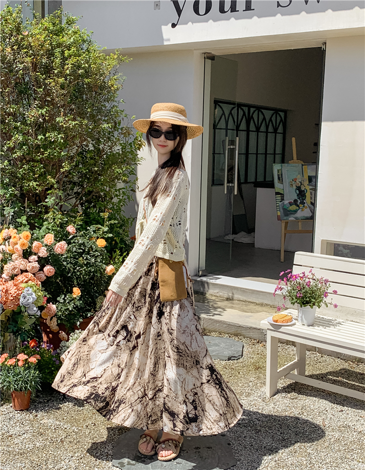 【商品名】【ボトムス】ハイウエスト レトロ水墨柄 フレアロングスカート Aライン シフォンスカート【SHシリーズ】