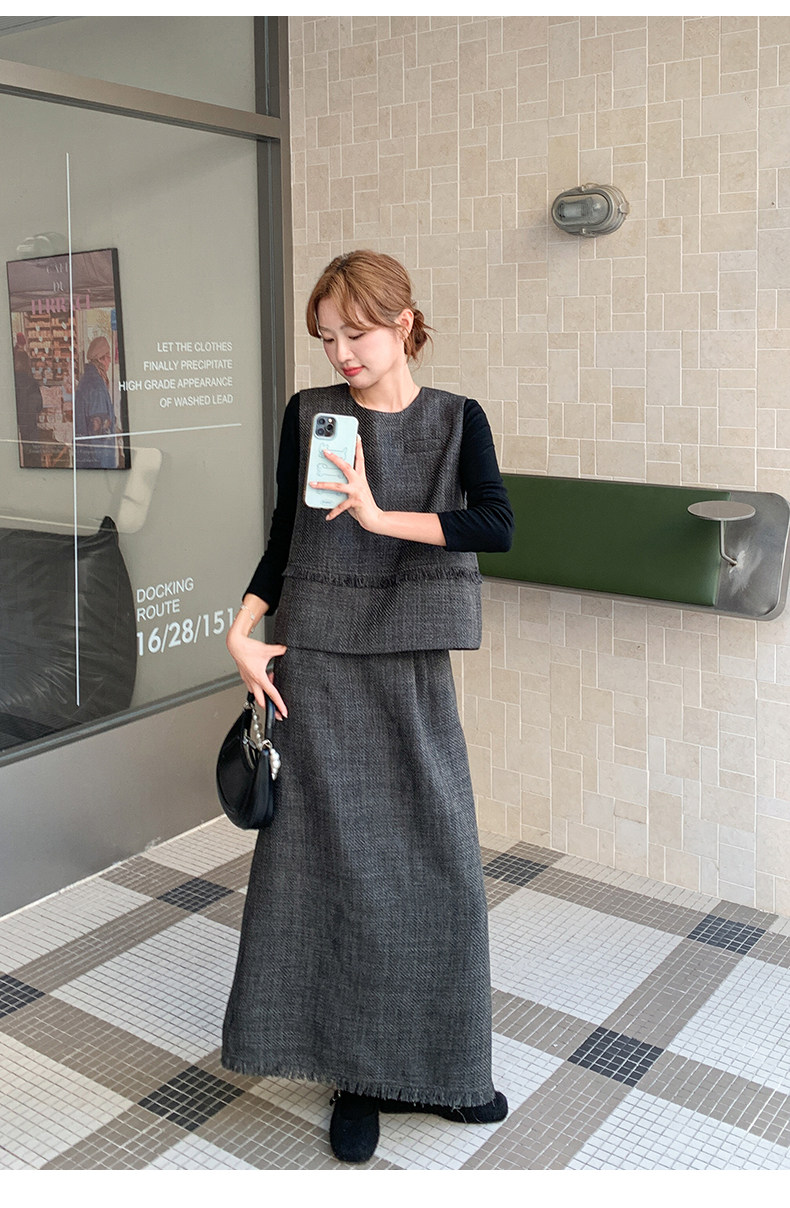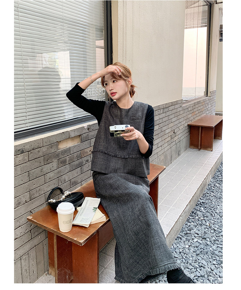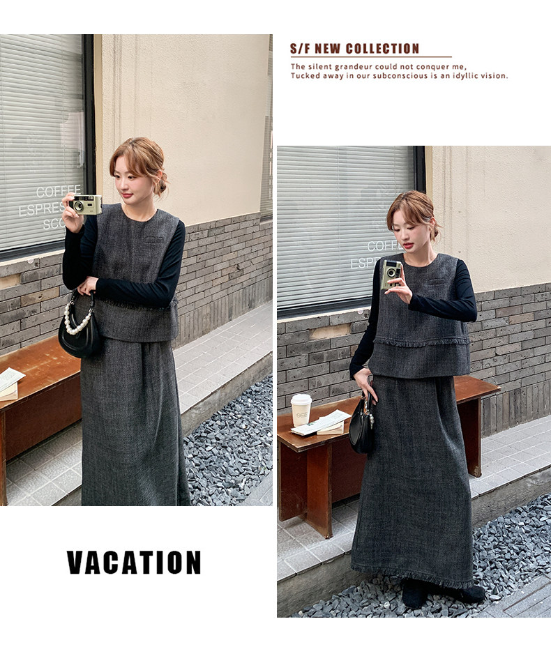【商品名】3点セット!【セットアップ】レトロ カジュアル タンクトップ&Tシャツ&スカート 上下セット 上品 トレンド感 大人気 かわいい三点セット【JZシリーズ】