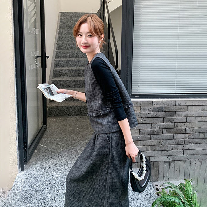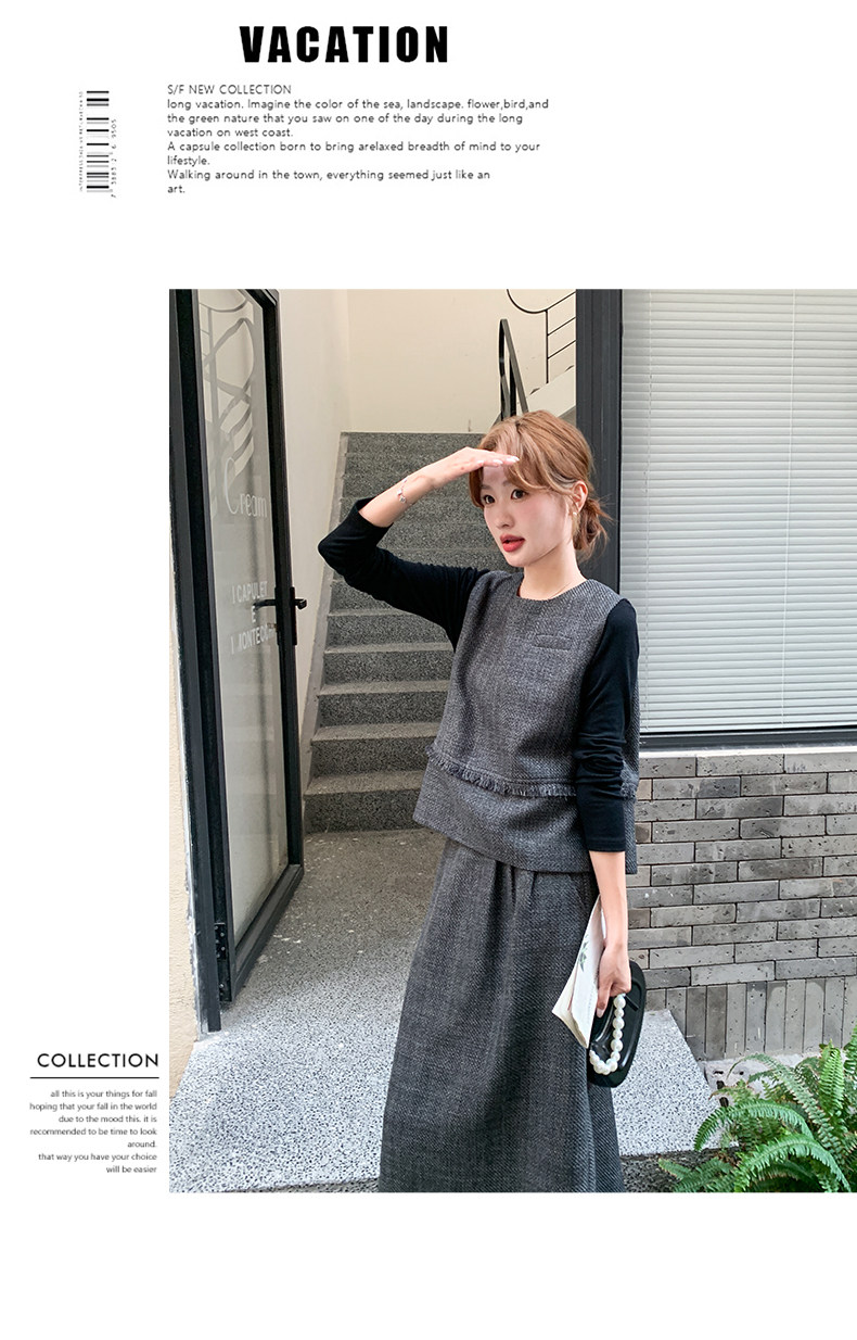 3点セット!【セットアップ】レトロ カジュアル タンクトップ&Tシャツ&スカート 上下セット 上品 トレンド感 大人気 かわいい三点セット【JZシリーズ】