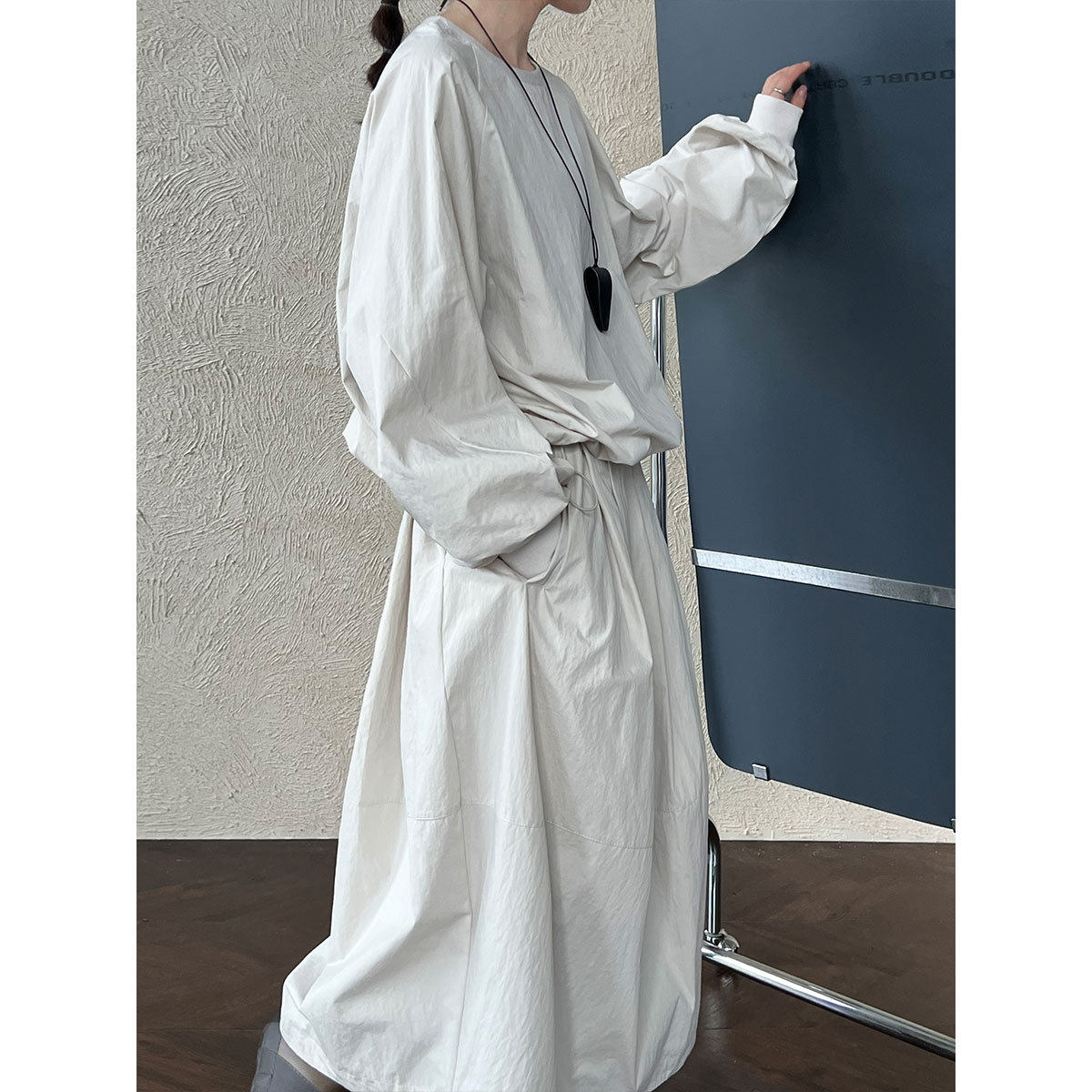 【商品名】【セットアップ】春 秋 スポーツ風 ツーピース ラウンドネック Tシャツ + スカート 2点上下セット 【JZシリーズ】
