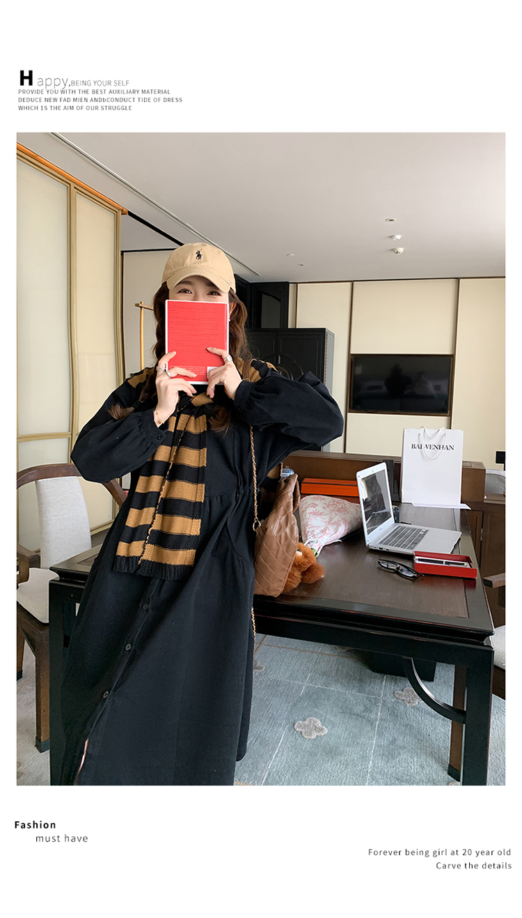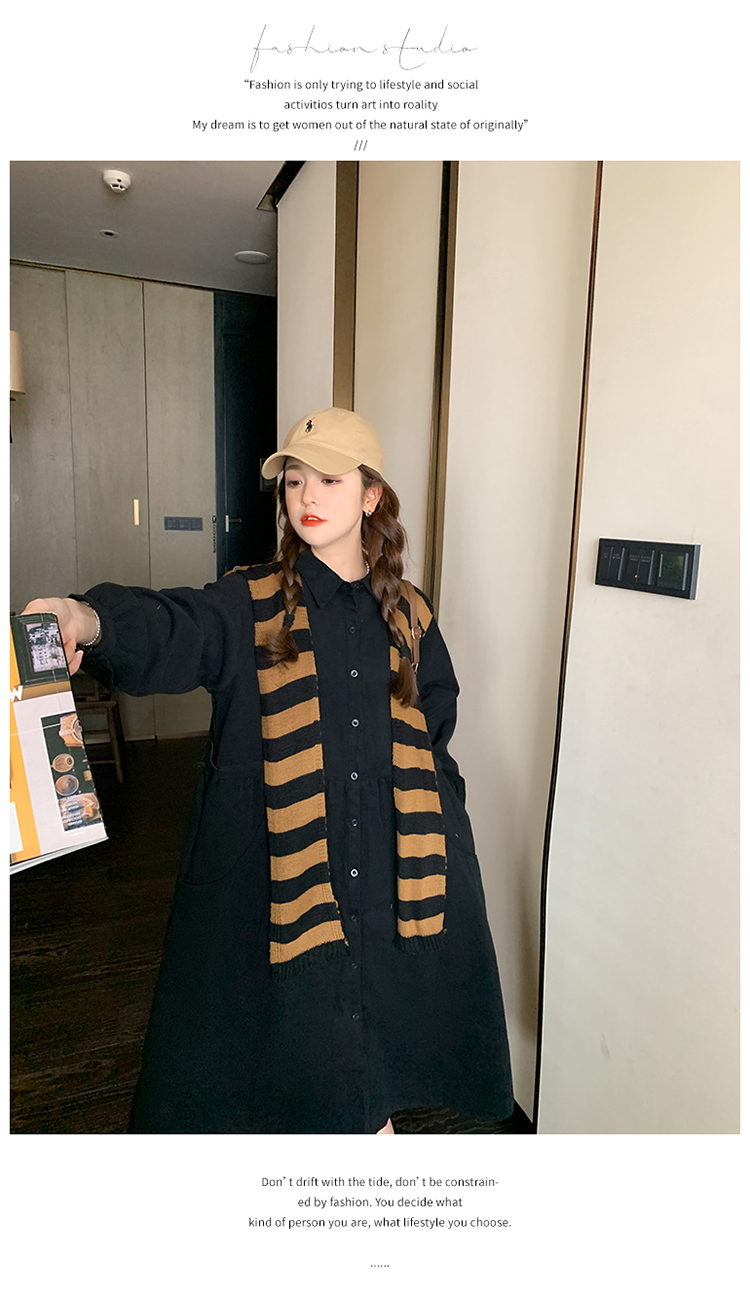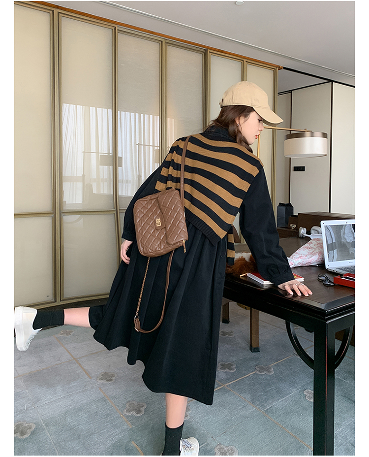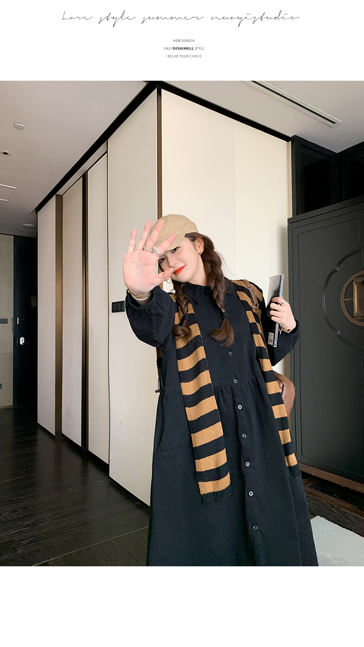 【商品名】【ワンピース】ヴィンテージ風 ストライプショールワンピース 春秋 Aライン ゆったり 韓国風 長袖ワンピース【JZシリーズ】