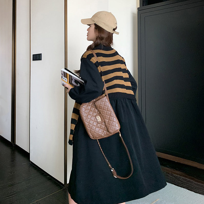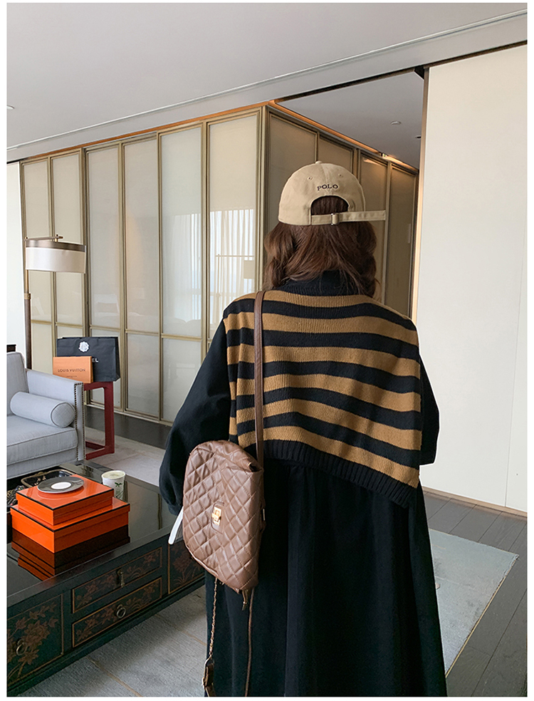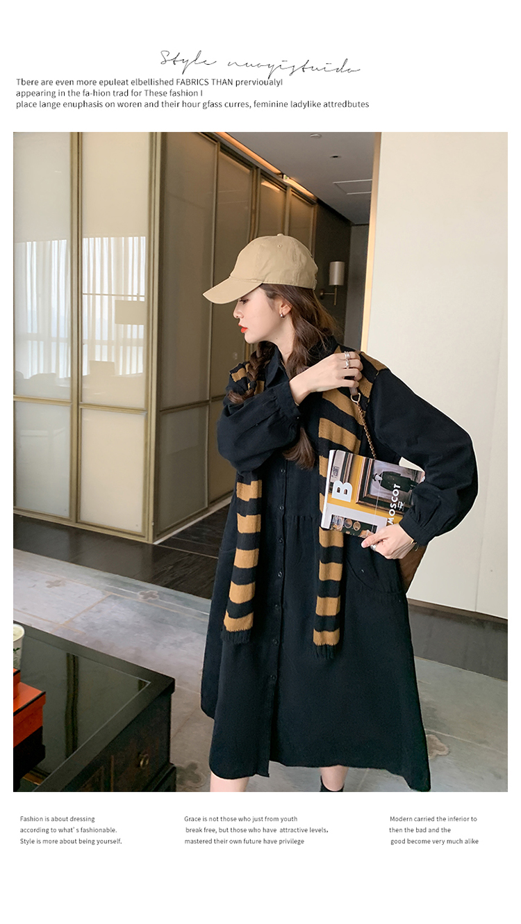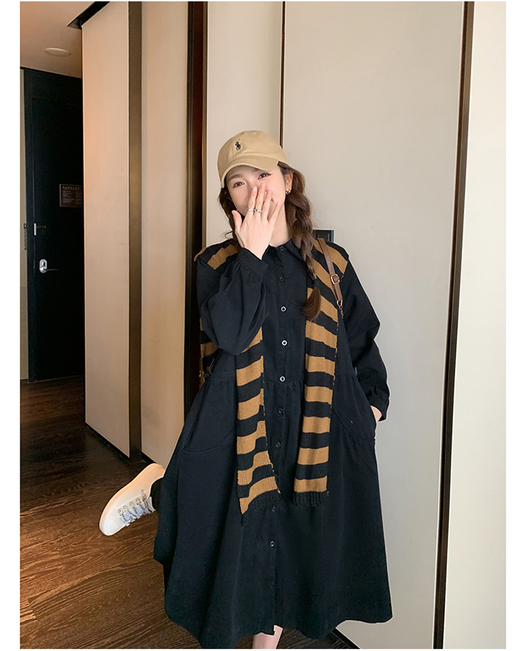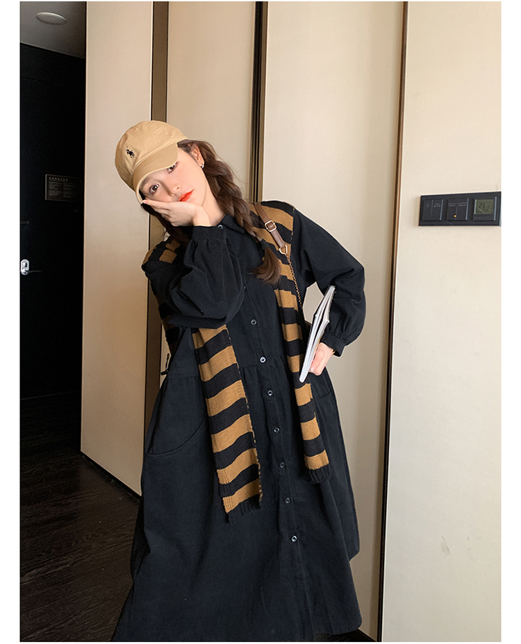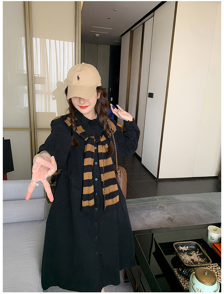 【商品名】【ワンピース】ヴィンテージ風 ストライプショールワンピース 春秋 Aライン ゆったり 韓国風 長袖ワンピース【JZシリーズ】