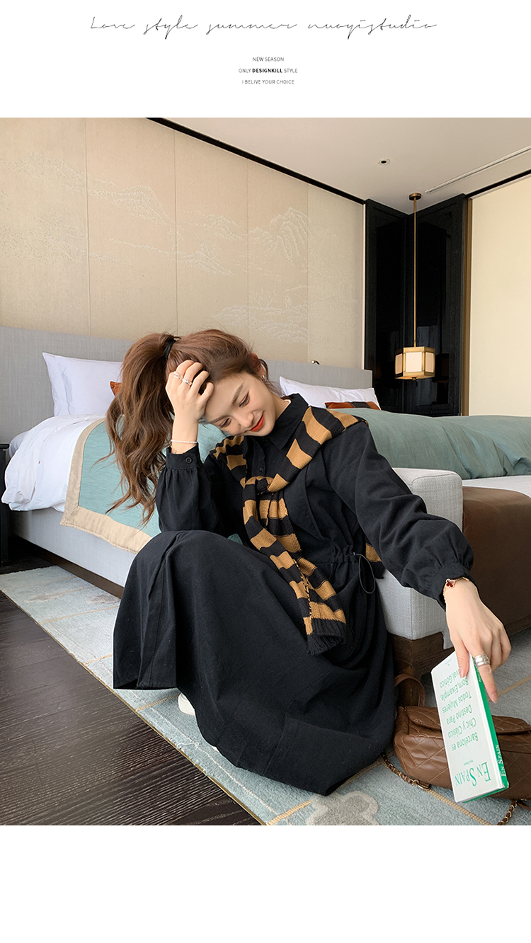 【ワンピース】フレンチレトロ 切替デザイン 大ポケット 長袖 ワンピース 秋新作 ゆったり 【JZシリーズ】