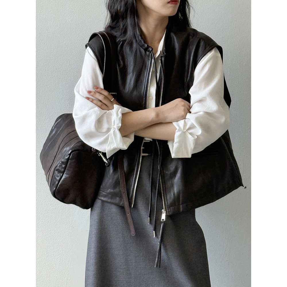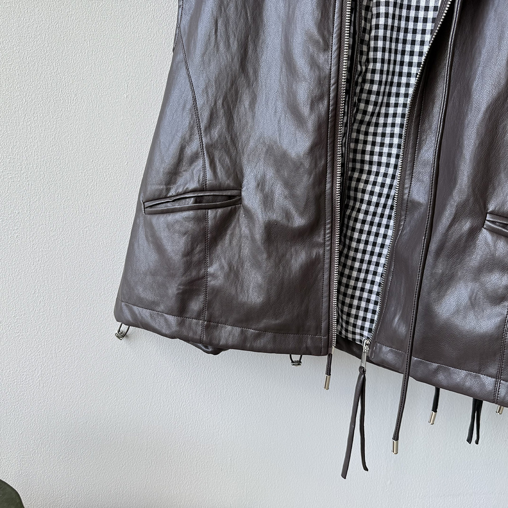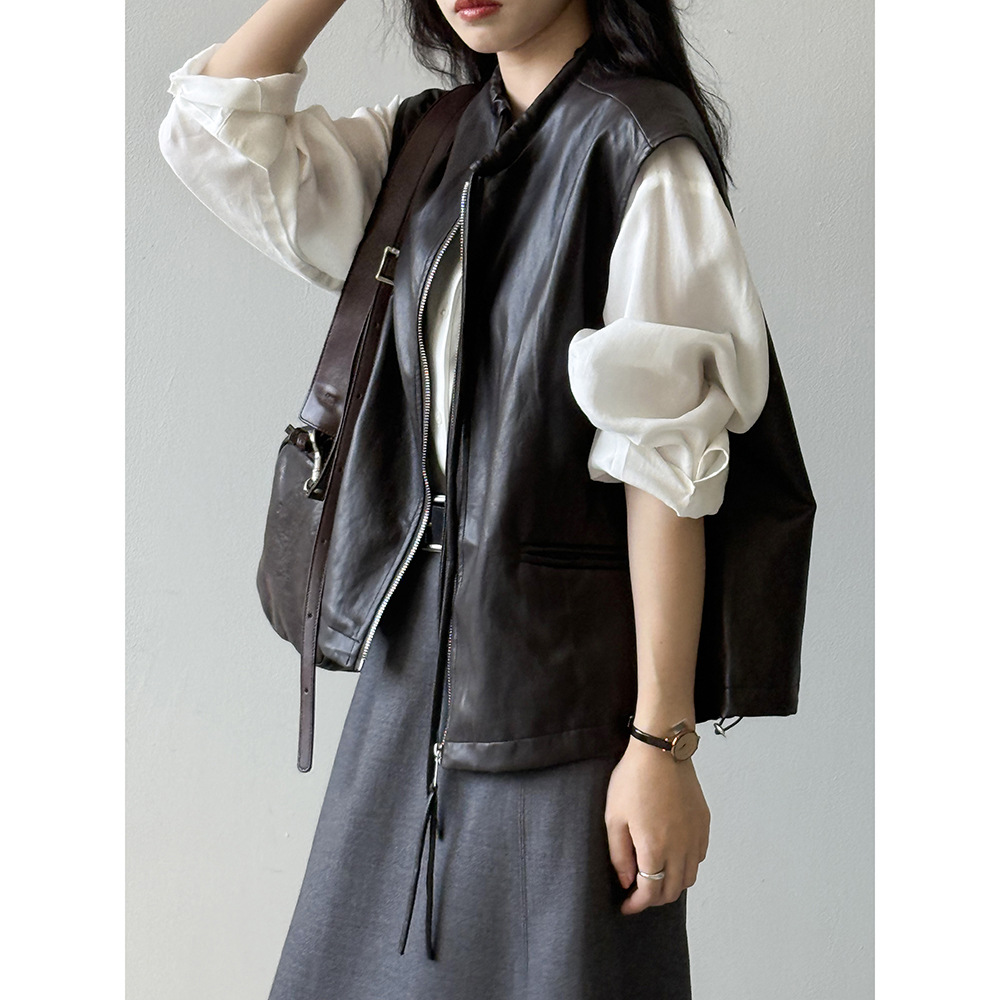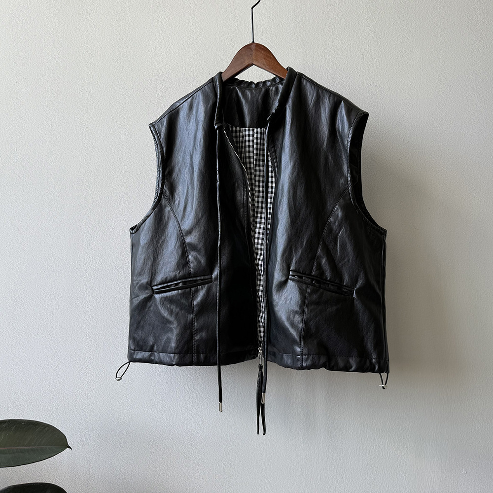 【商品名】【トップス】春 秋 冬 秋新作 フレンチ デザイン ノースリーブ レザーベスト 【JZシリーズ】