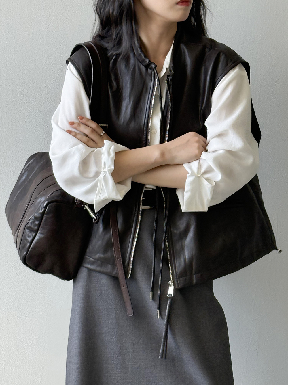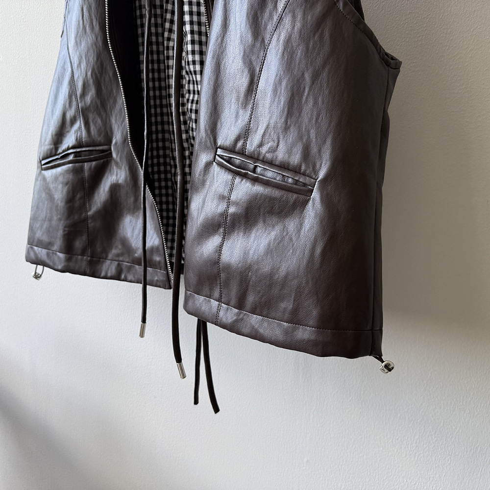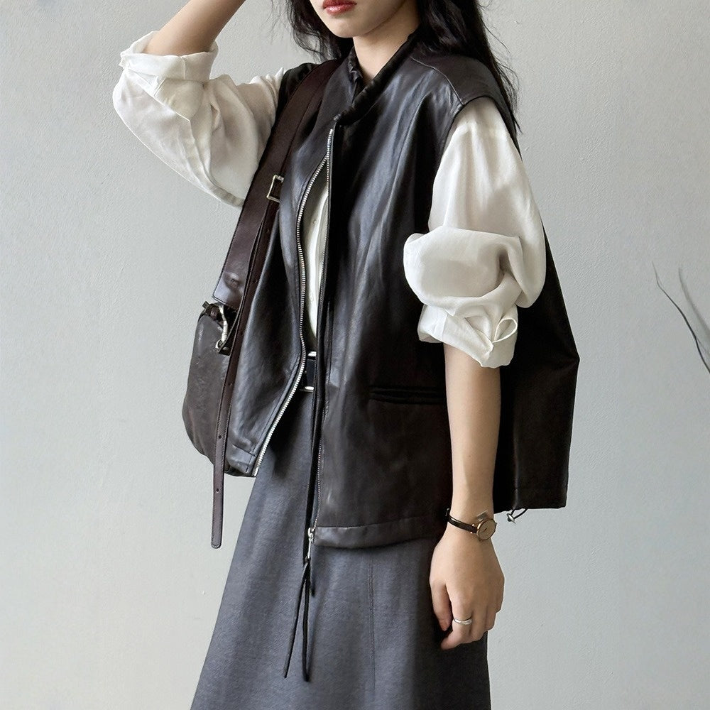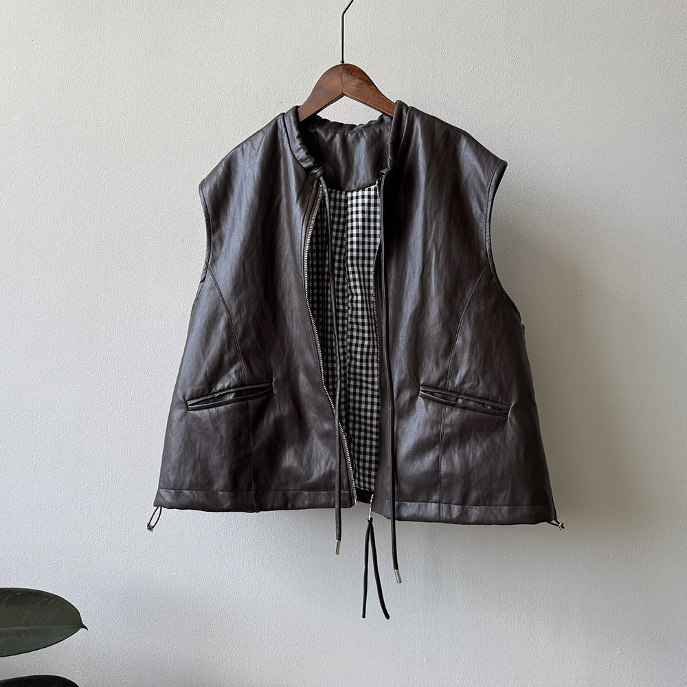 【商品名】【トップス】春 秋 冬 秋新作 フレンチ デザイン ノースリーブ レザーベスト 【JZシリーズ】