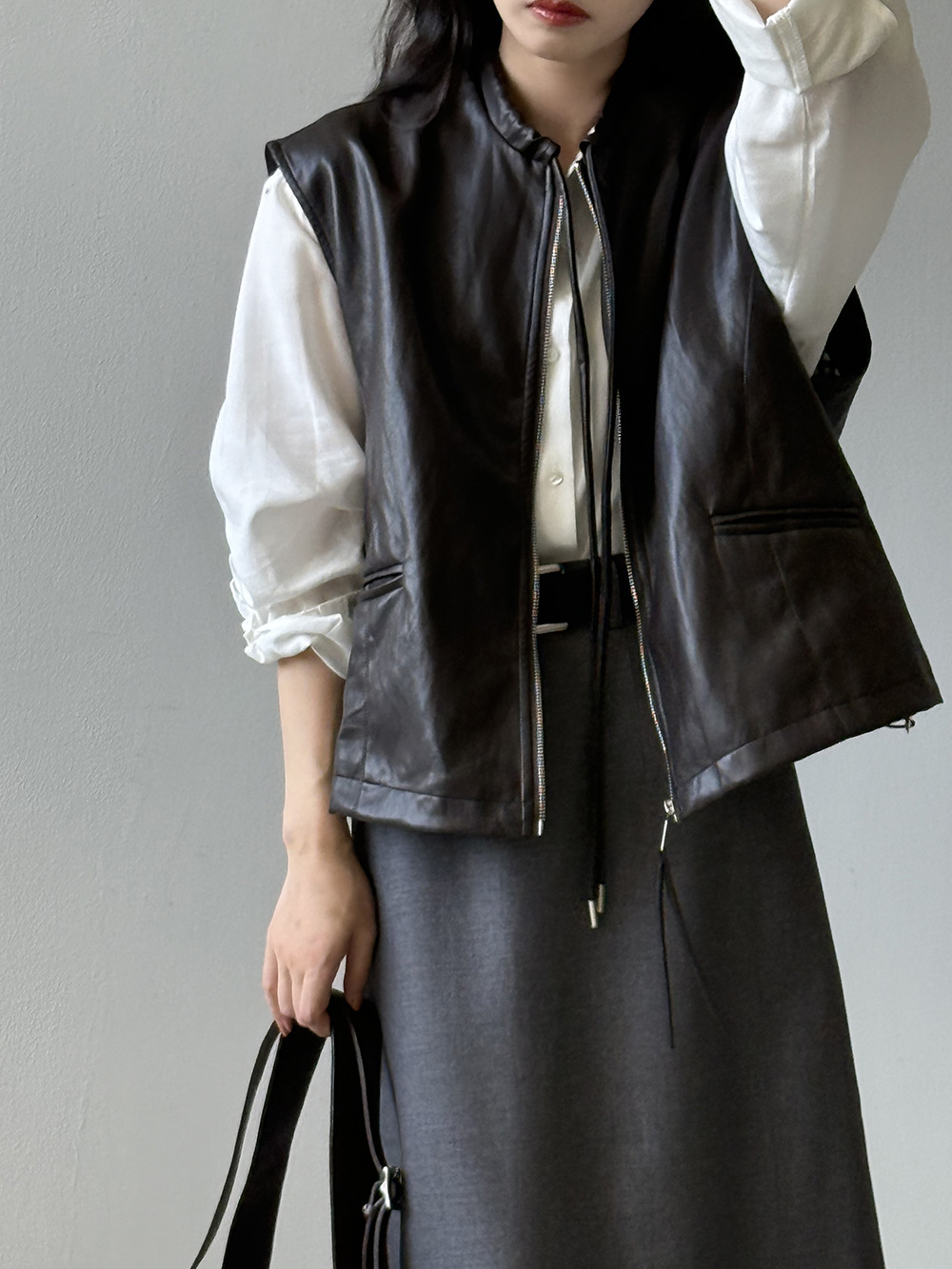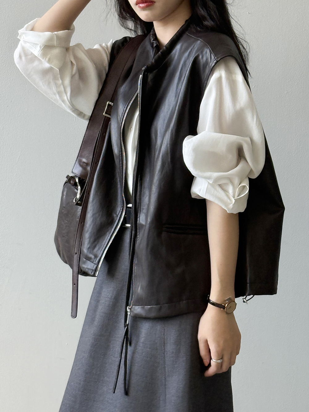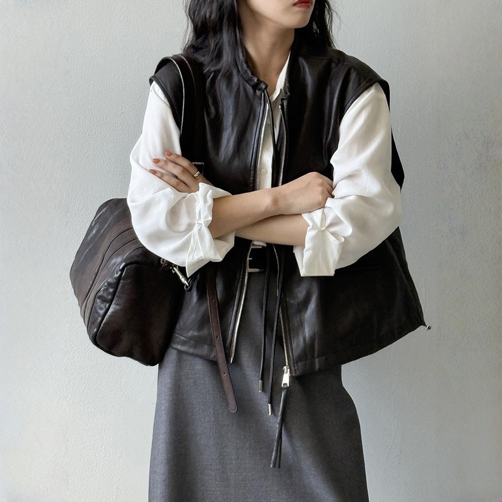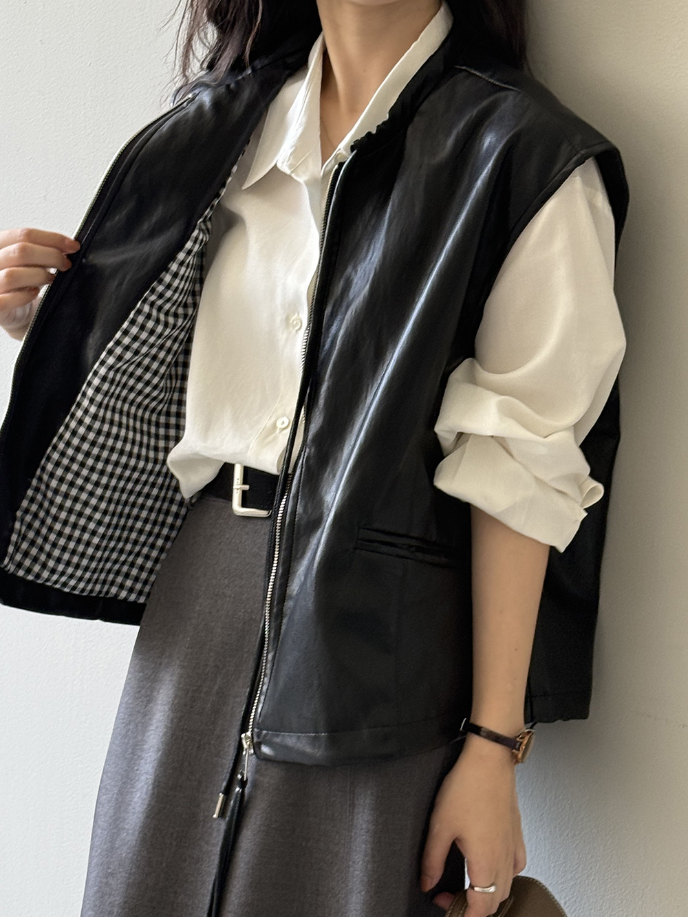 【商品名】【トップス】春 秋 冬 秋新作 フレンチ デザイン ノースリーブ レザーベスト 【JZシリーズ】