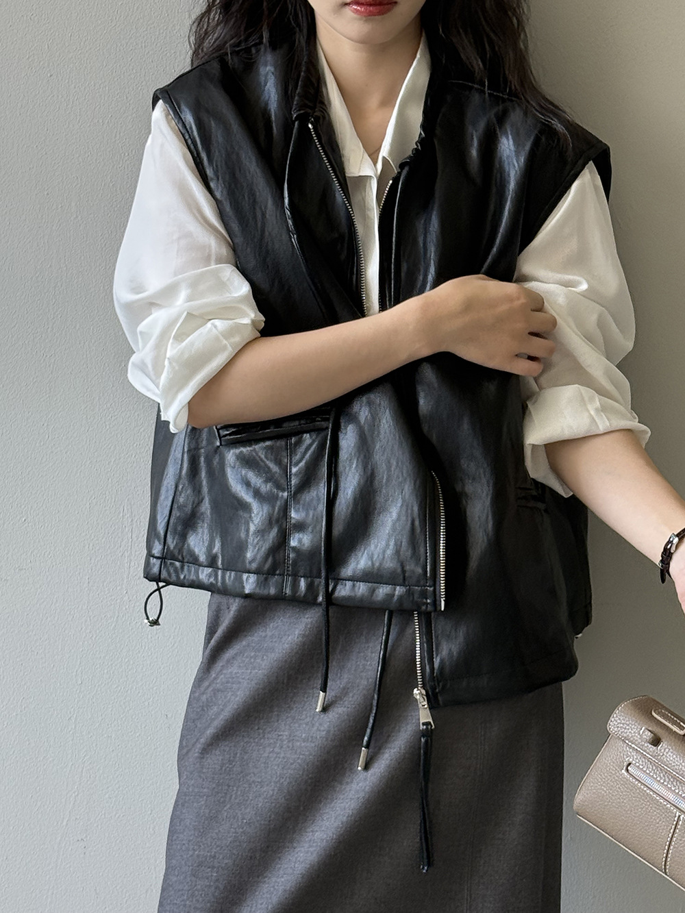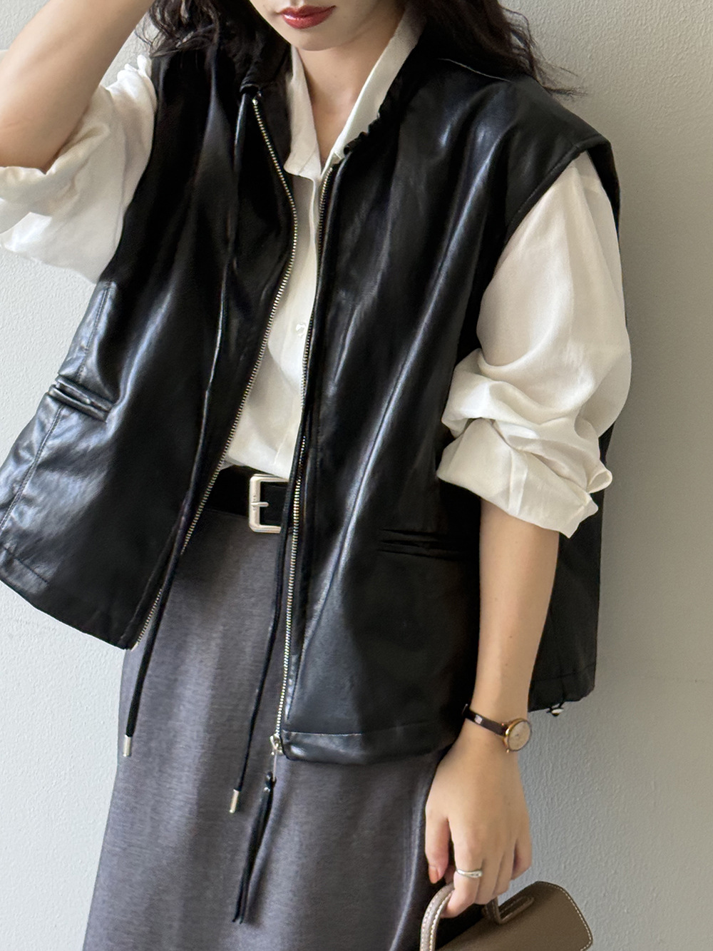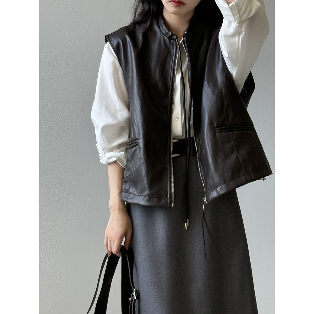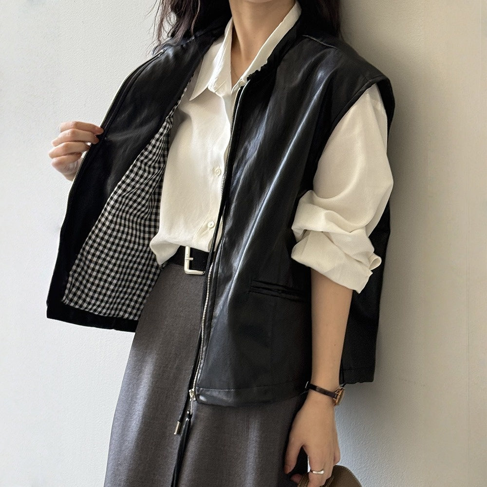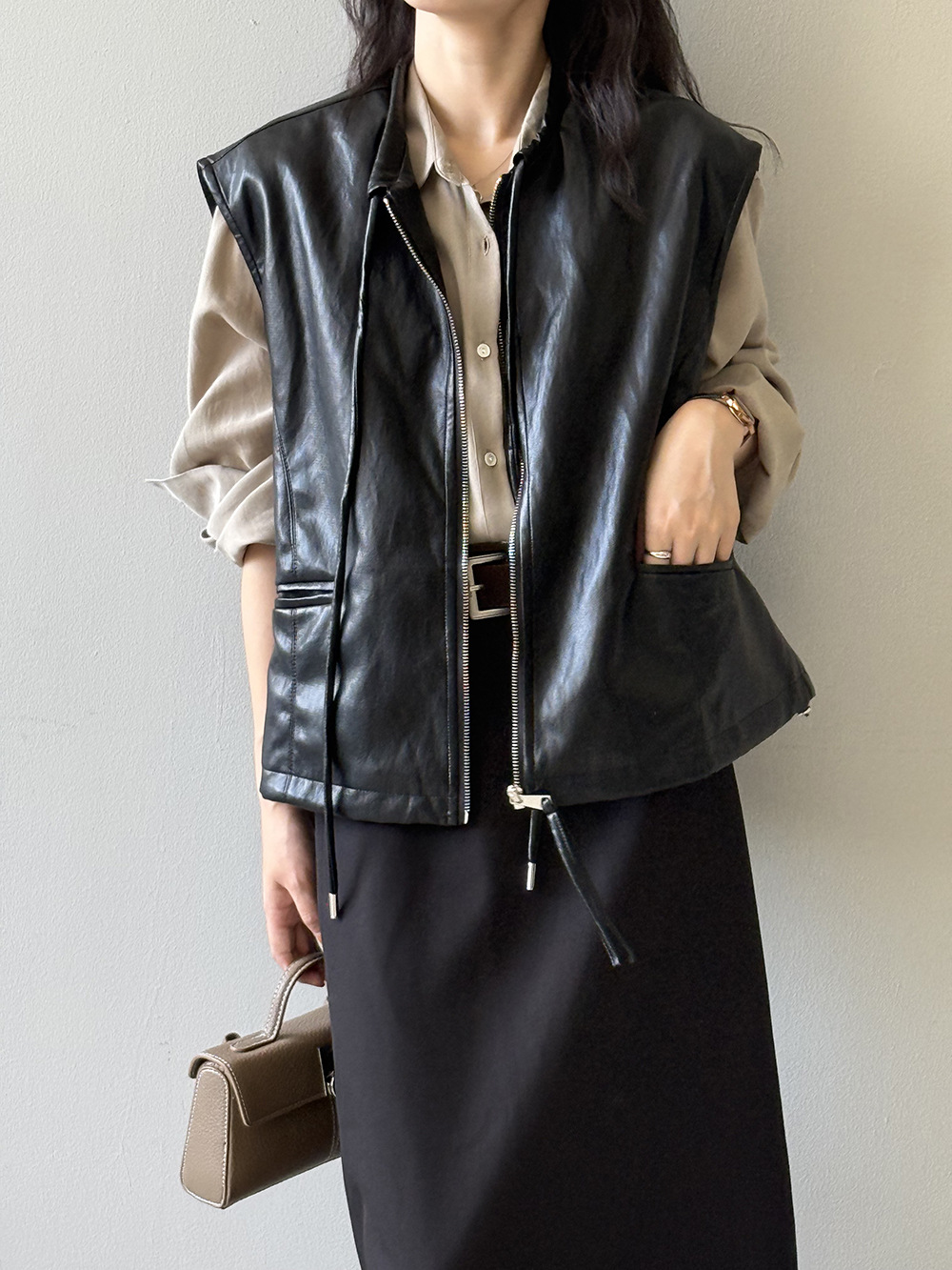 【トップス】春 秋 冬 秋新作 フレンチ デザイン ノースリーブ レザーベスト 【JZシリーズ】