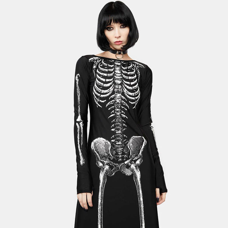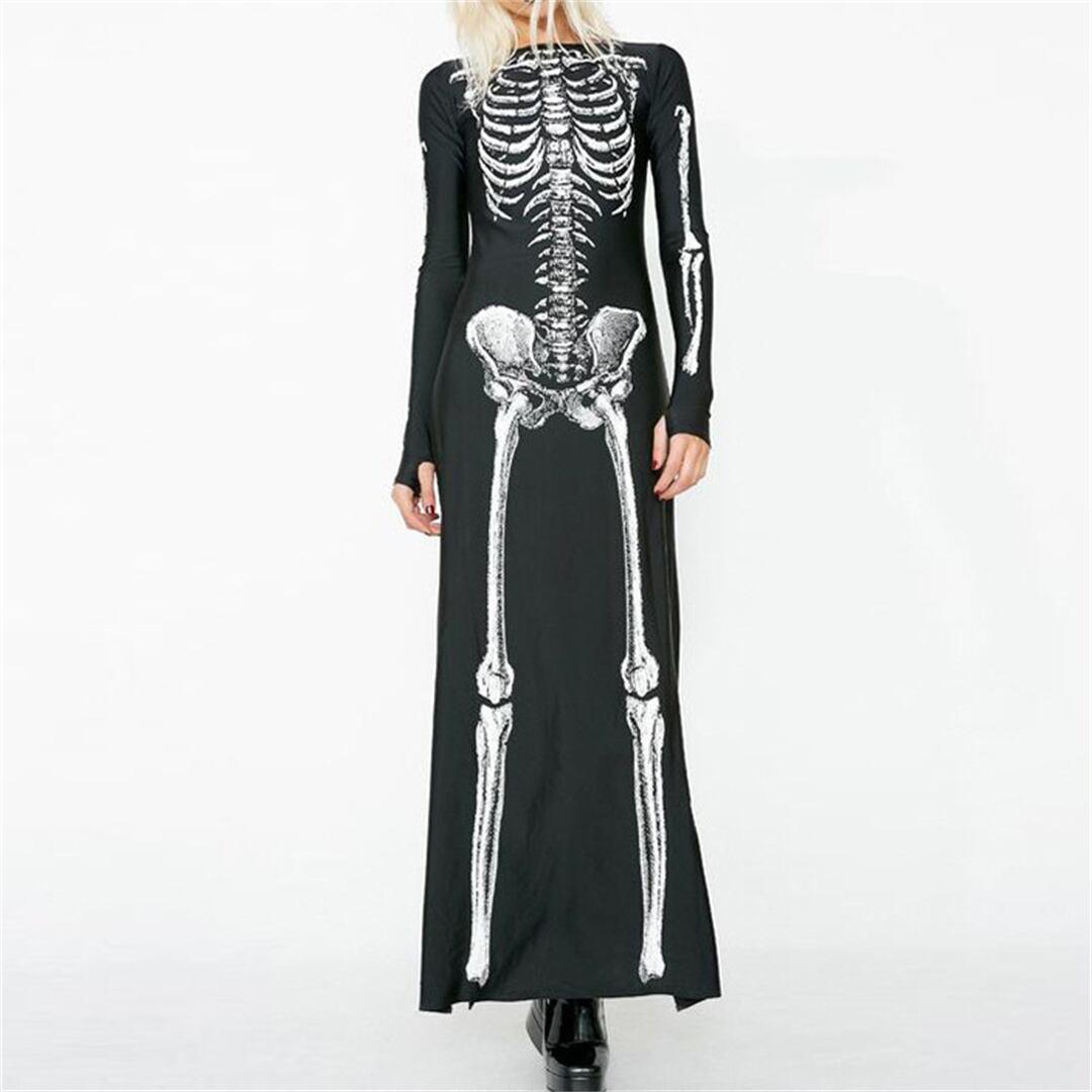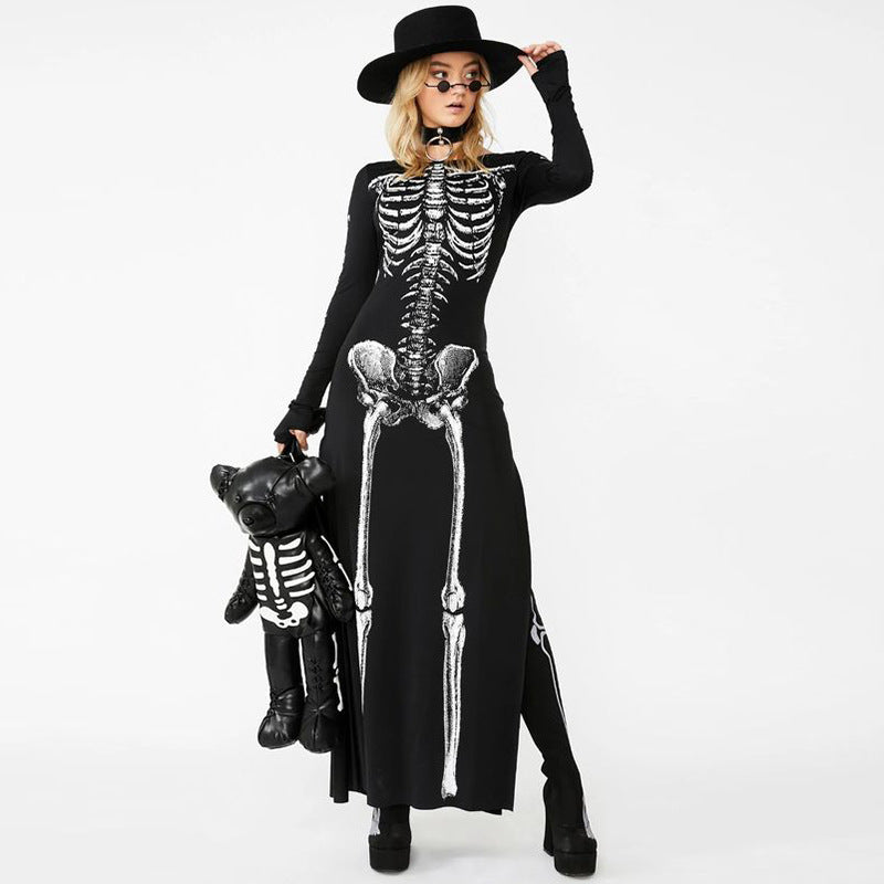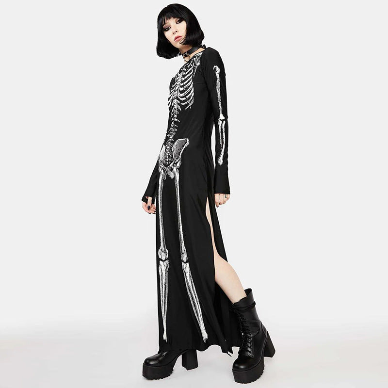 【ハロウィン】新作 個性 セクシー ロングワンピース コスプレ プリント スカル柄