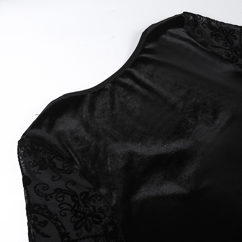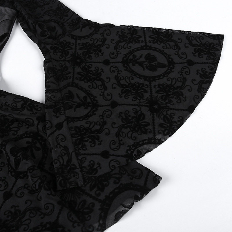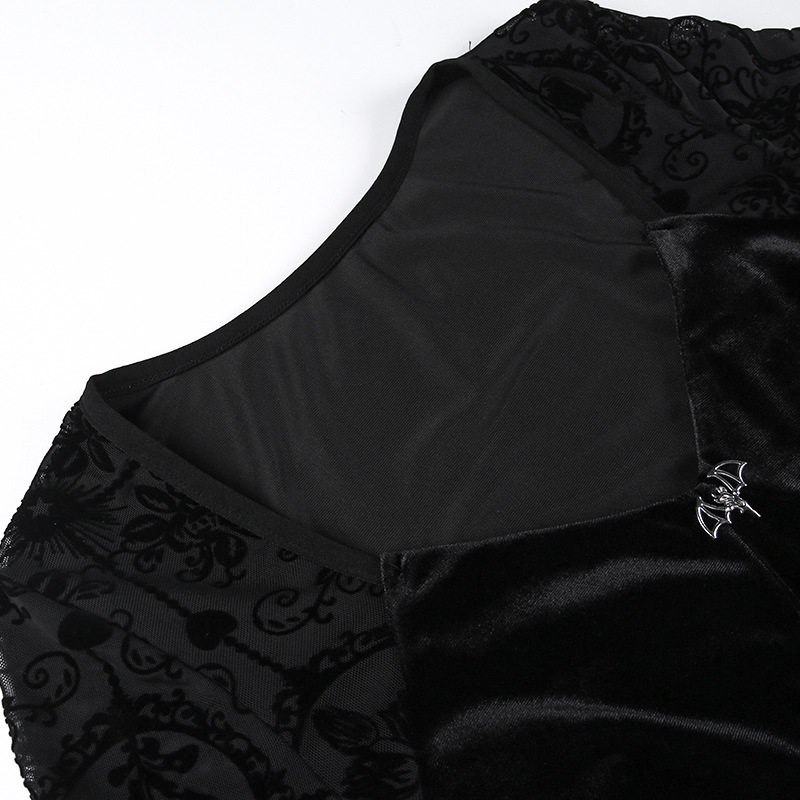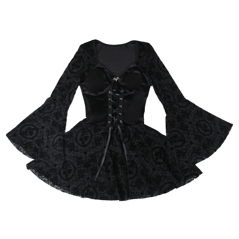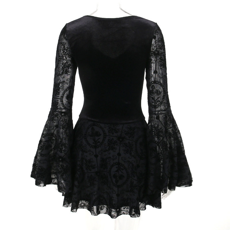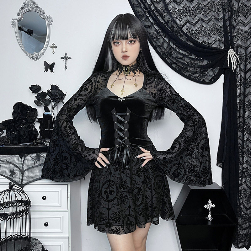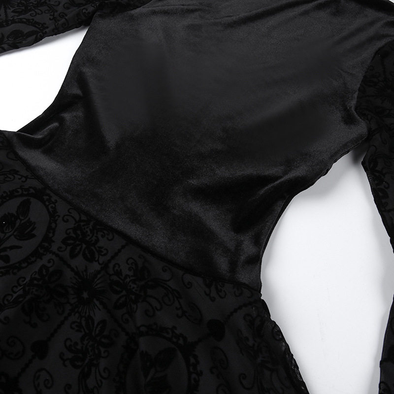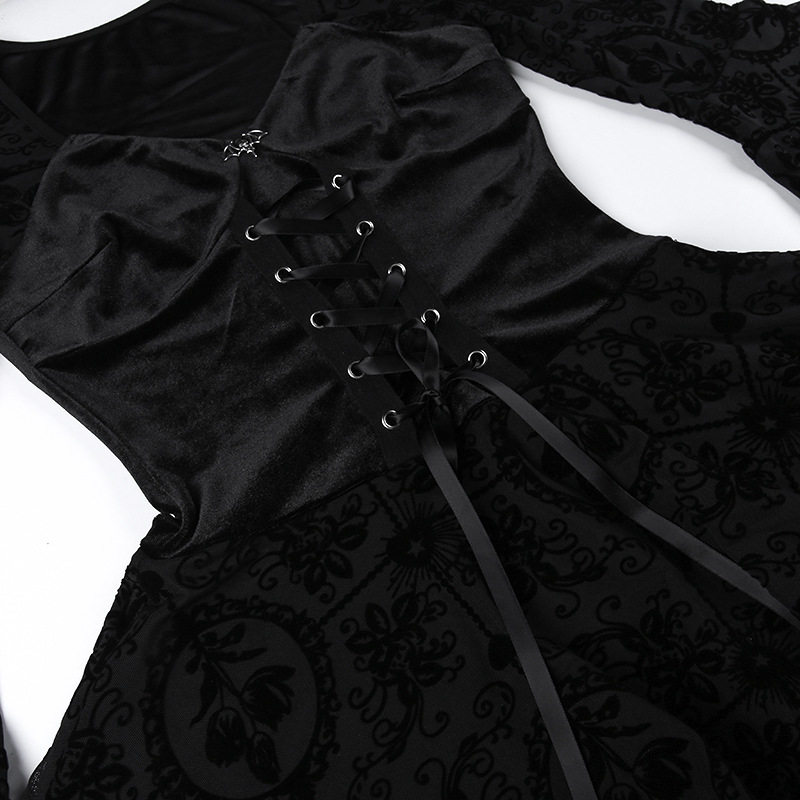 【商品名】【ハロウィン】 暗黒系 レース エレガント タイト ロングドレス ヴィンテージ ダーク ベルベット 長袖 ワンピース