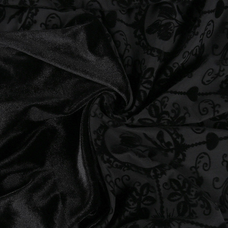 【ハロウィン】 暗黒系 レース エレガント タイト ロングドレス ヴィンテージ ダーク ベルベット 長袖 ワンピース