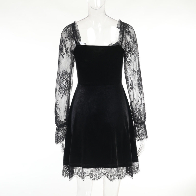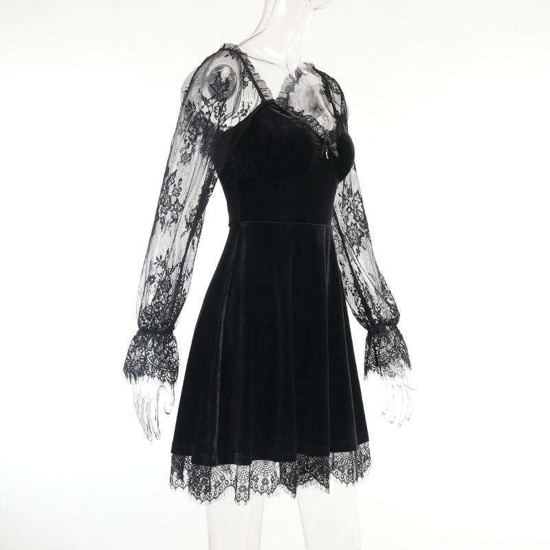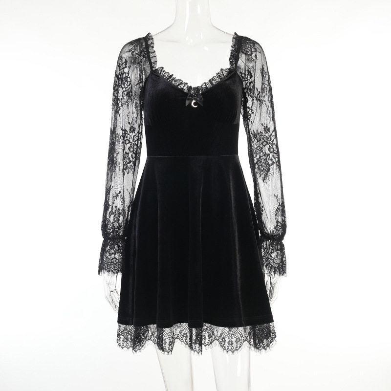 【ハロウィン】ダーク 欧米風 新作 ヒップホップ レース ファッショナブル バスト強調 ベルスリーブ ワンピース