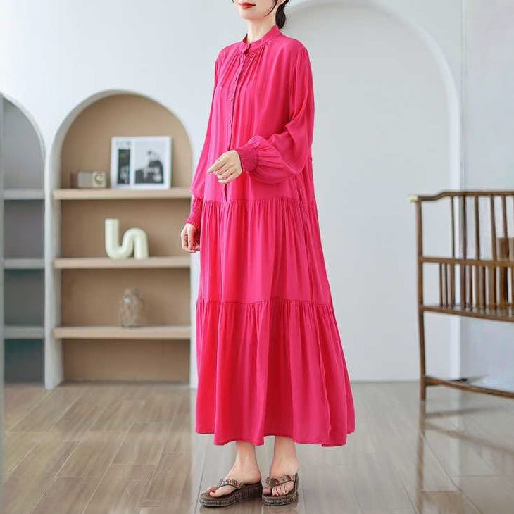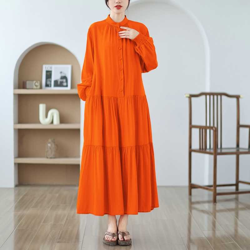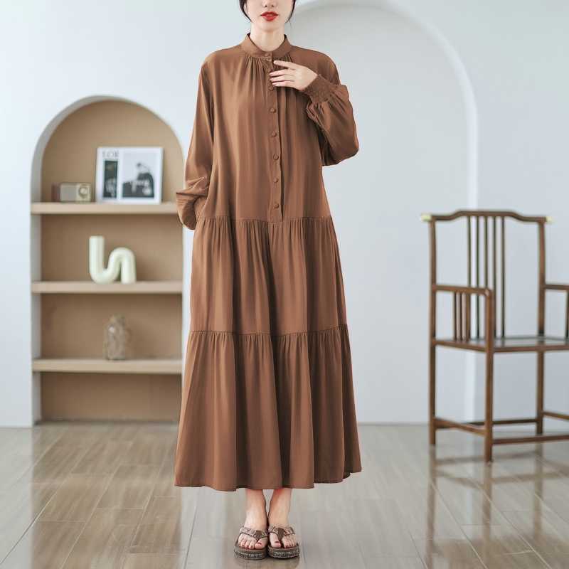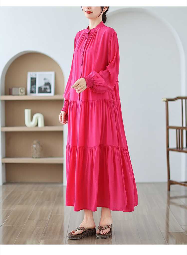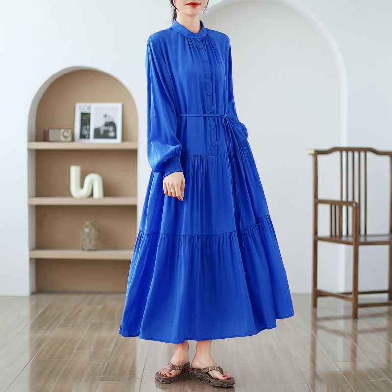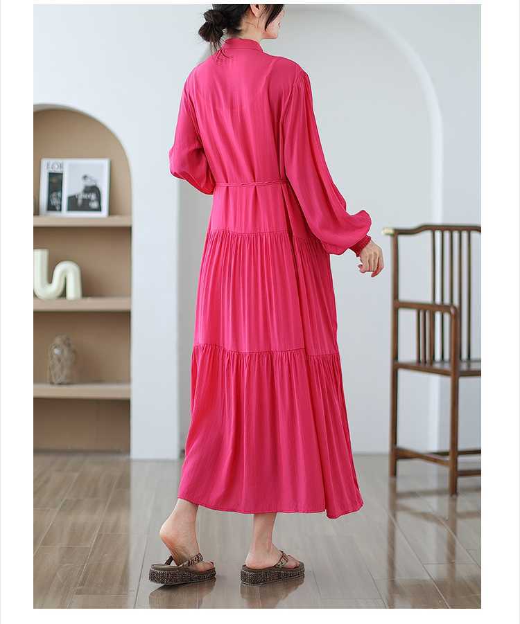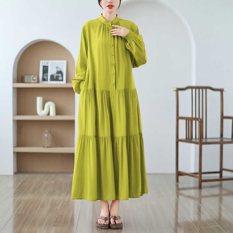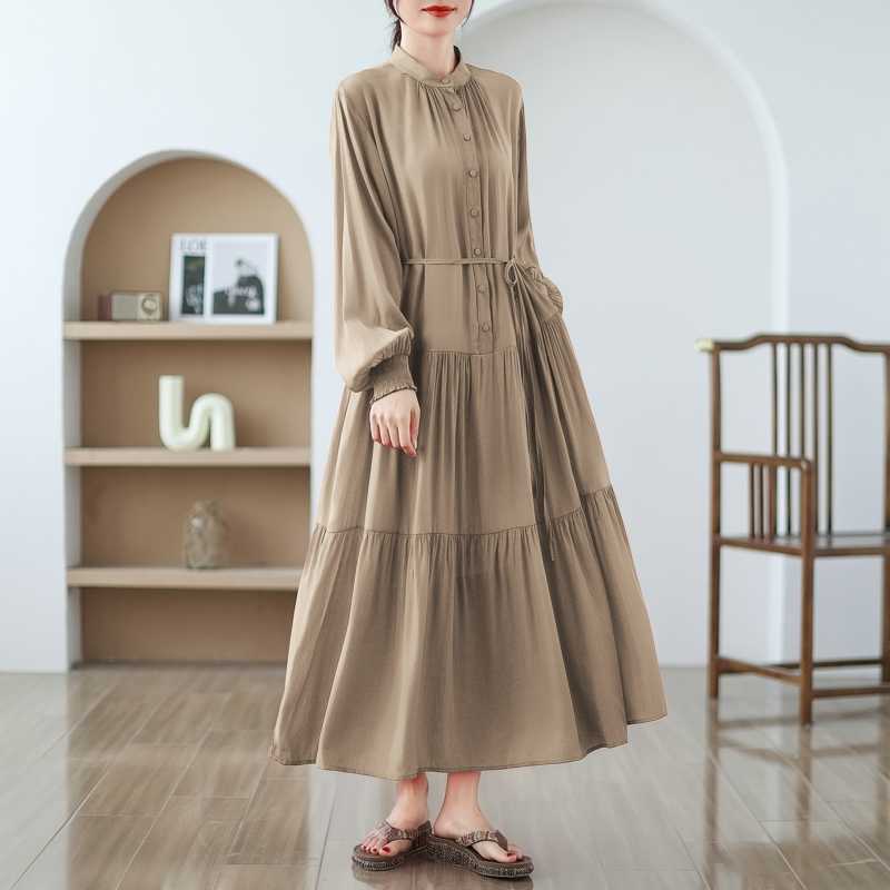 【ワンピース】細見え 日系 Vネック 無地 長袖ワンピース 切替デザイン ゆったり 気質ロング【JZシリーズ】【AHシリーズ】
