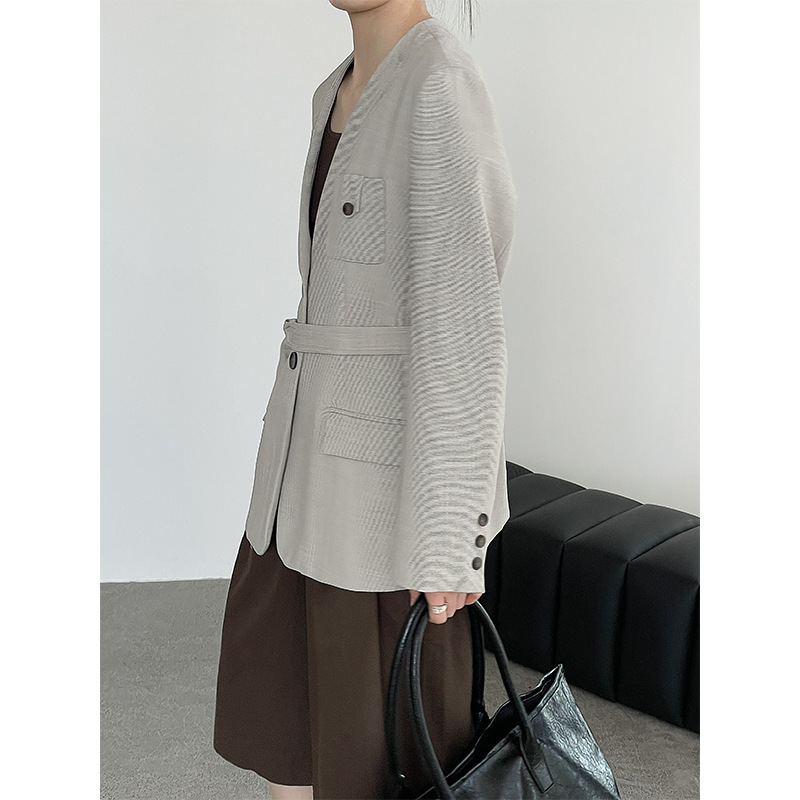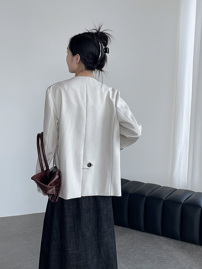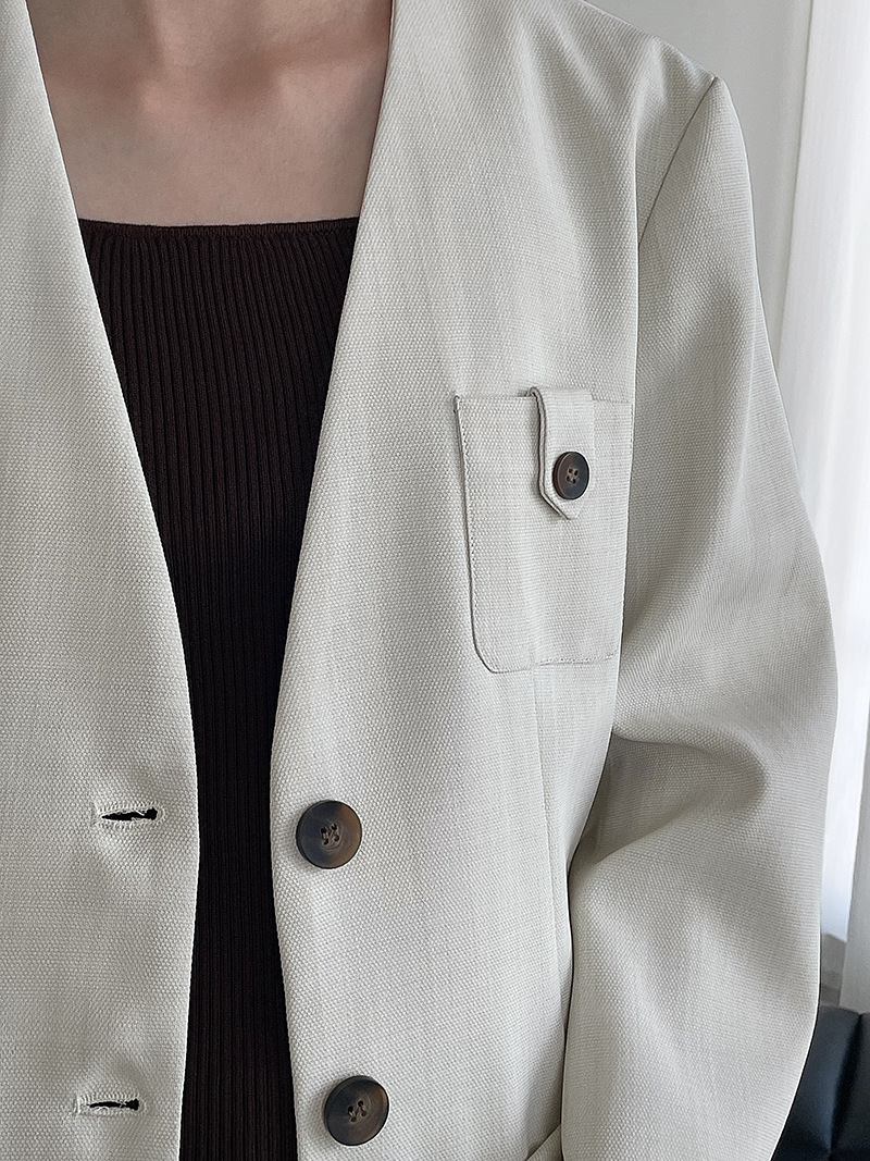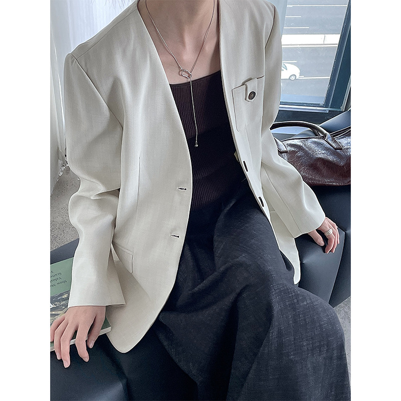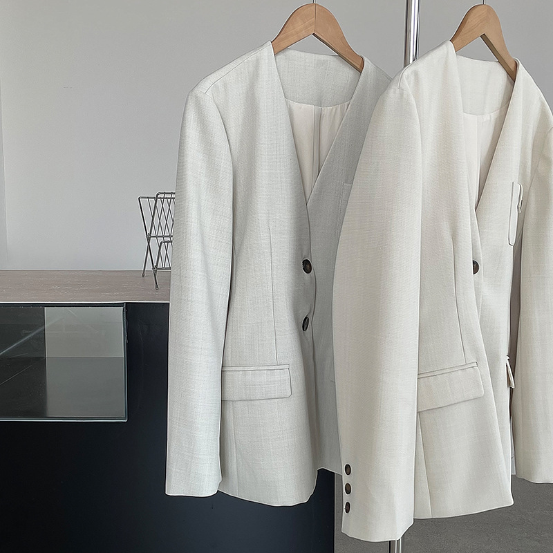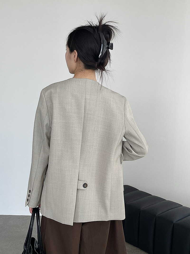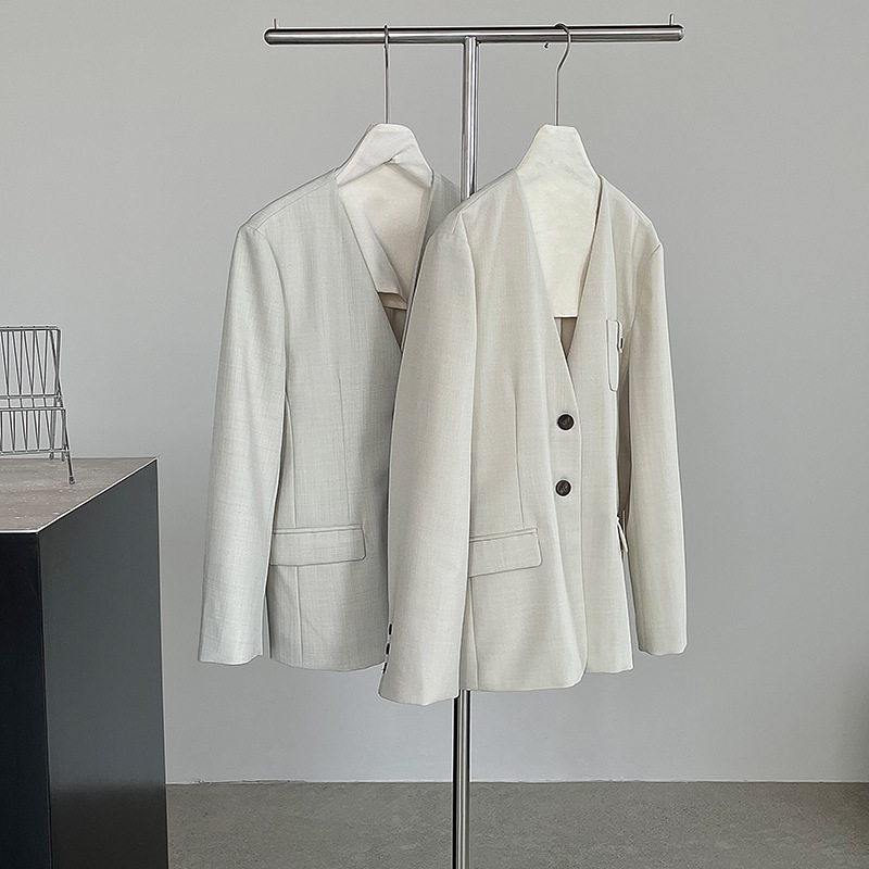 【アウター】春 秋 韓国風 ノーカラー ナチュラルショルダー スーツジャケット 【JZシリーズ】