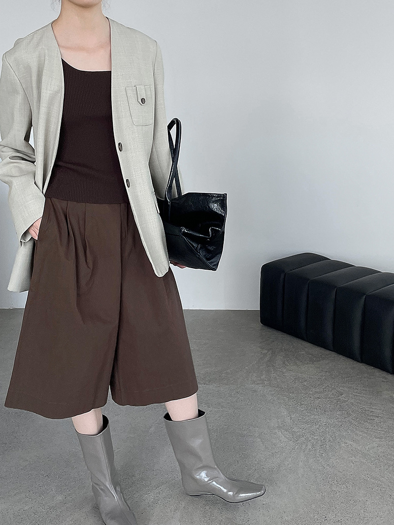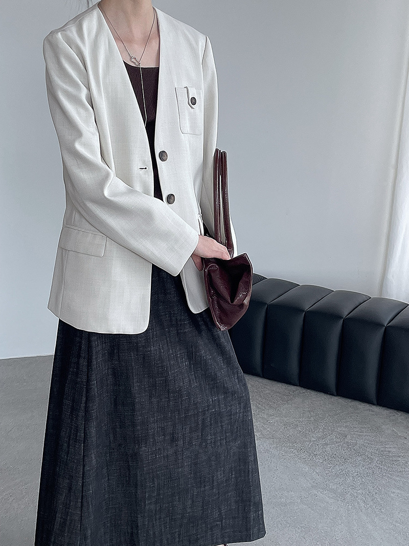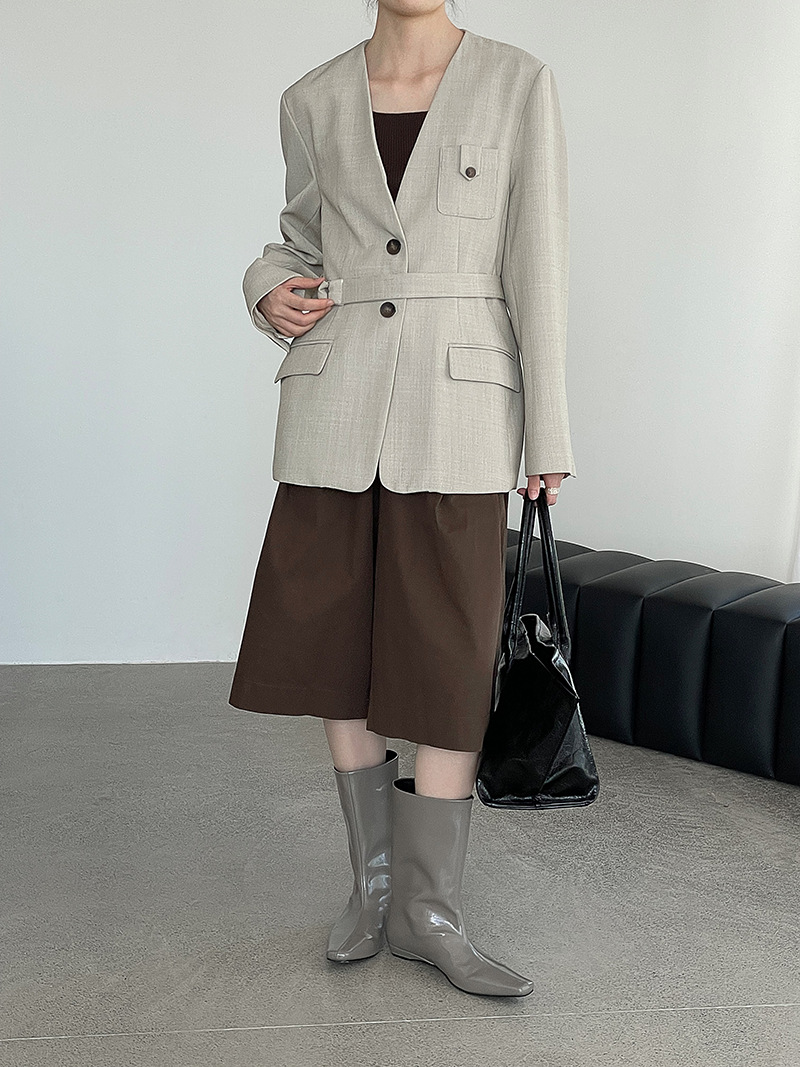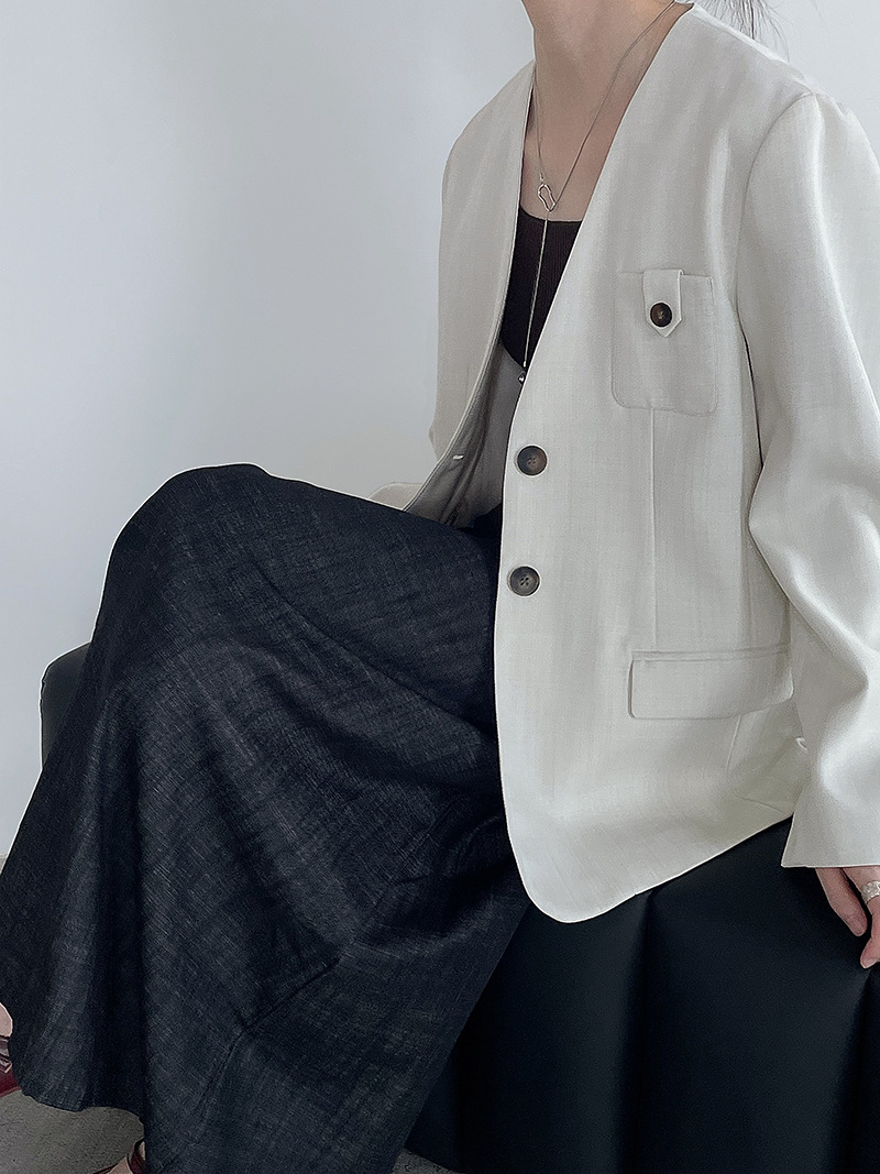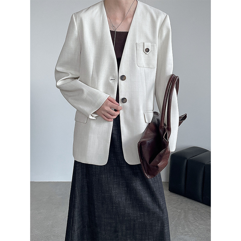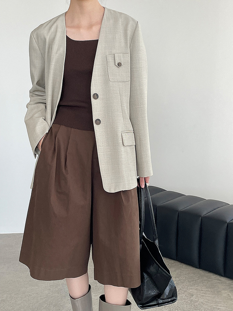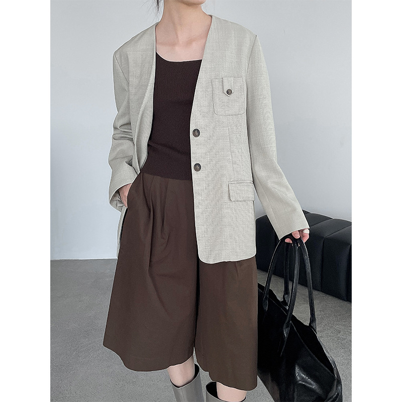 【アウター】春 秋 韓国風 ノーカラー ナチュラルショルダー スーツジャケット 【JZシリーズ】