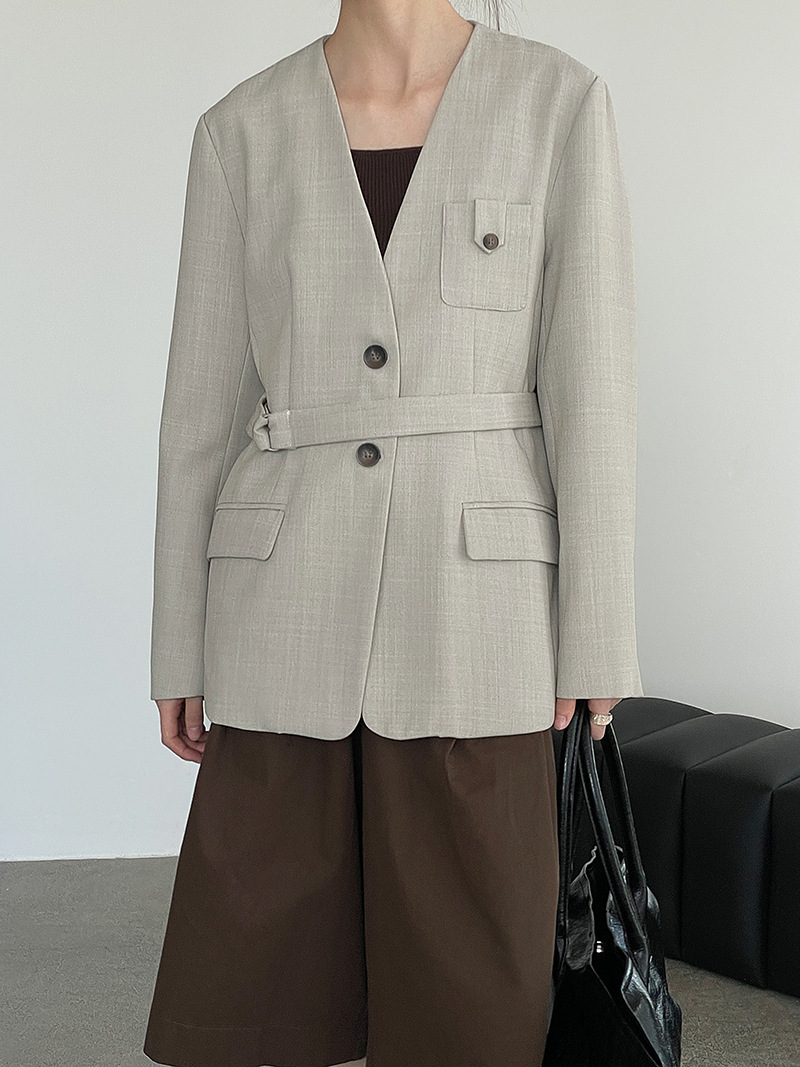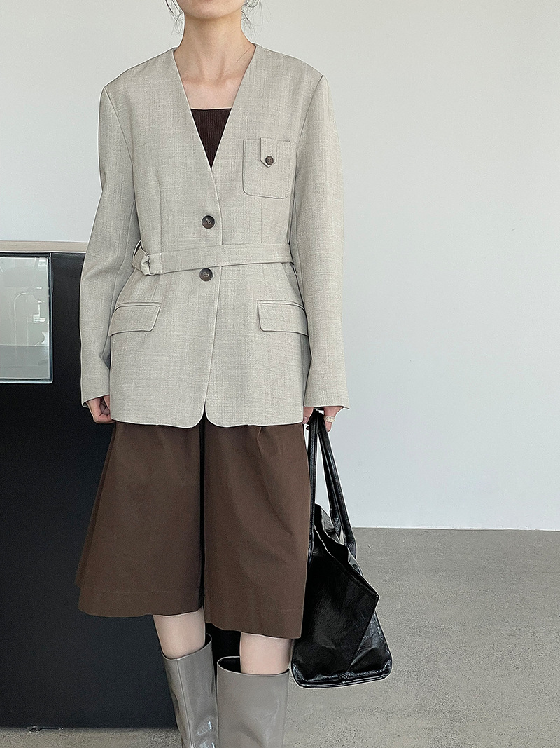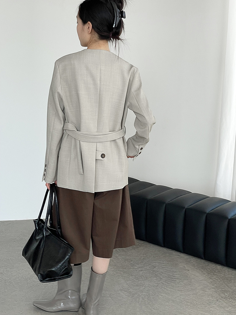【商品名】【アウター】春 秋 韓国風 ノーカラー ナチュラルショルダー スーツジャケット 【JZシリーズ】