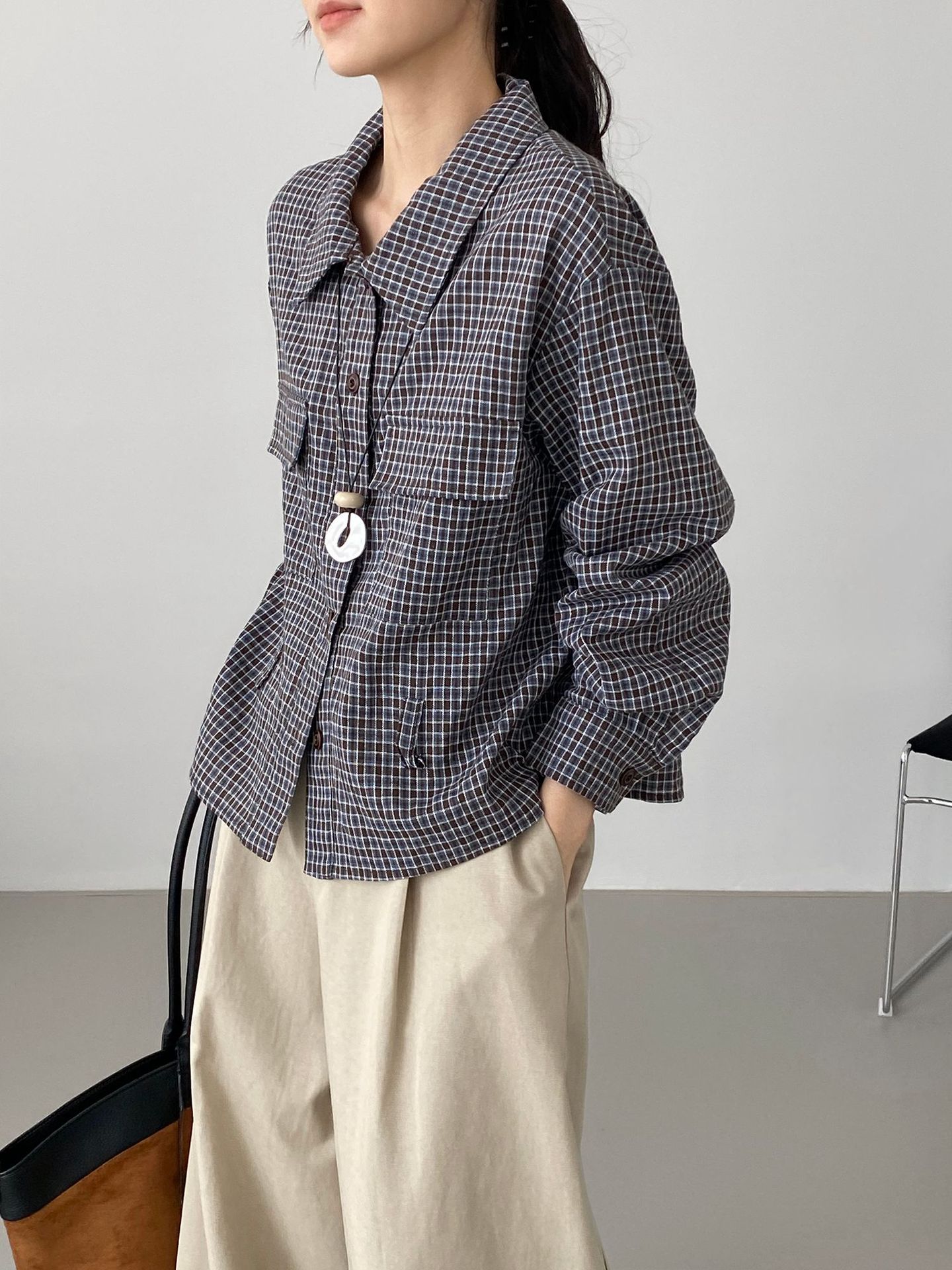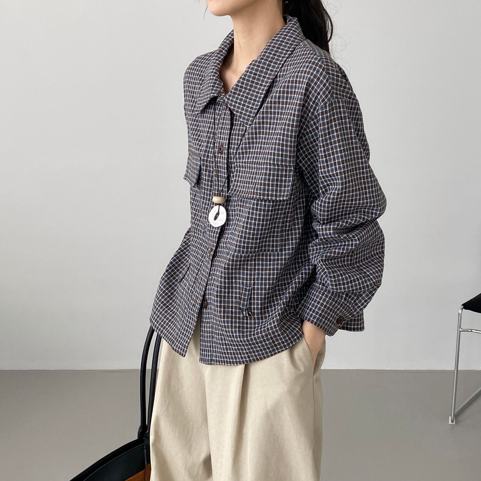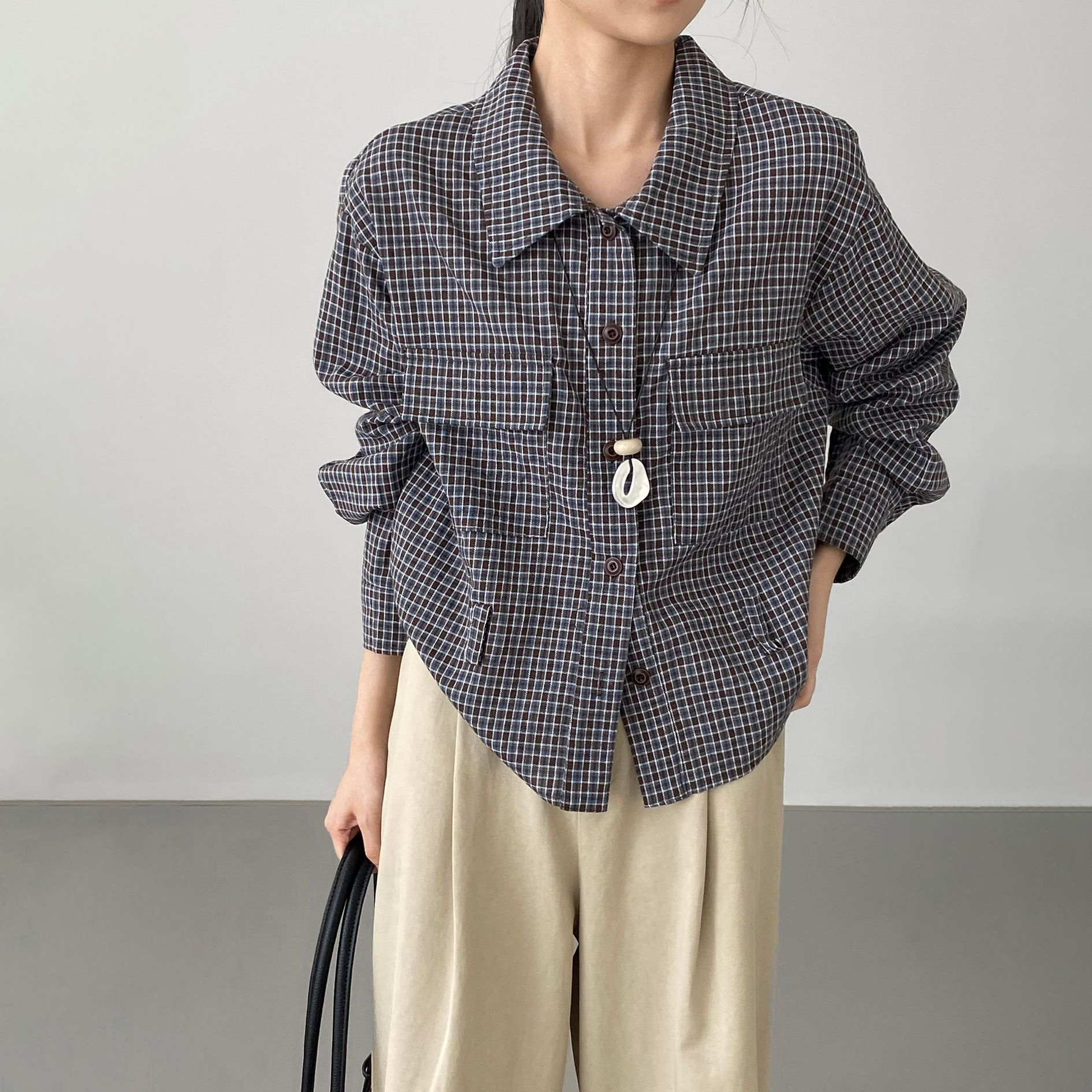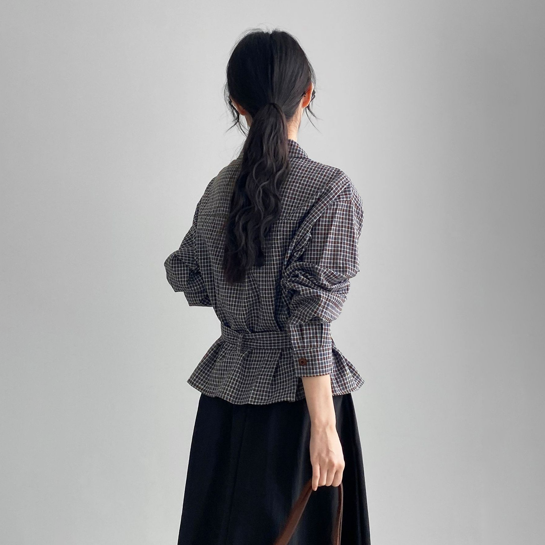 【商品名】【トップス】韓国風 シンプルギンガムシャツ レディース ベルト付き デザインシャツ 襟付き ウエストマーク 美シルエット 着回しトップス【JZシリーズ】