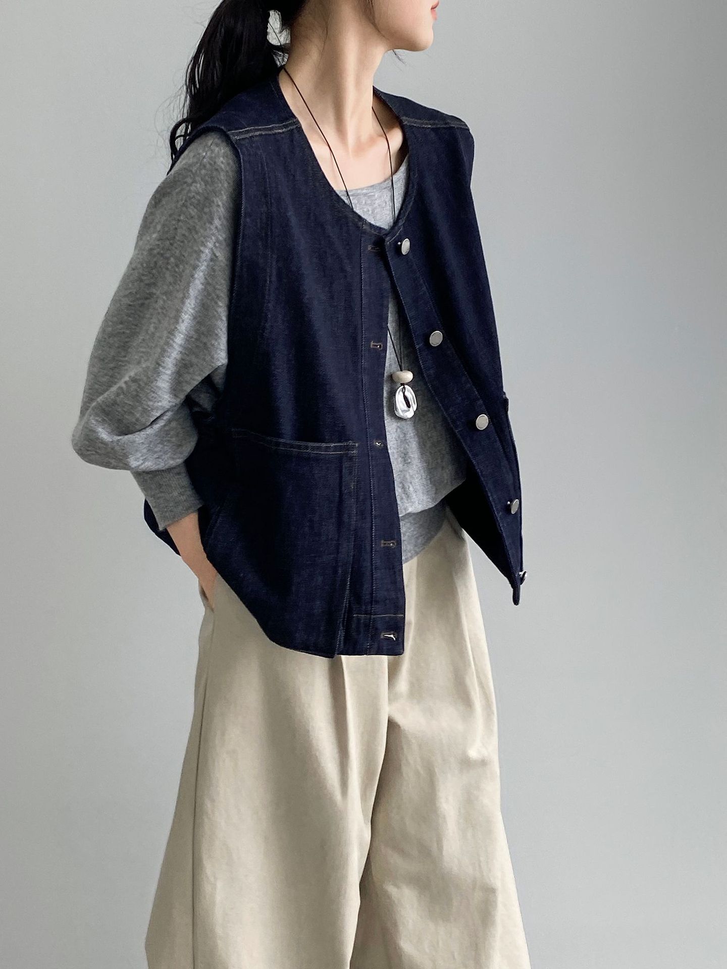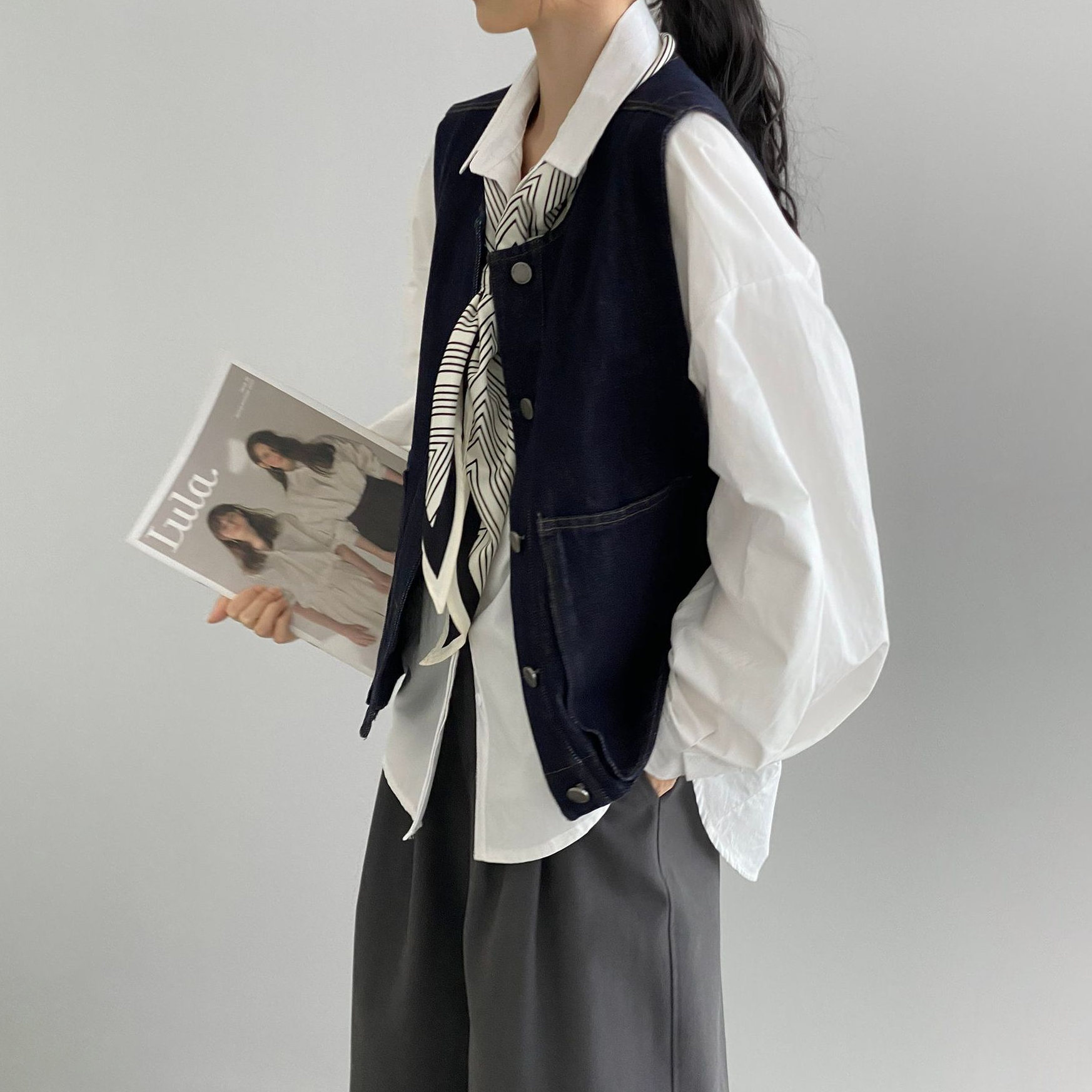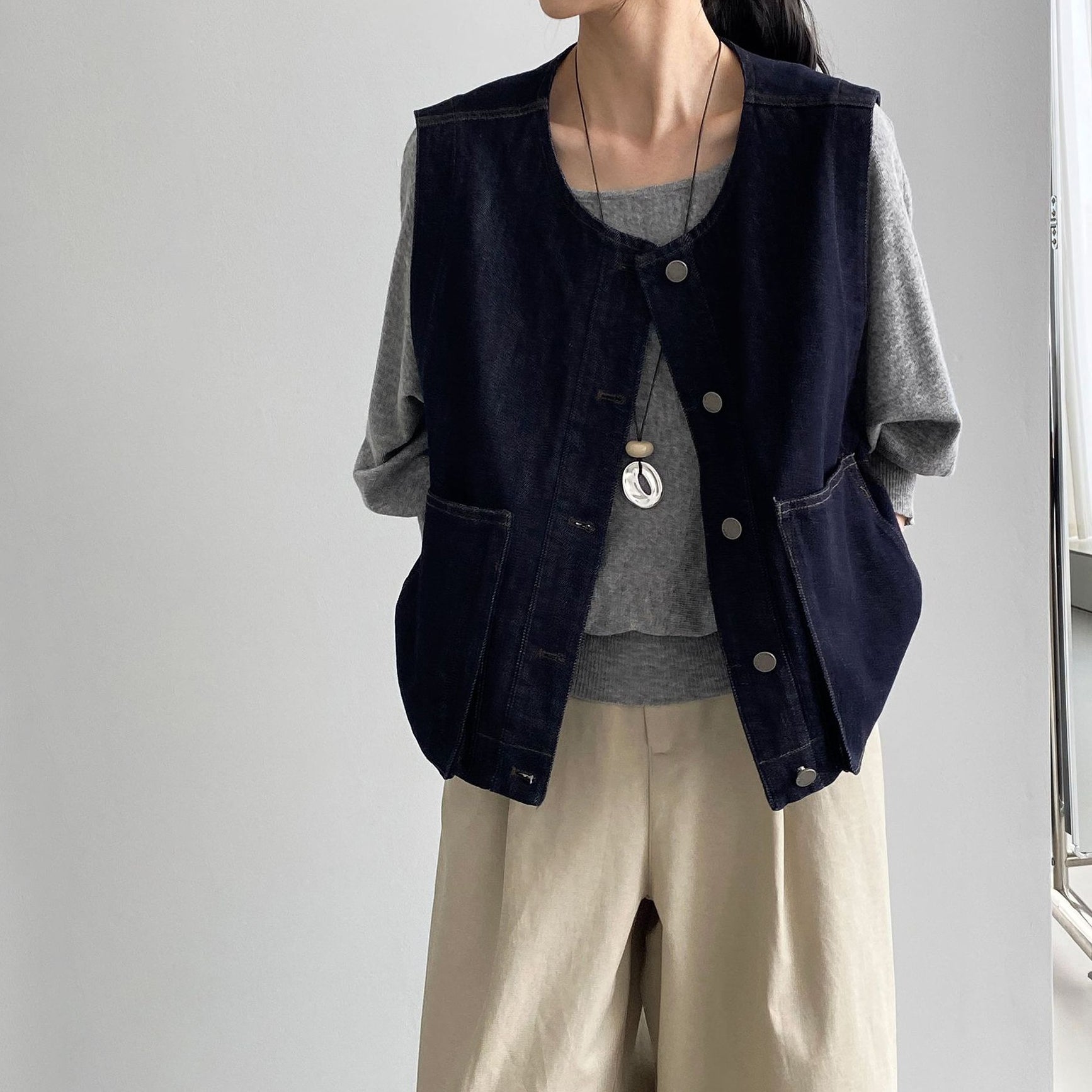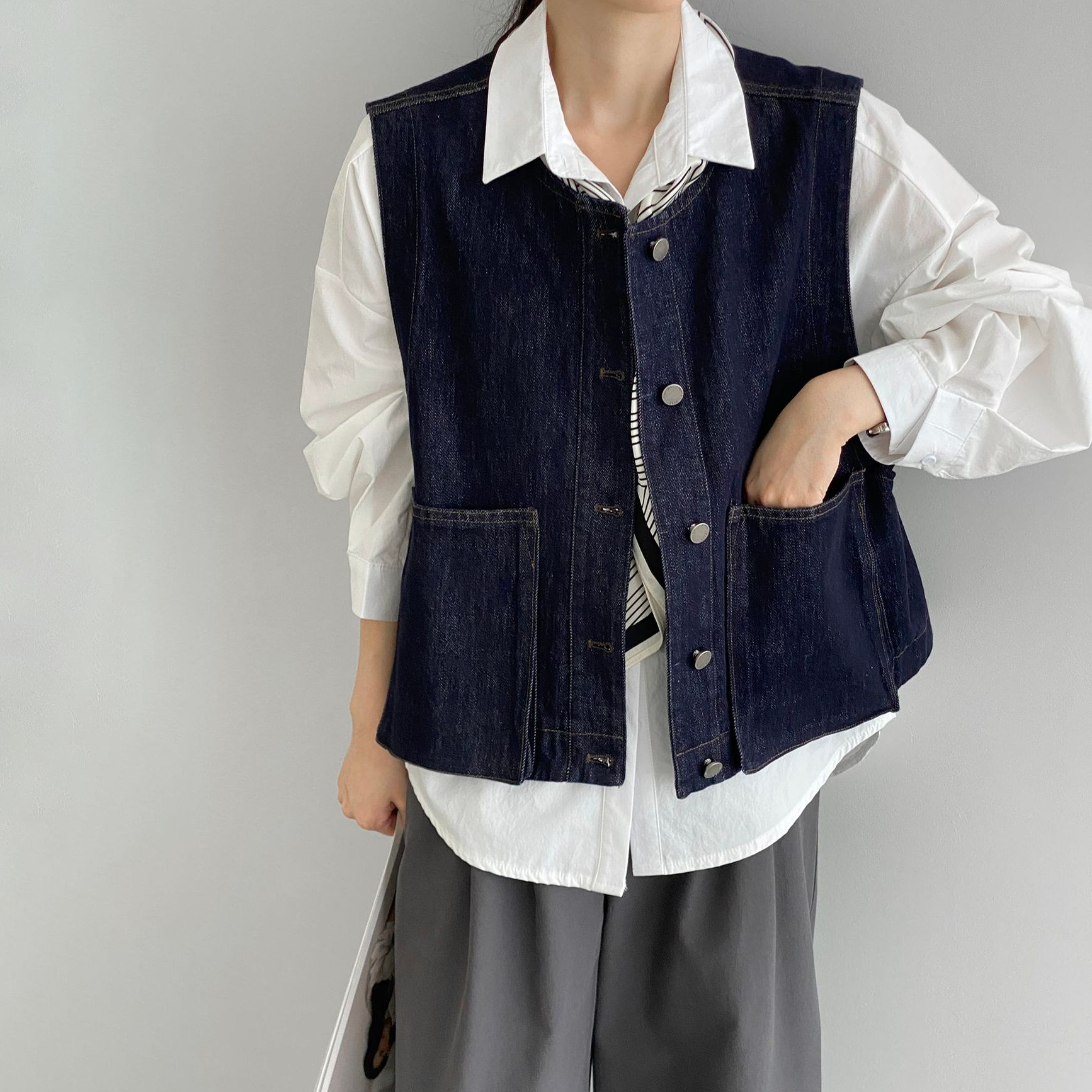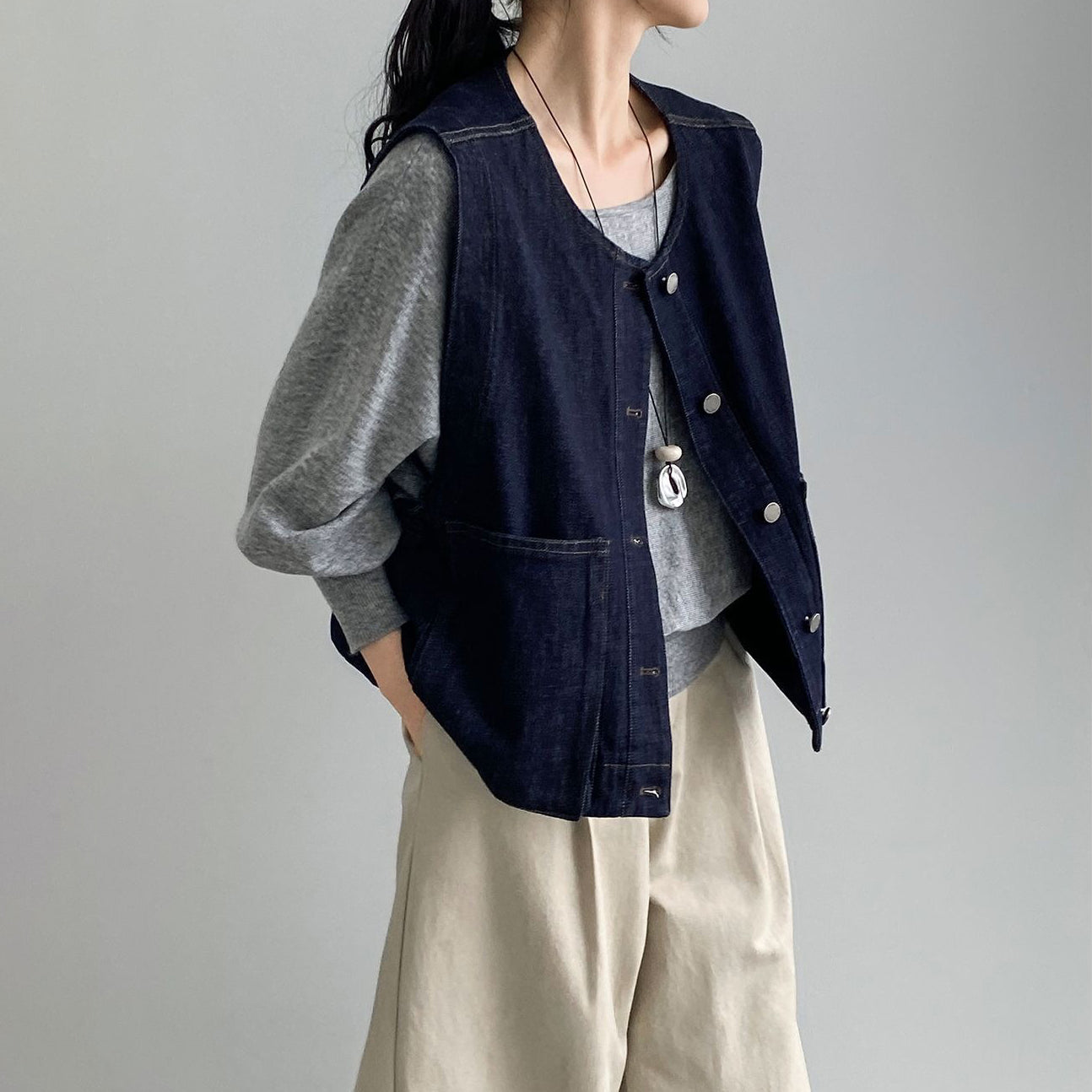【トップス】レイヤードコーデ 秋 ヴィンテージデニムベスト レディース ポケット付き ゆったり カジュアル着回し ベストジャケット【JZシリーズ】