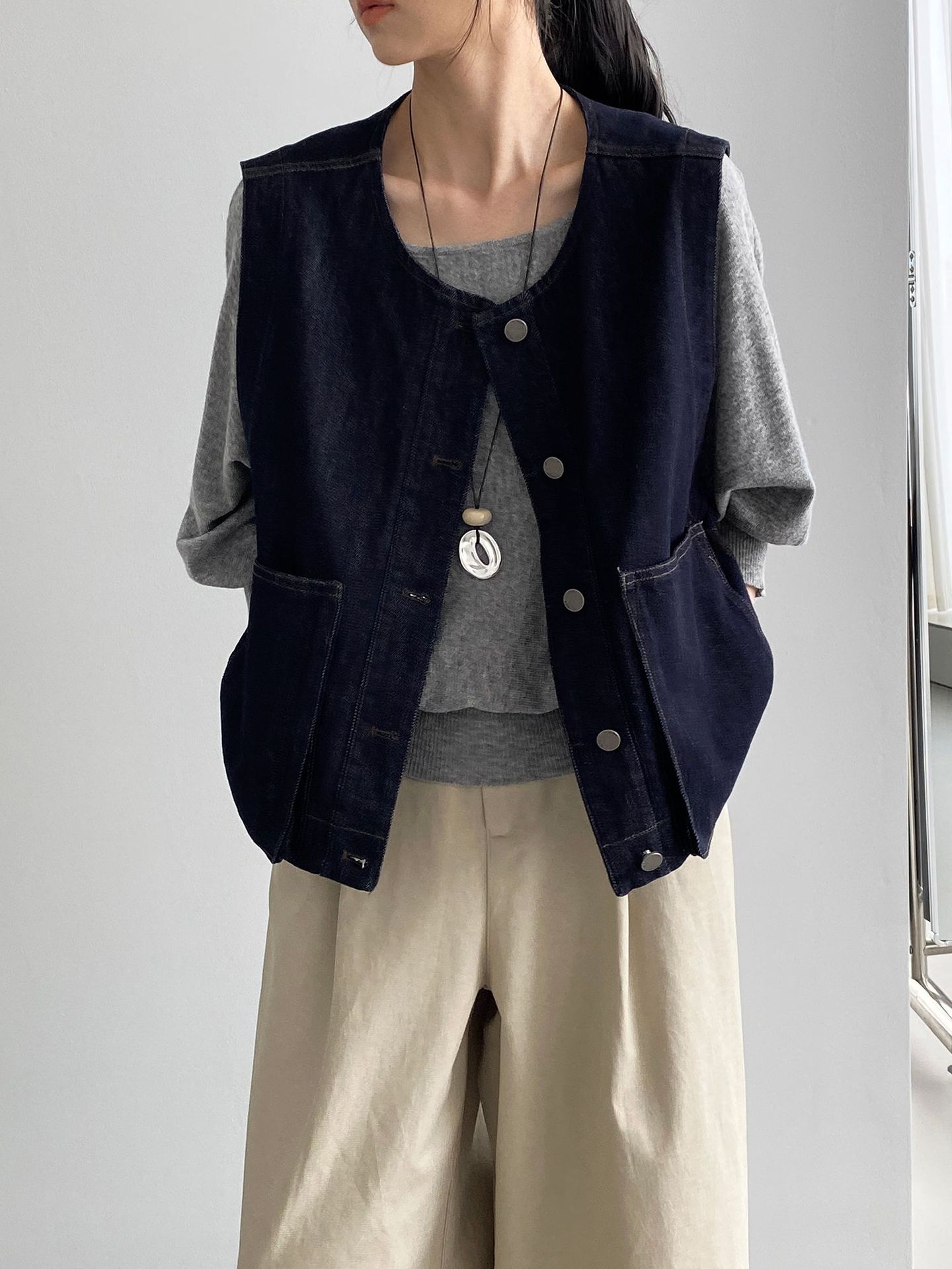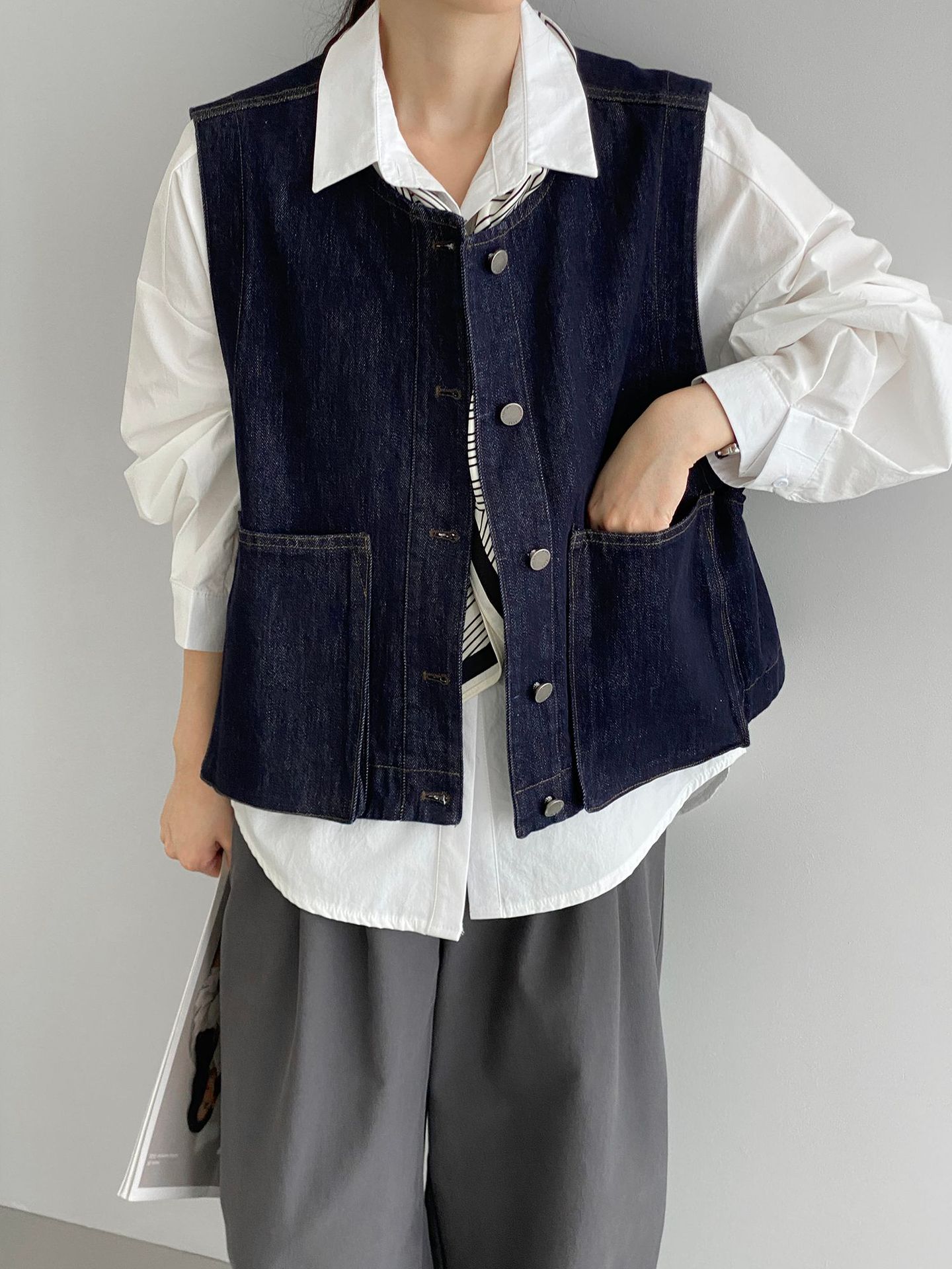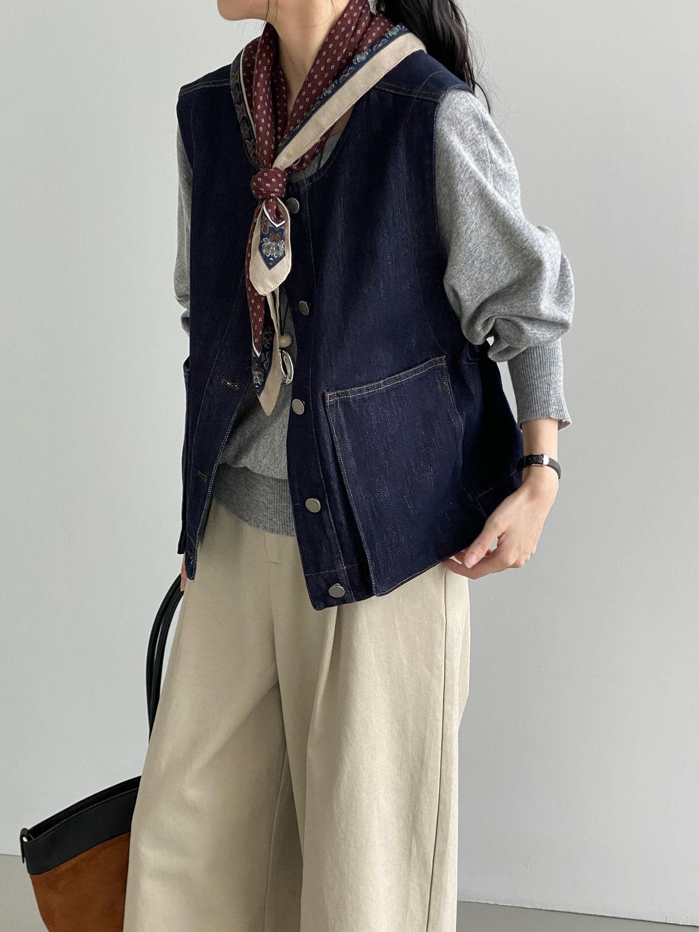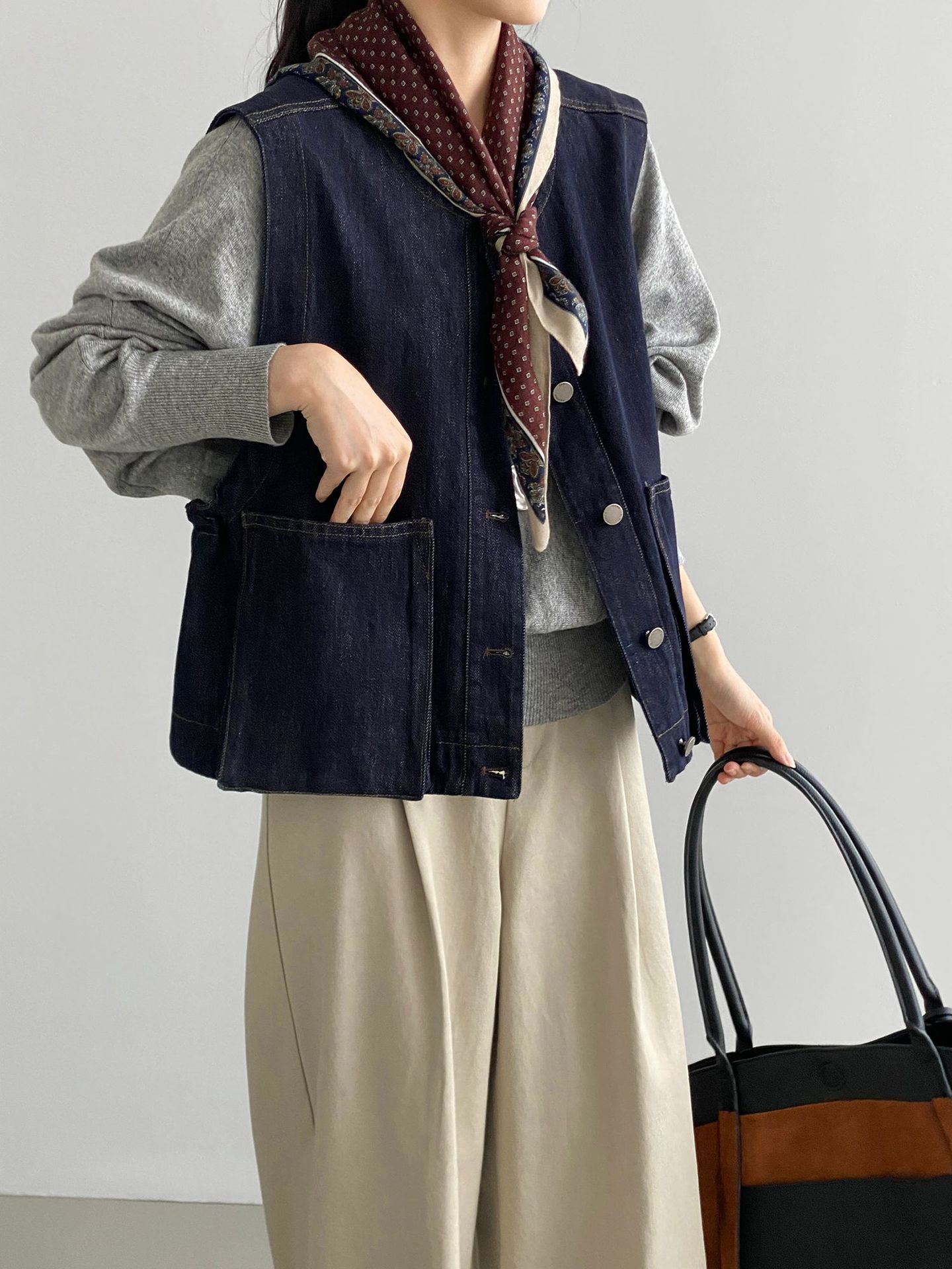 【トップス】レイヤードコーデ 秋 ヴィンテージデニムベスト レディース ポケット付き ゆったり カジュアル着回し ベストジャケット【JZシリーズ】
