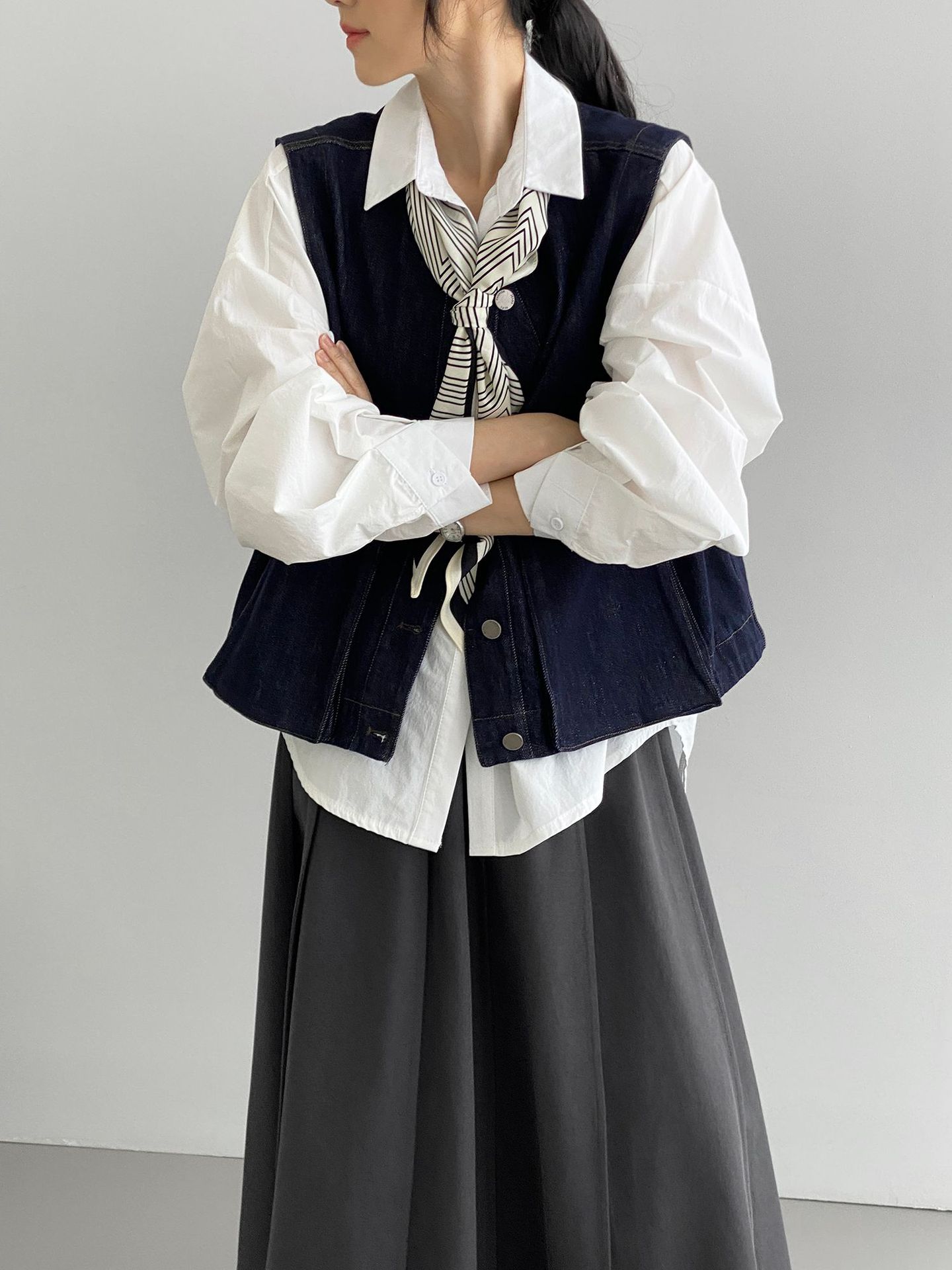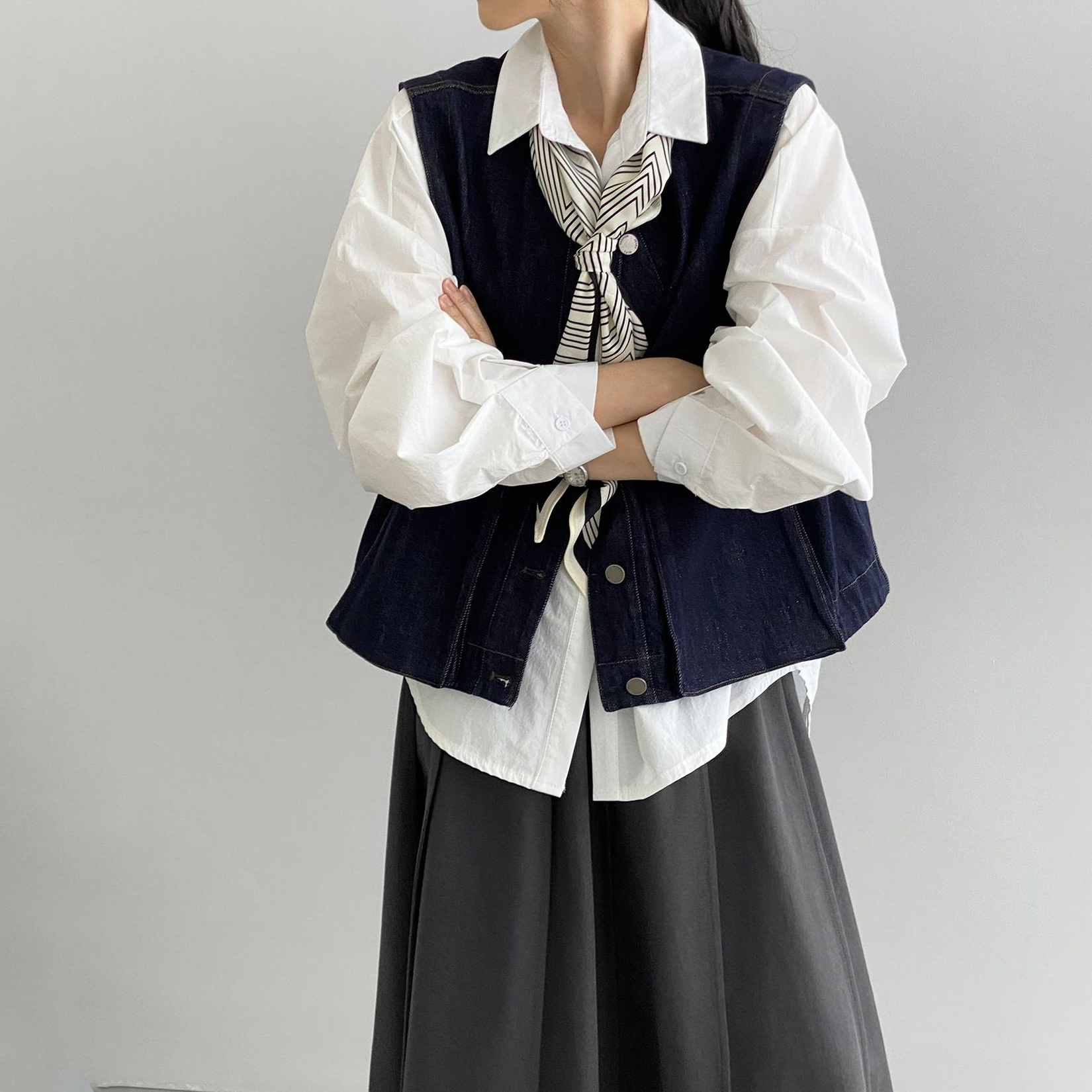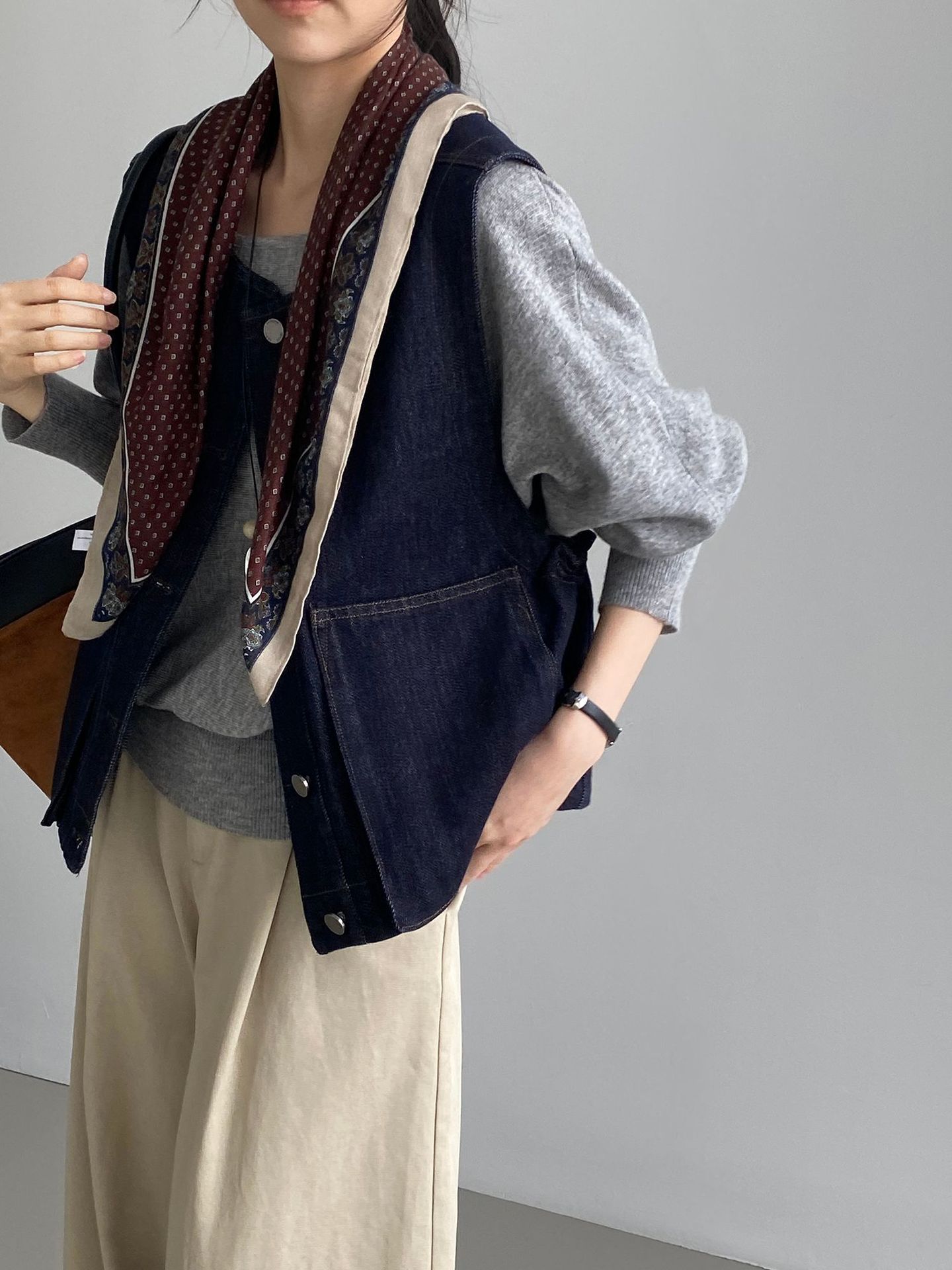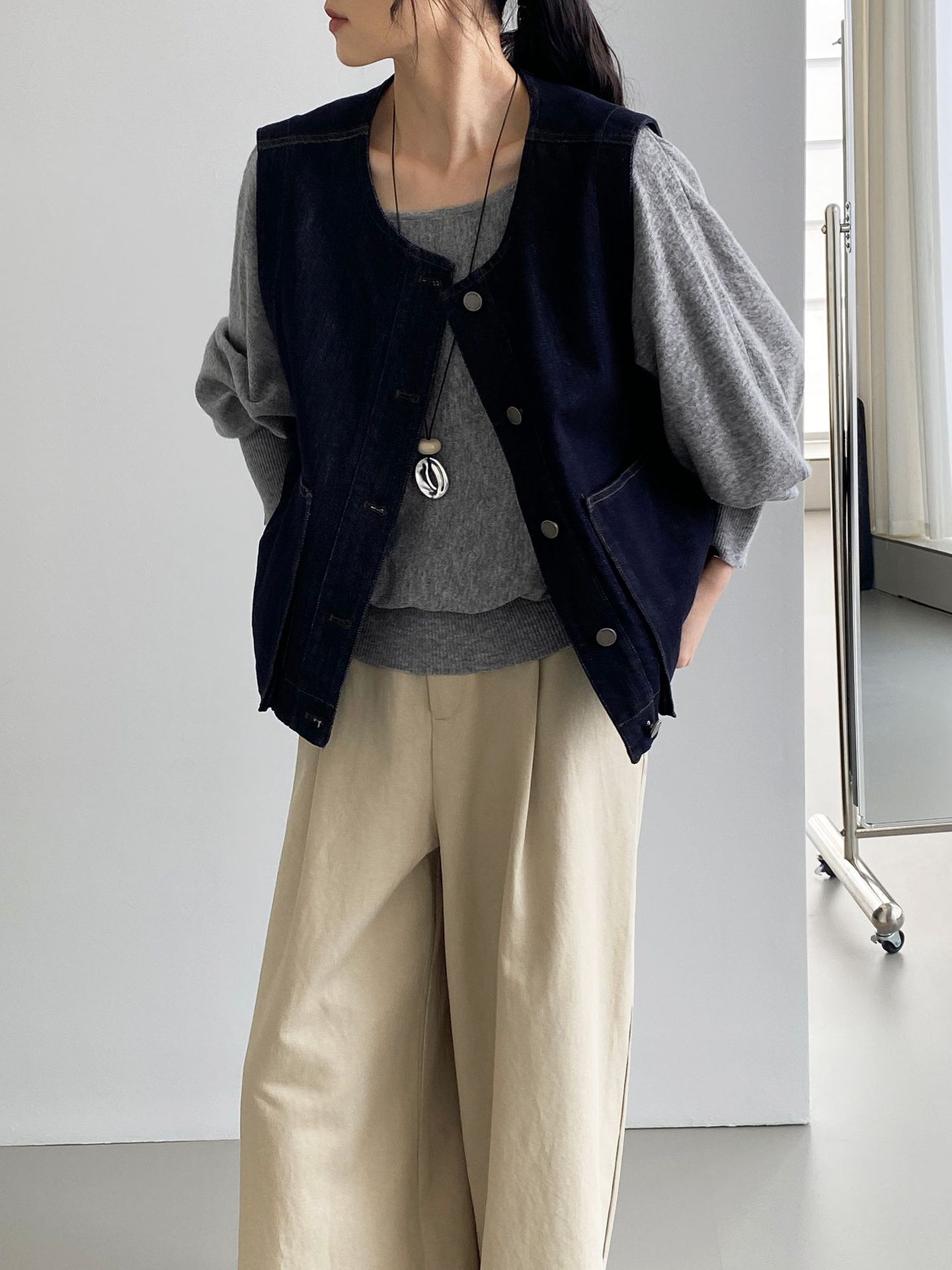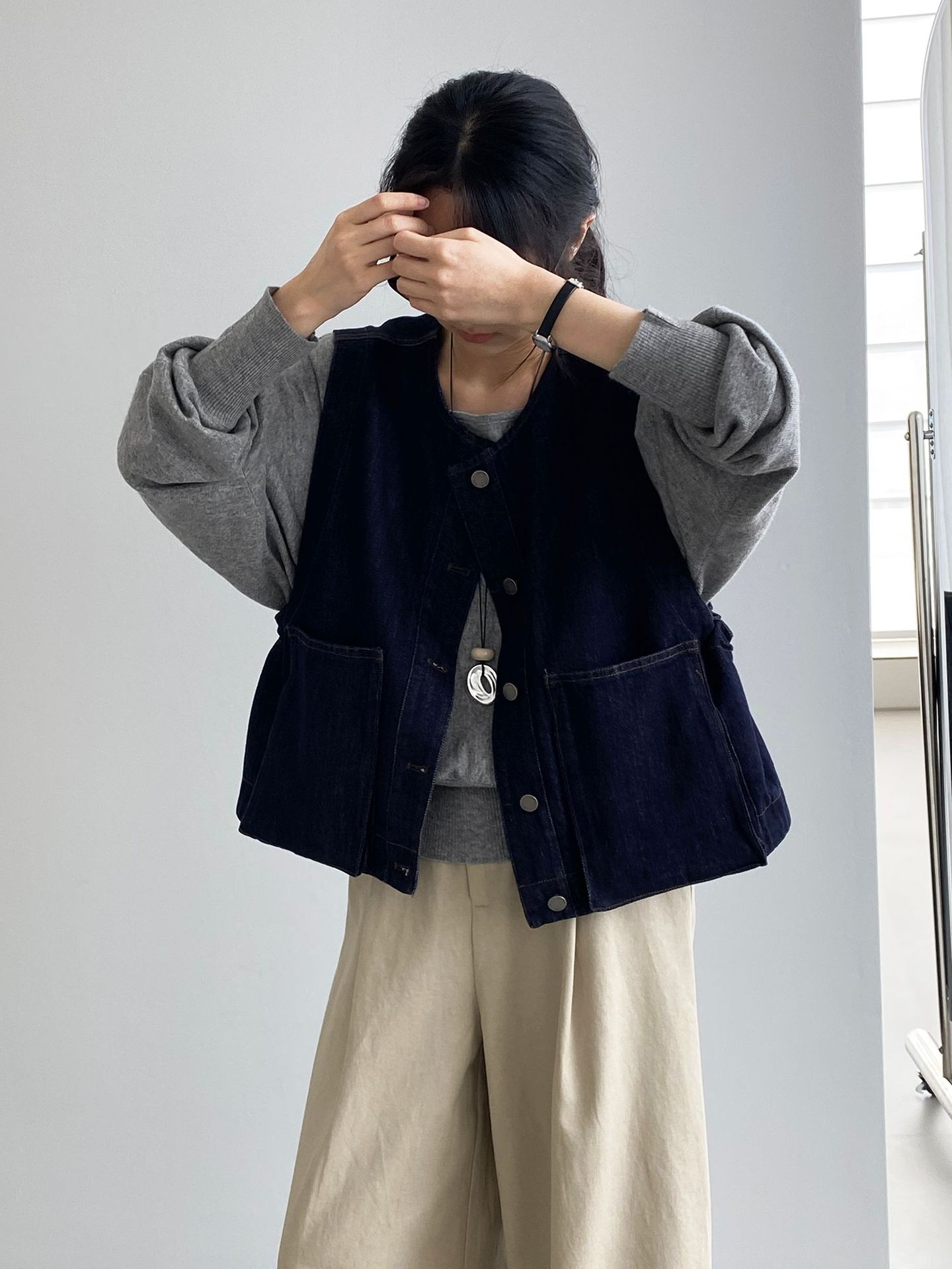 【トップス】レイヤードコーデ 秋 ヴィンテージデニムベスト レディース ポケット付き ゆったり カジュアル着回し ベストジャケット【JZシリーズ】