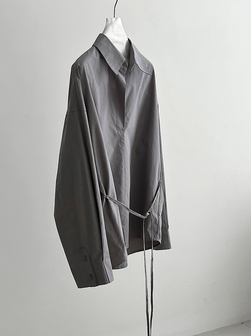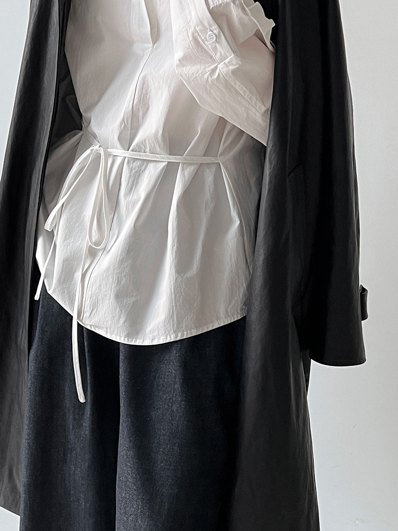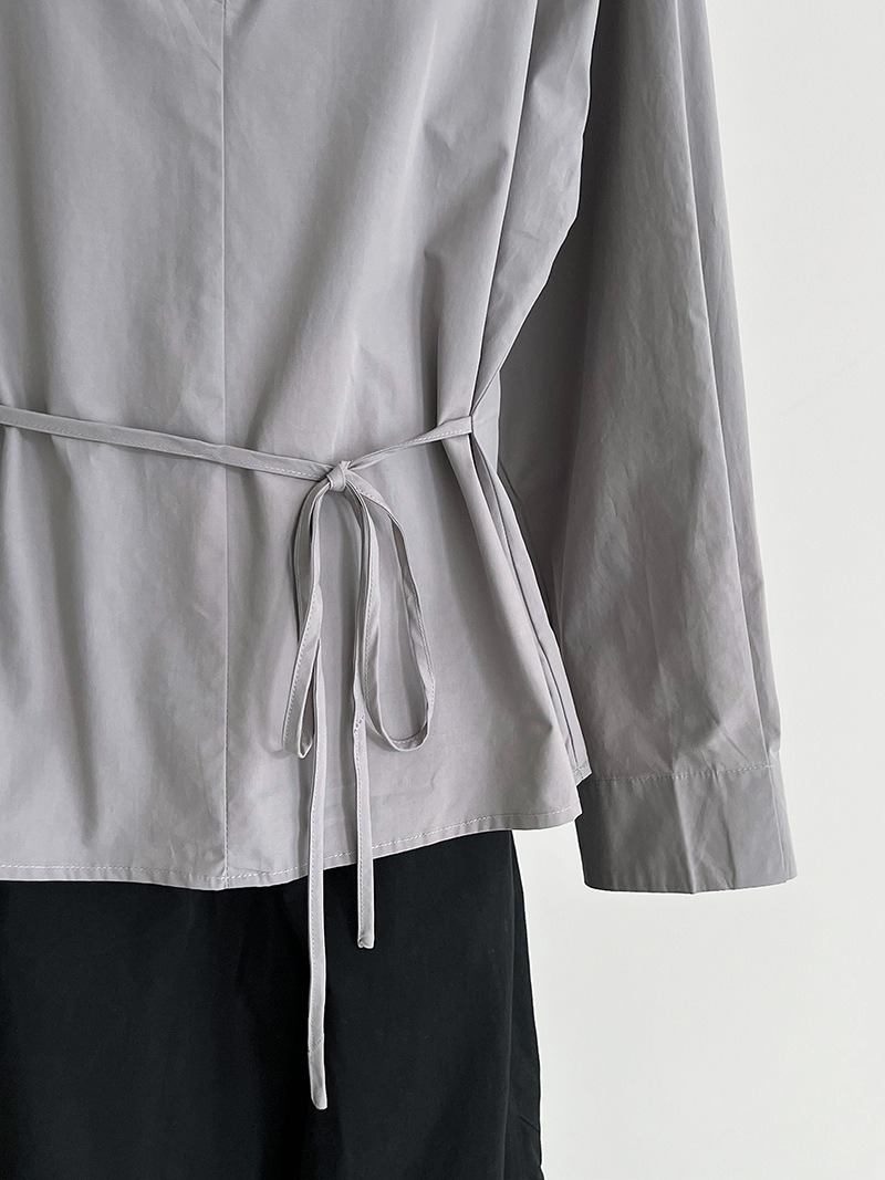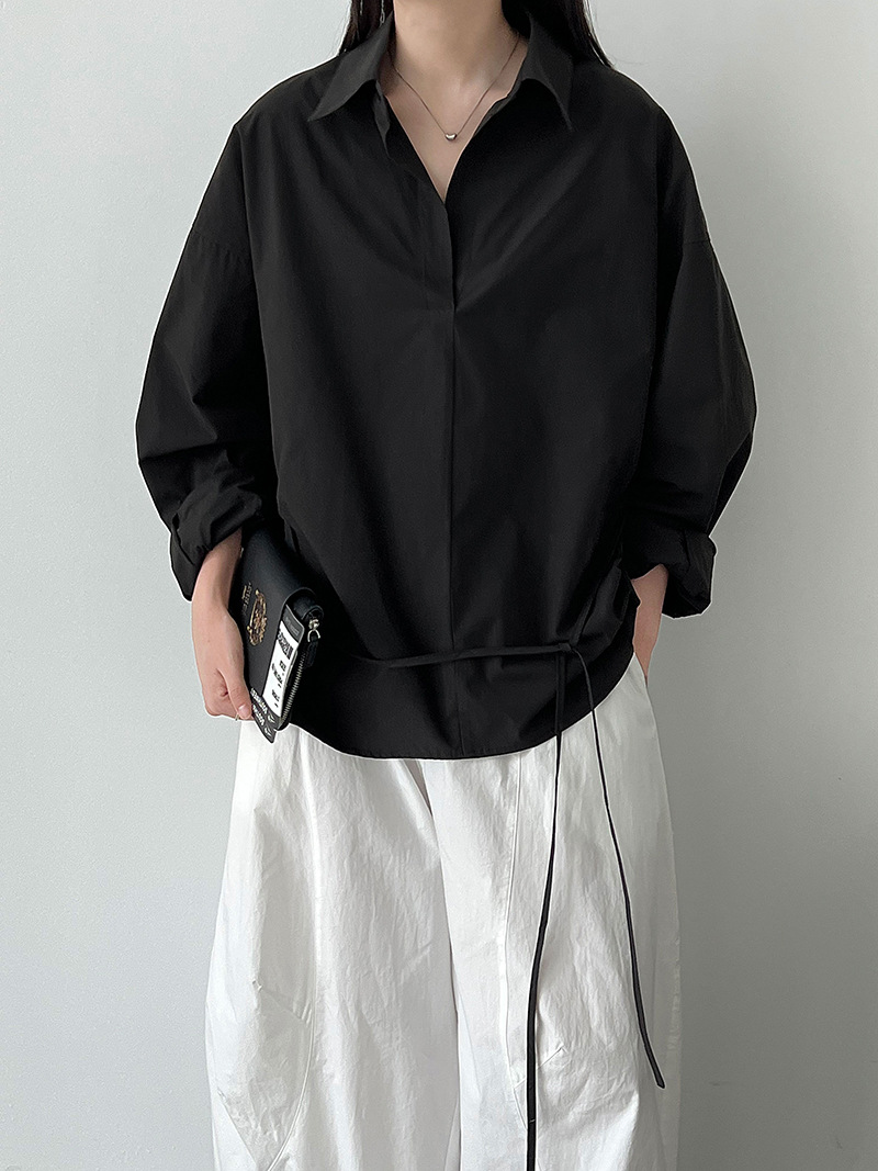 【商品名】【トップス】韓国風 ポロカラー シャツ レディース 2025秋新作 ウエストリボン 美シルエット レトロブラウス【SNシリーズ】