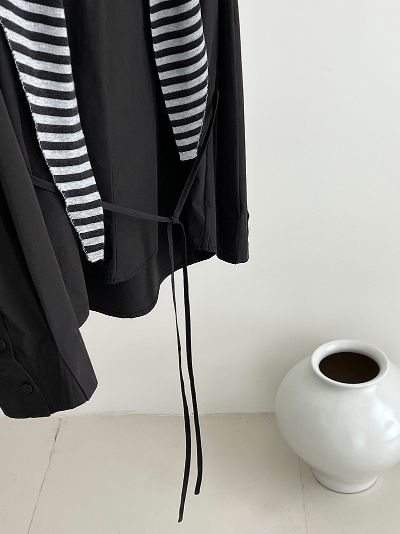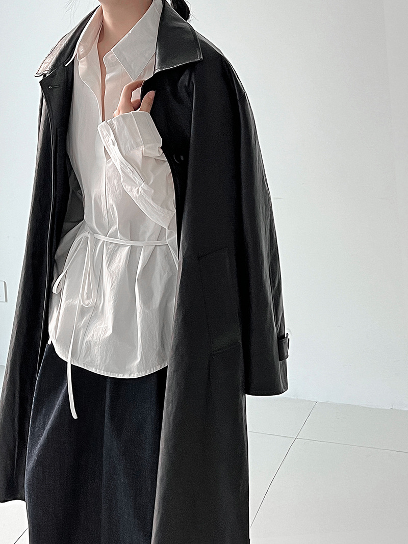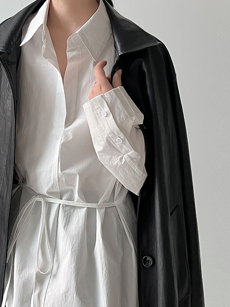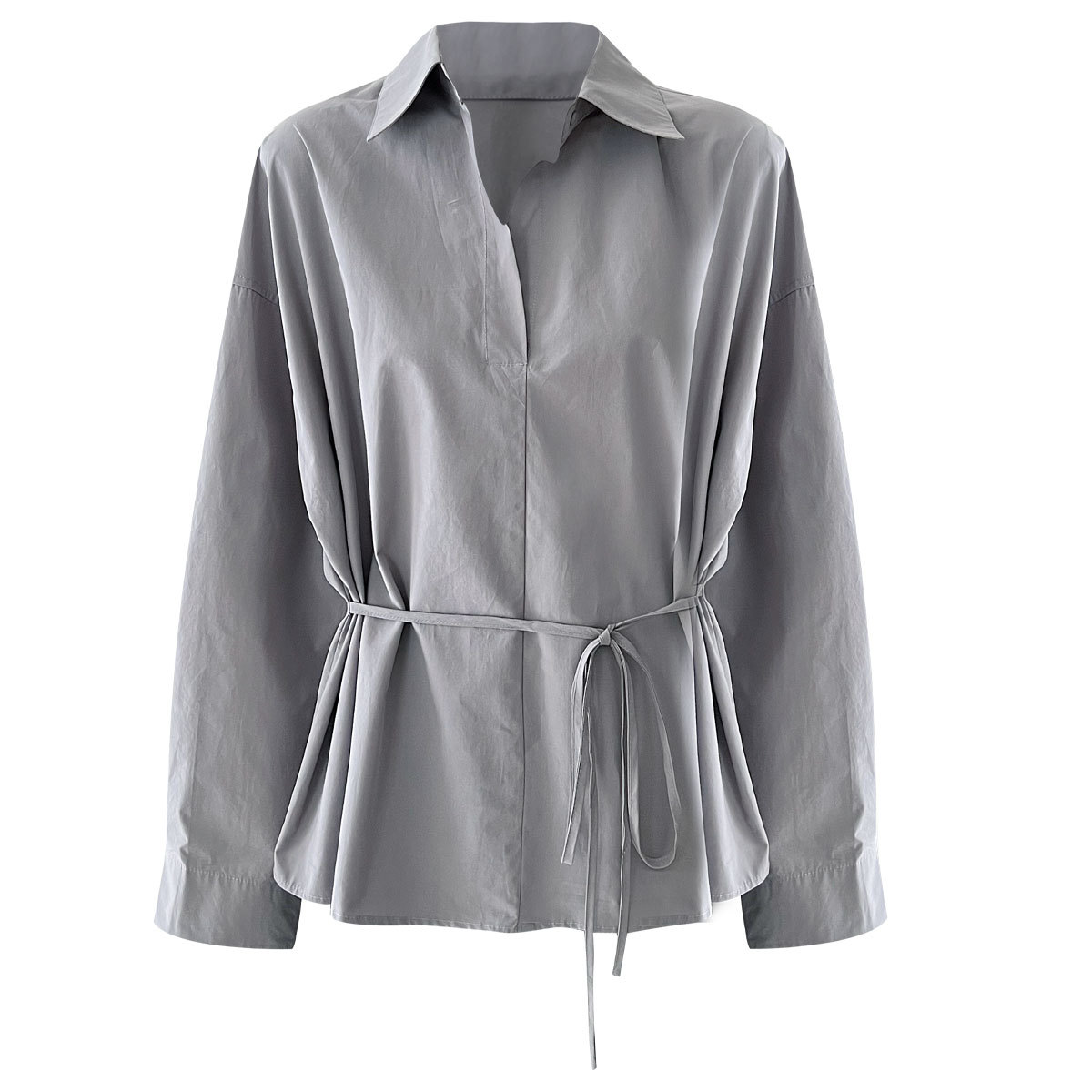 【商品名】【トップス】韓国風 ポロカラー シャツ レディース 2025秋新作 ウエストリボン 美シルエット レトロブラウス【SNシリーズ】
