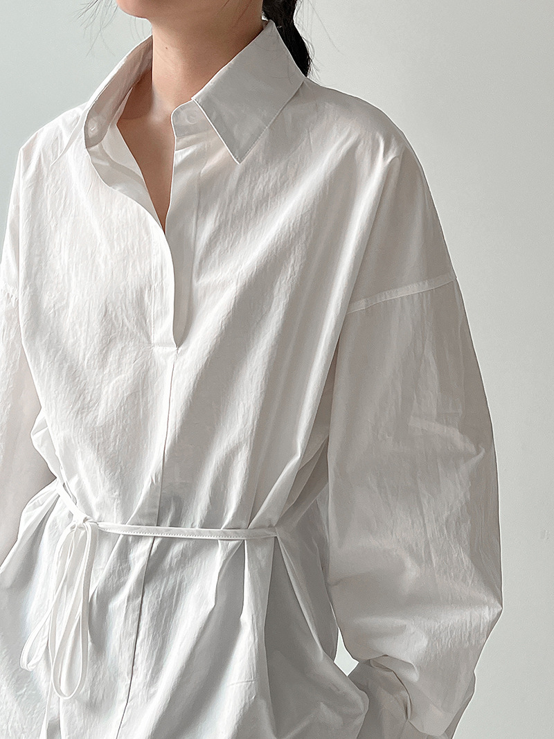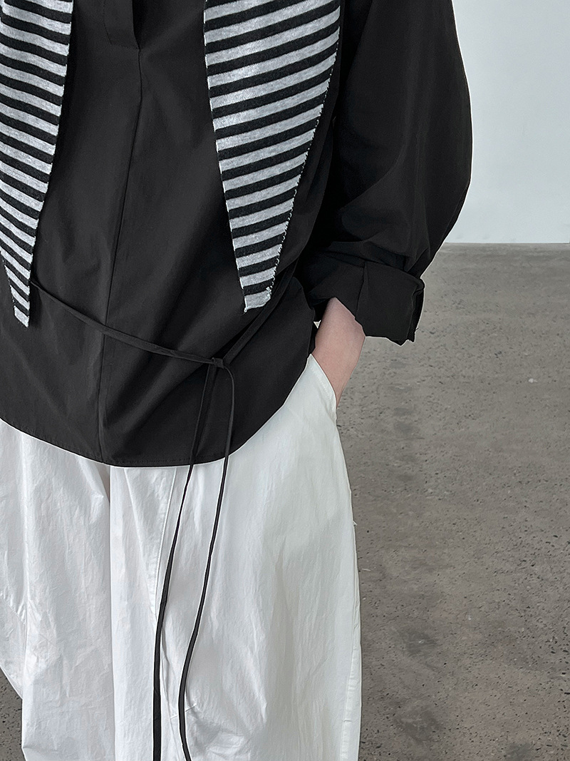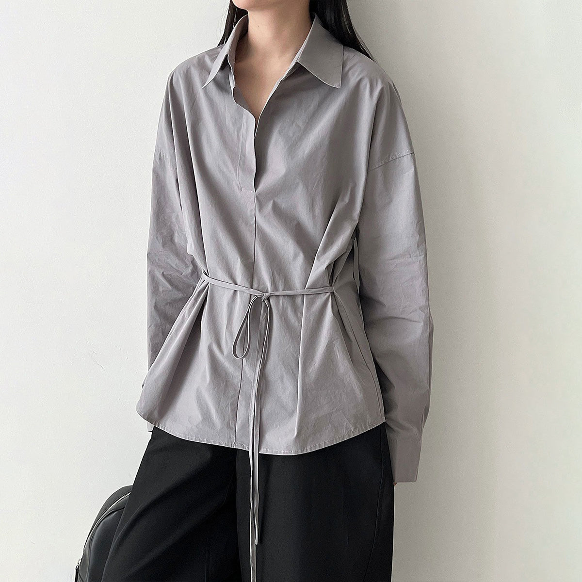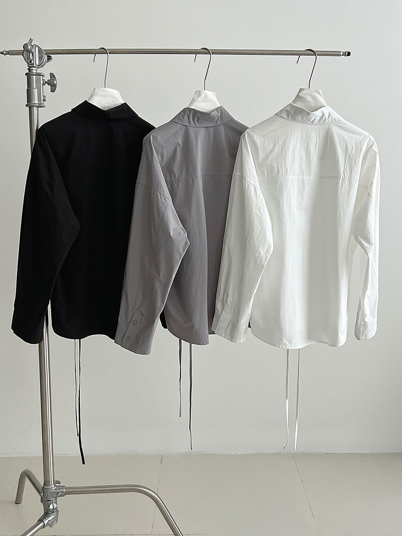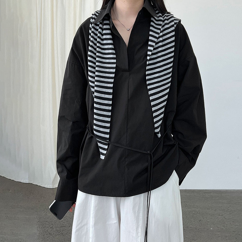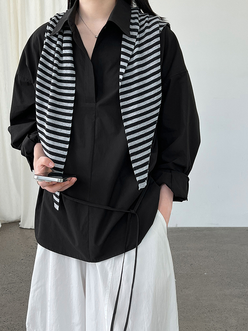 【トップス】韓国風 ポロカラー シャツ レディース 2025秋新作 ウエストリボン 美シルエット レトロブラウス【SNシリーズ】