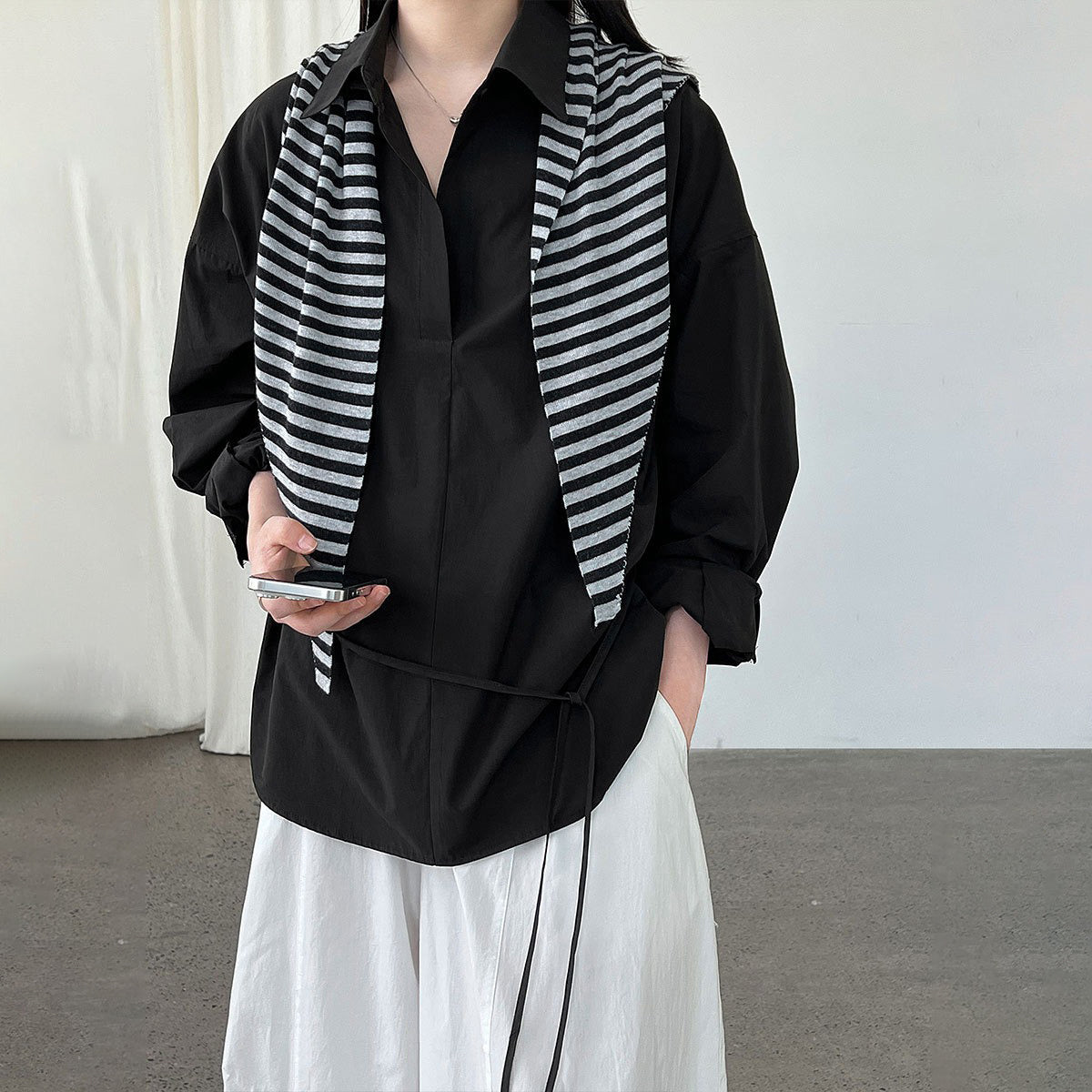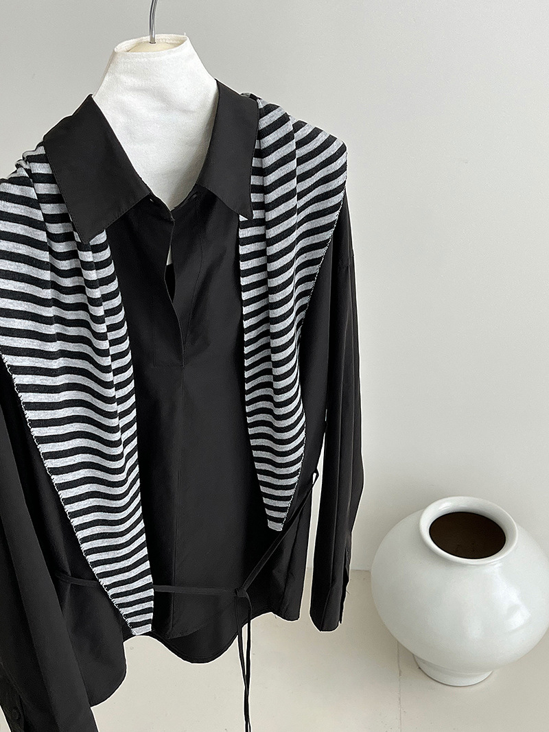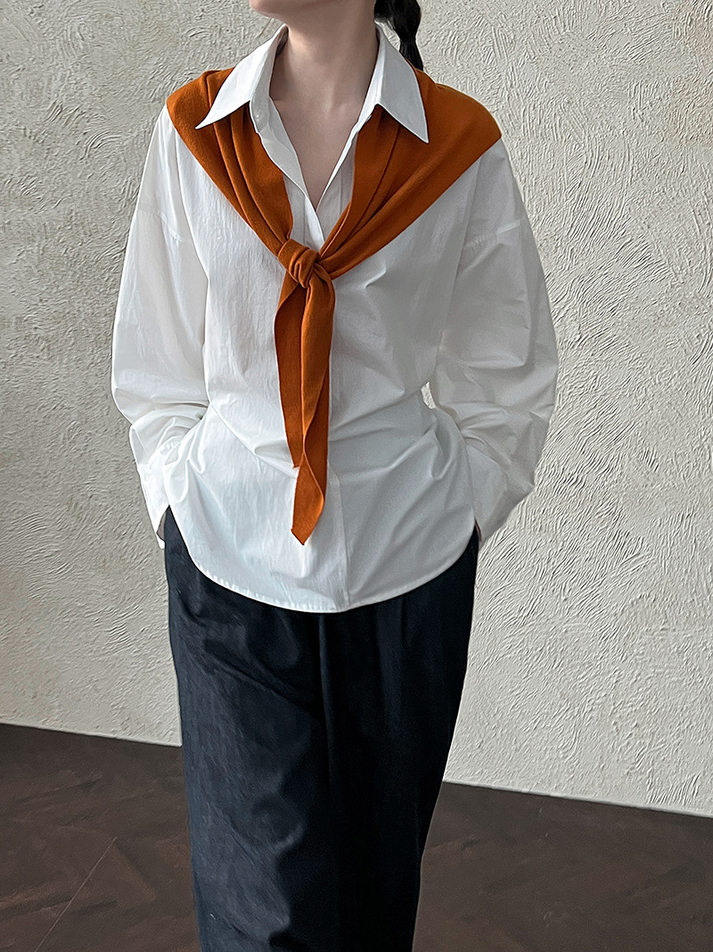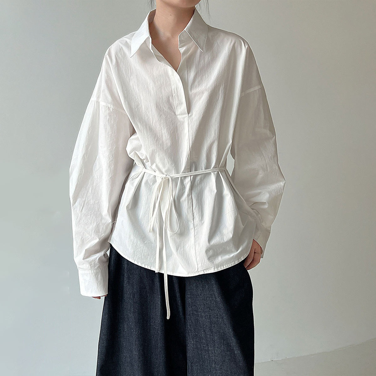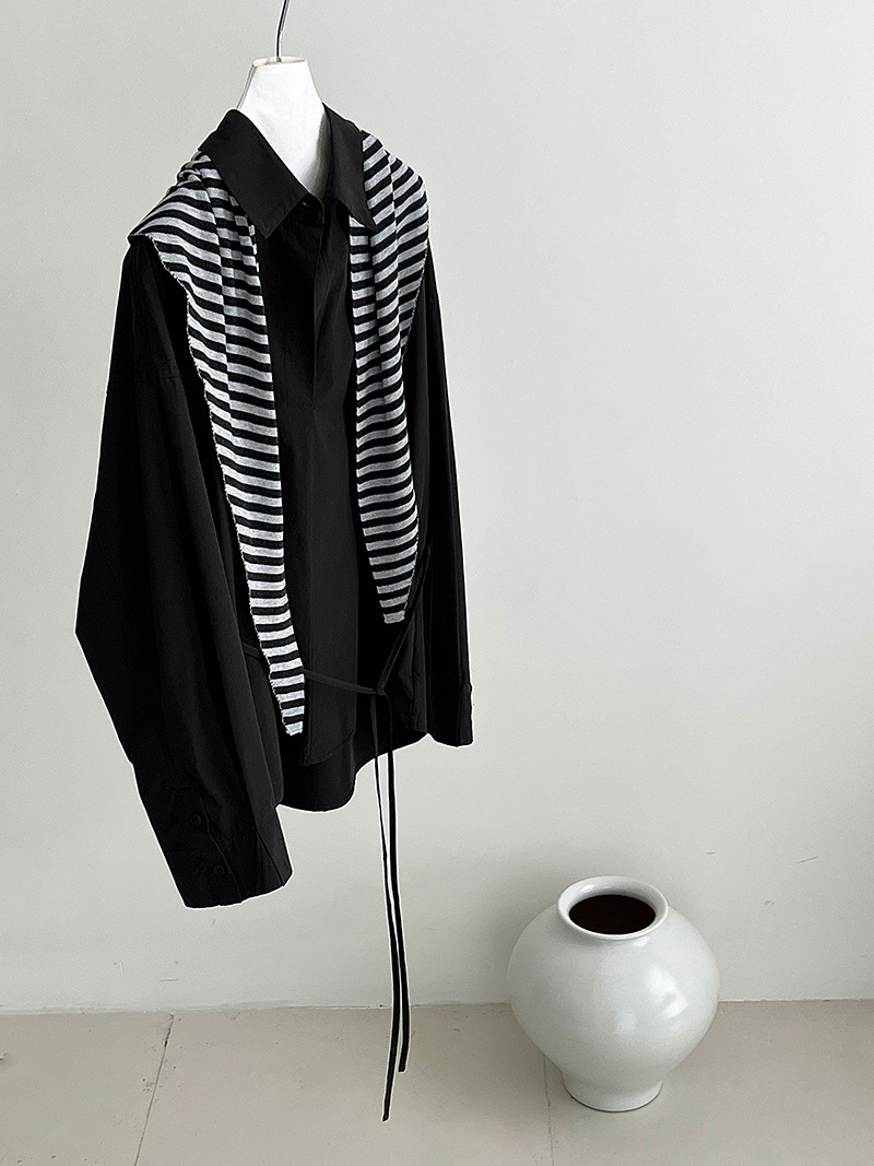 【トップス】韓国風 ポロカラー シャツ レディース 2025秋新作 ウエストリボン 美シルエット レトロブラウス【SNシリーズ】