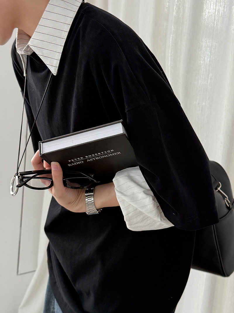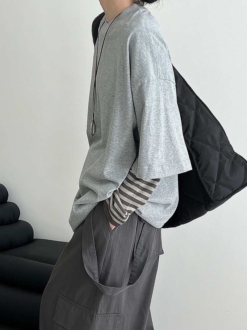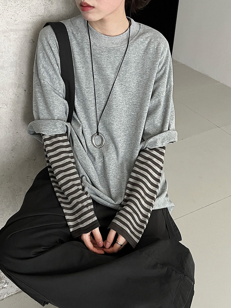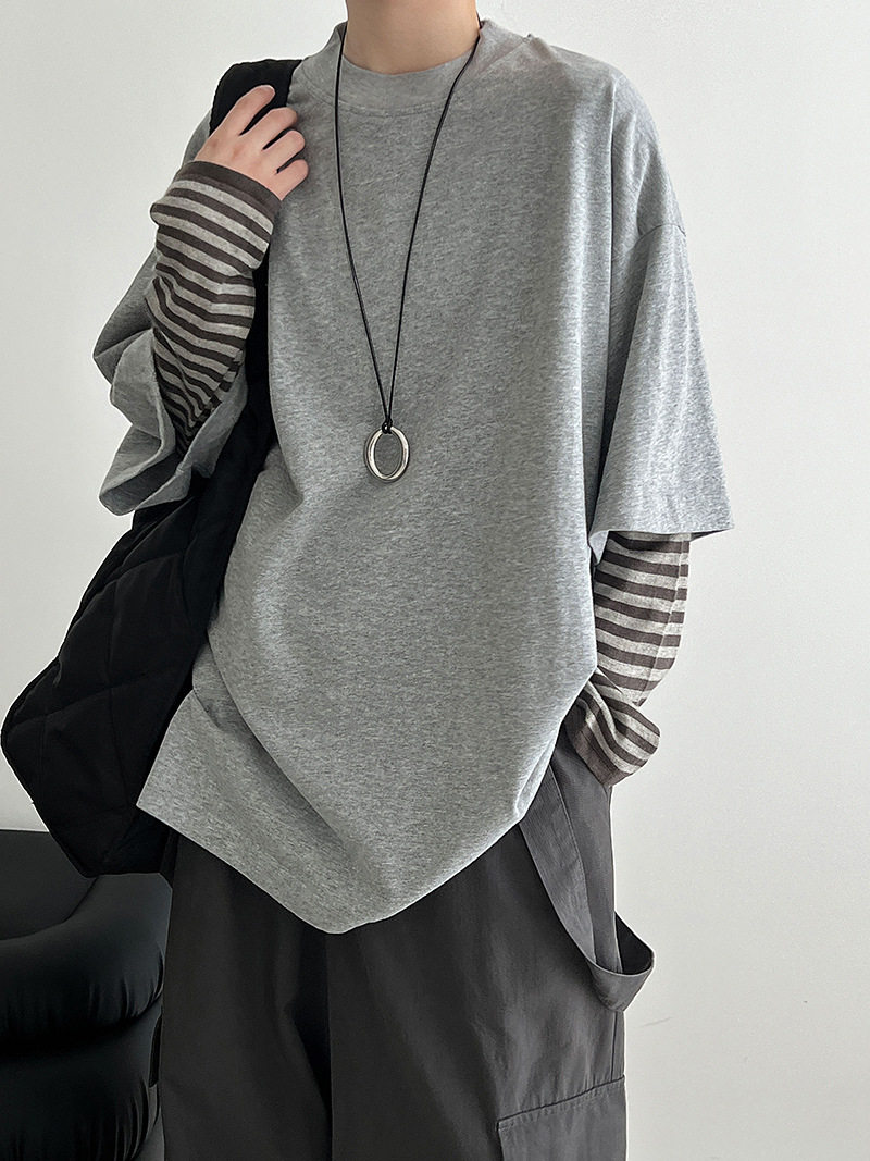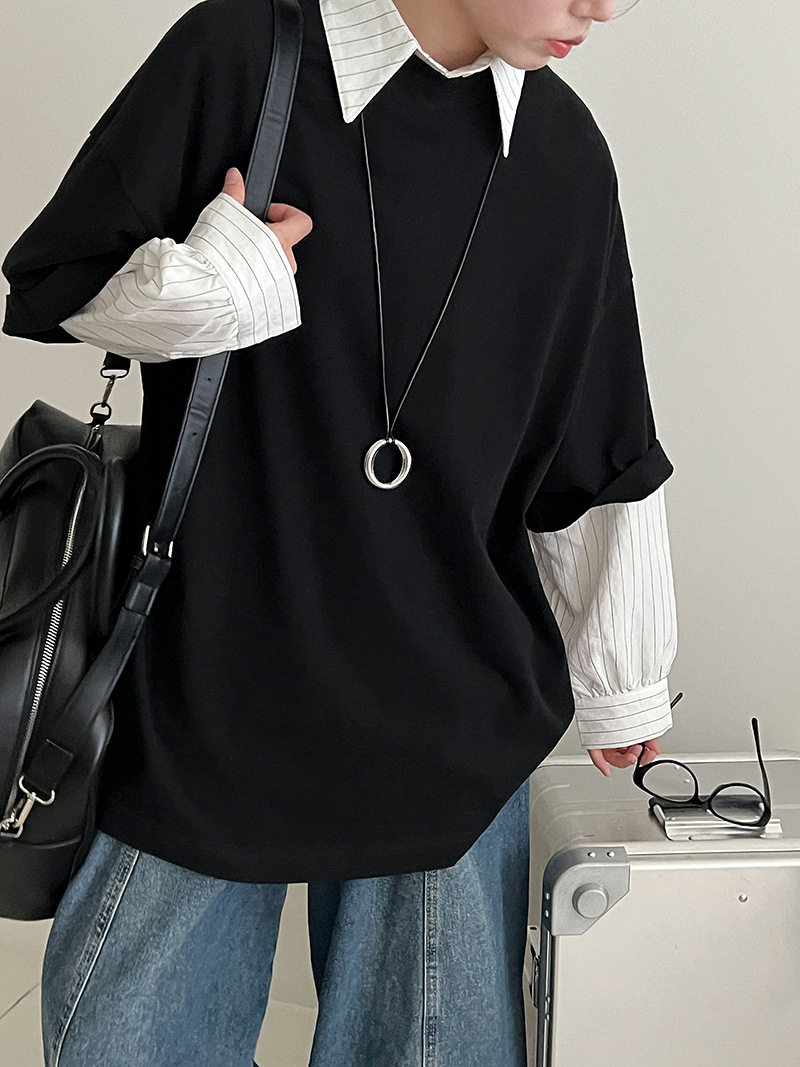 【トップス】フェイクレイヤード フードパーカー 春秋 男女兼用 ゆったり カジュアル トップス【FCシリーズ】