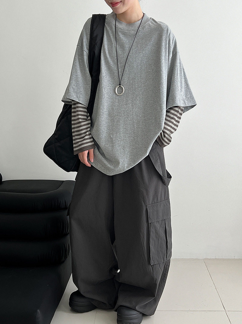 【商品名】【トップス】早秋おすすめ レディース シンプル 五分袖 BFシルエット ゆったり 半袖Tシャツ【JZシリーズ】