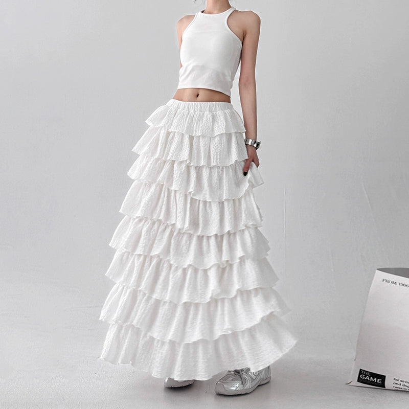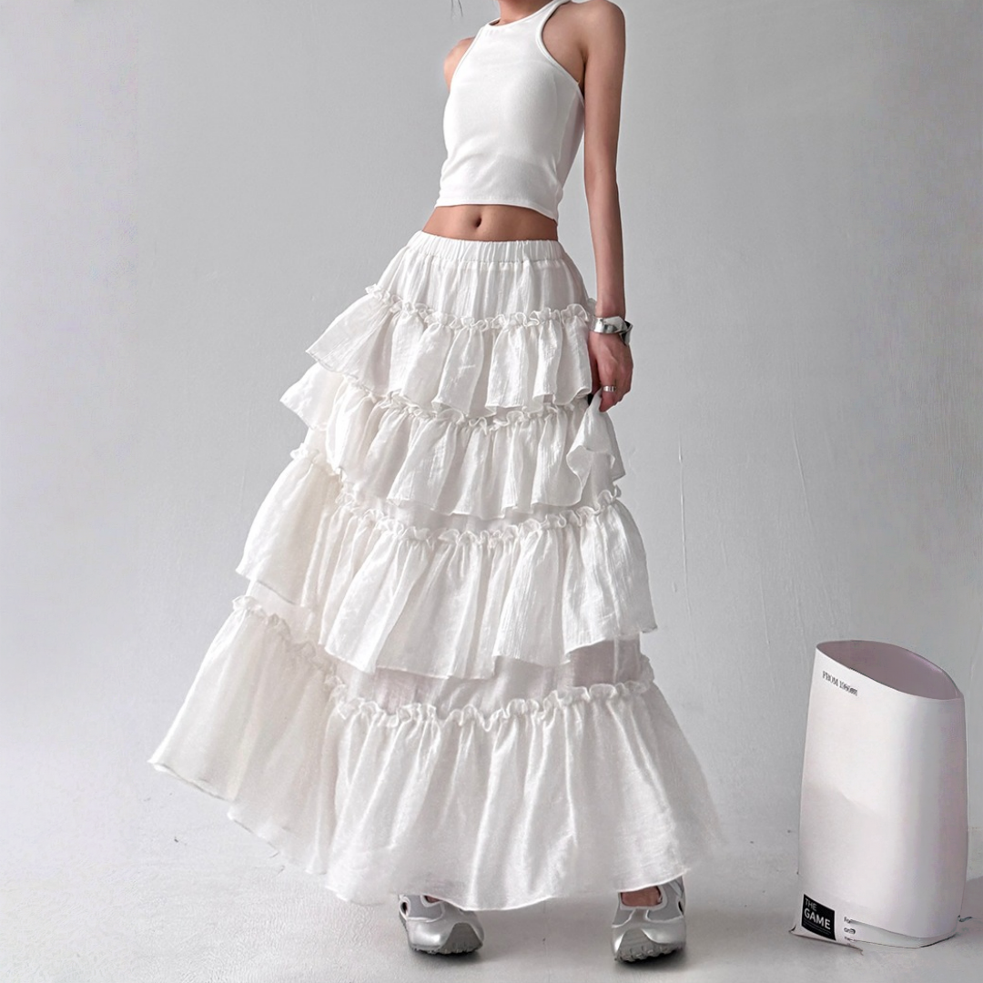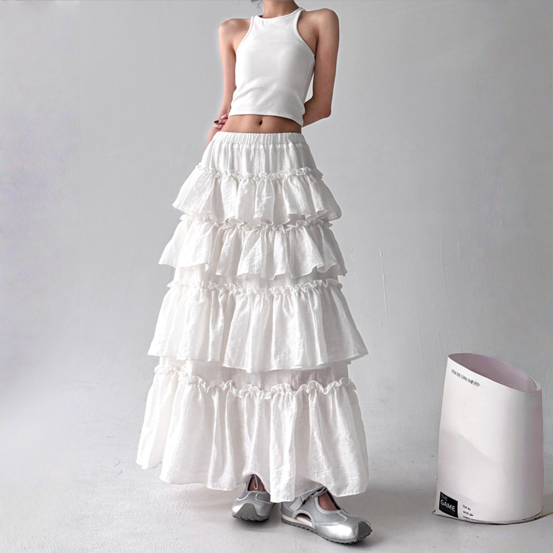 【ボトムス】春 秋 冬 夏 オリジナルデザイン ティアードスカート 【FCシリーズ】