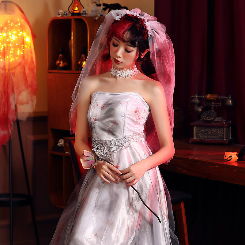 【ハロウィン】コスプレ Ghost ゴーストブライド 新品 ミイラ ロングドレス レディース