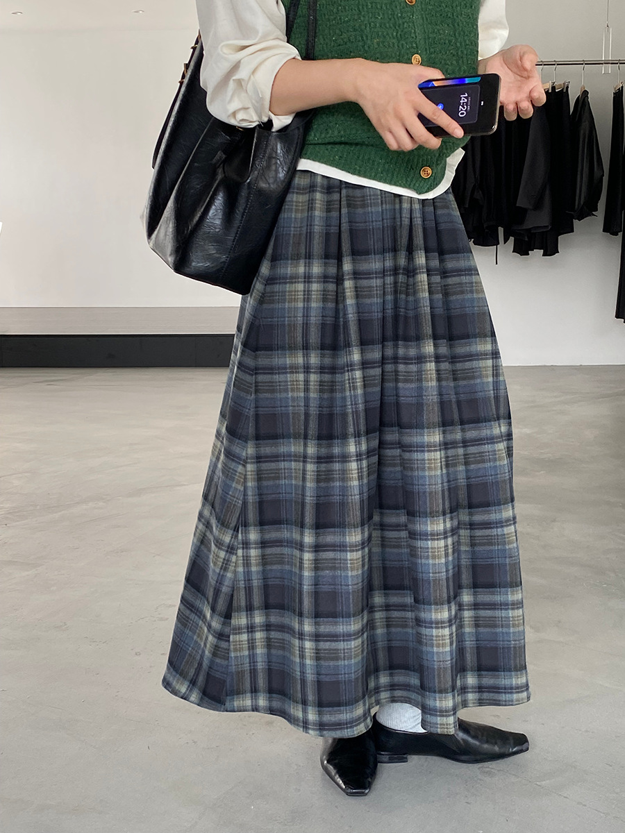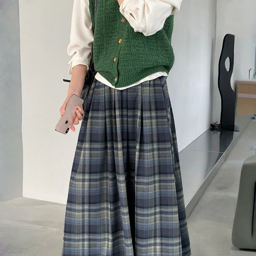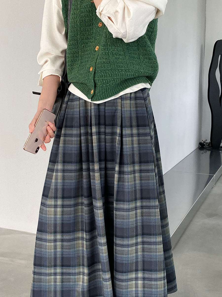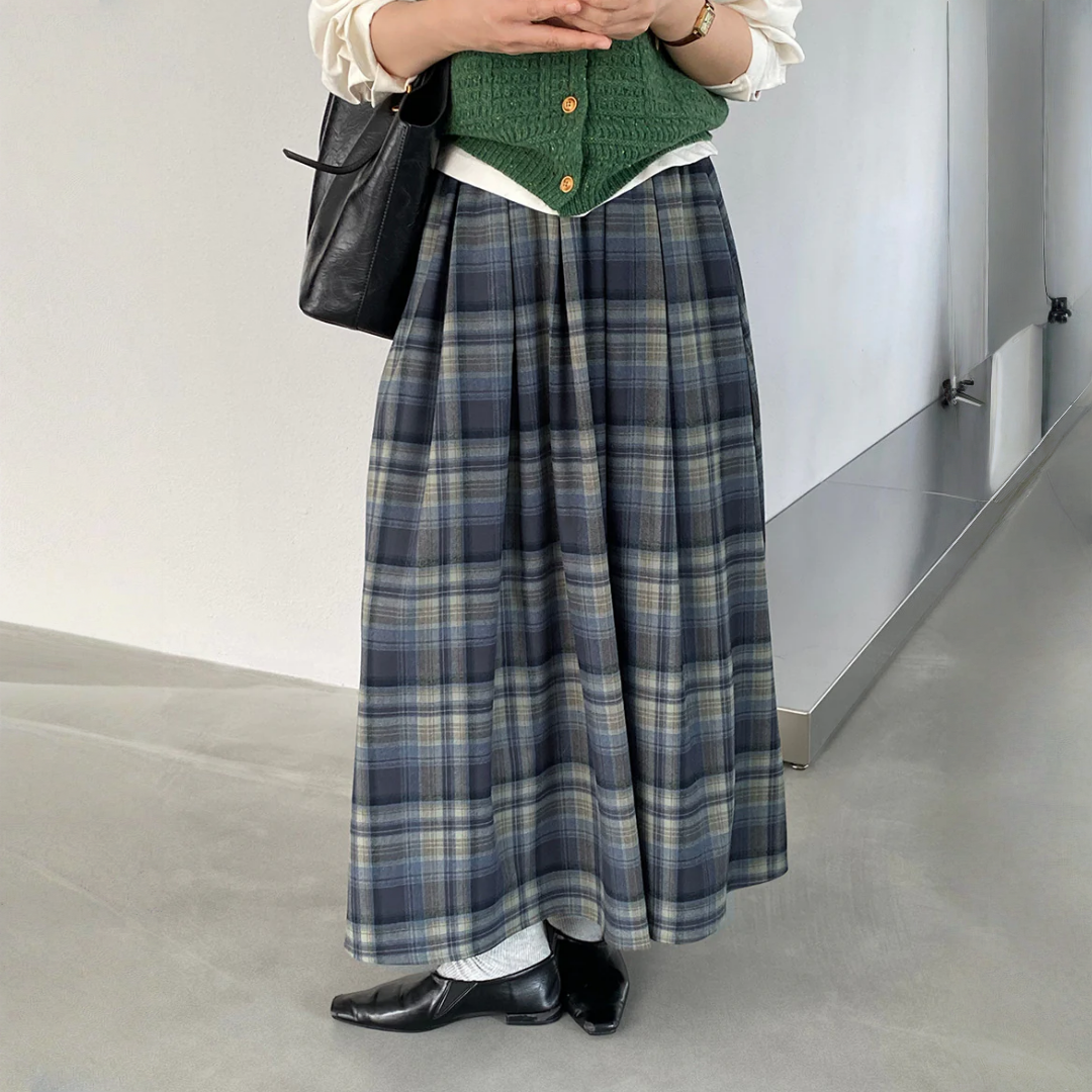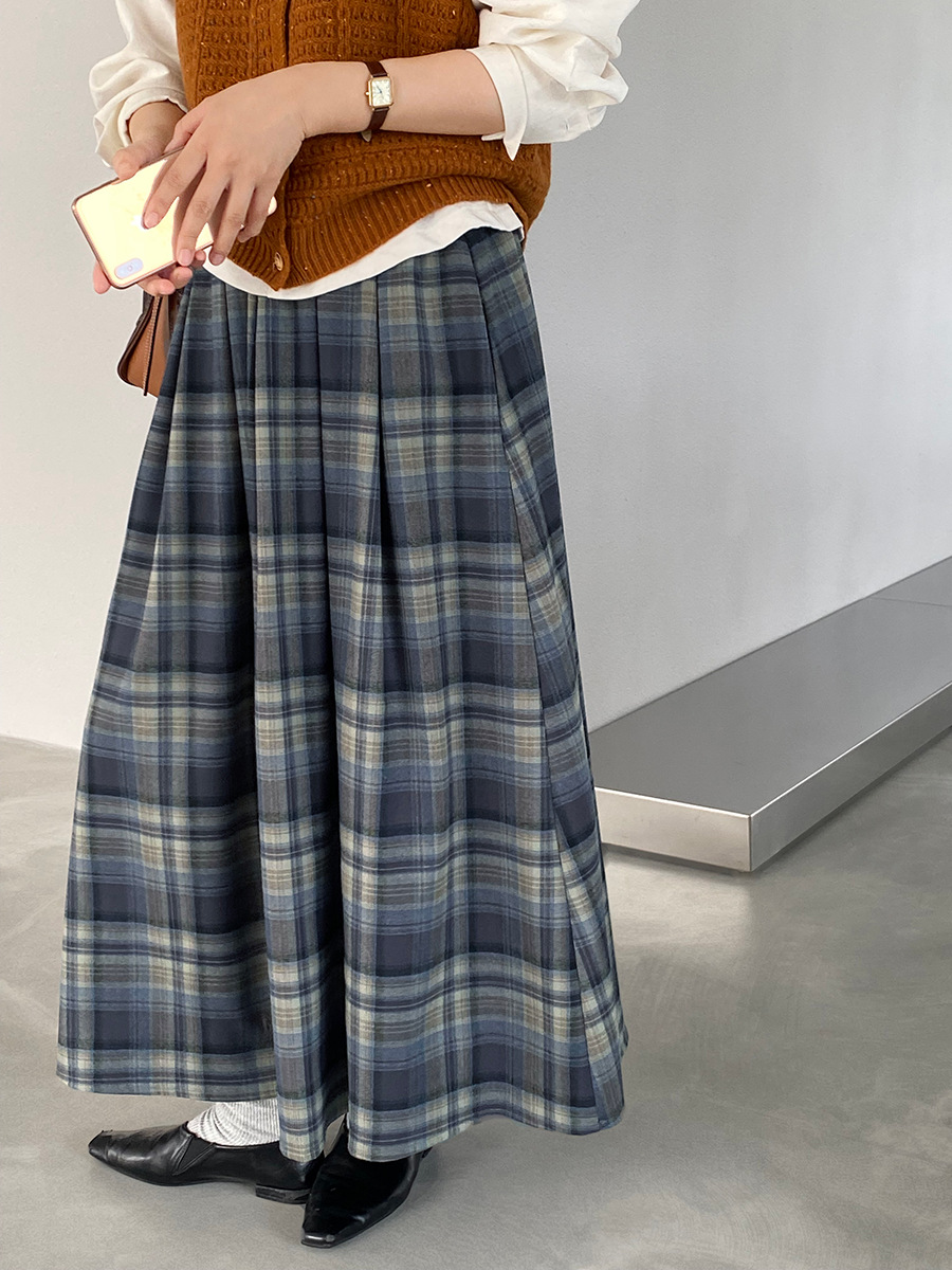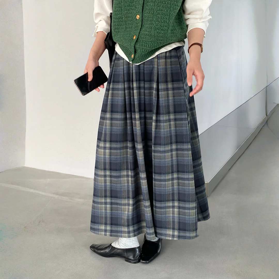 【ボトムス】春 秋 冬 チェック柄 スクール風 ロング丈 Aラインスカート 【JZシリーズ】