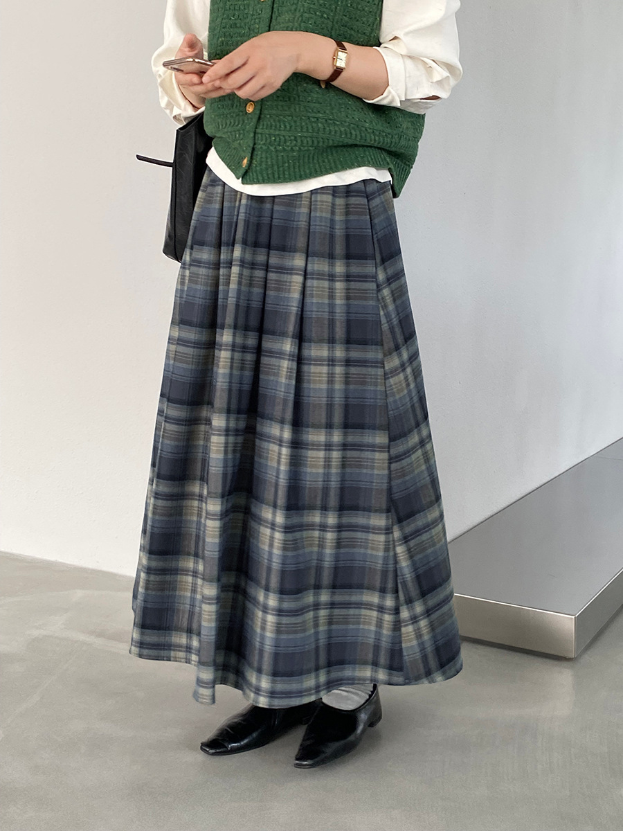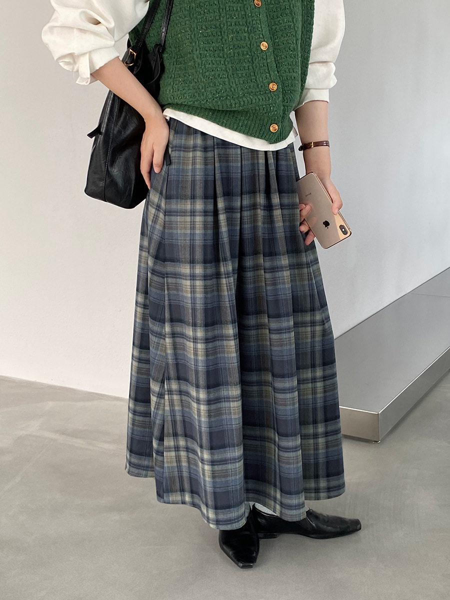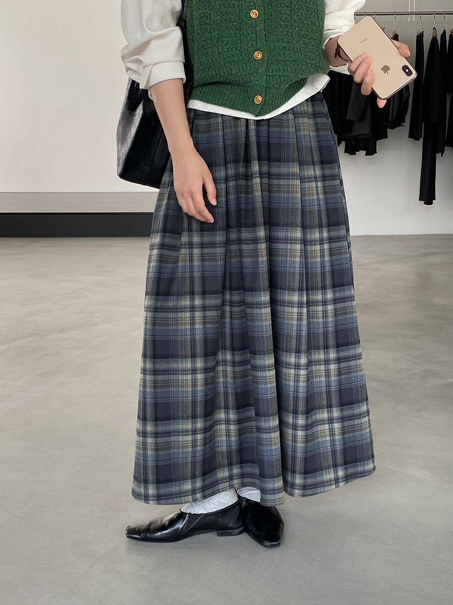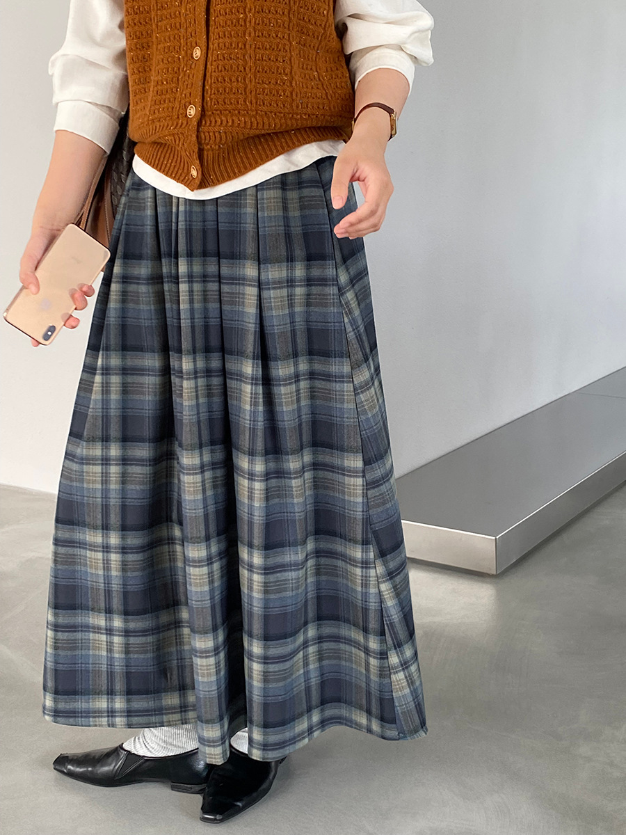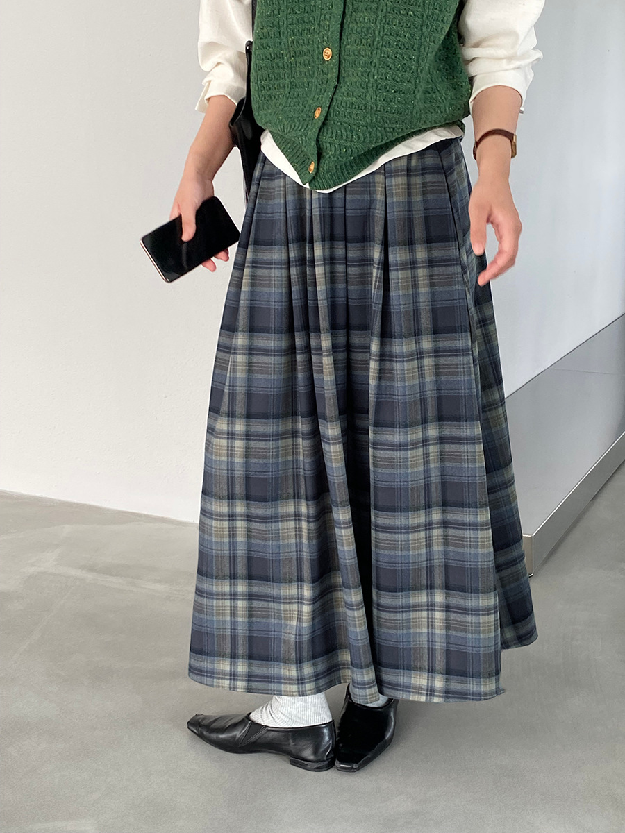 【ボトムス】春 秋 冬 チェック柄 スクール風 ロング丈 Aラインスカート 【JZシリーズ】