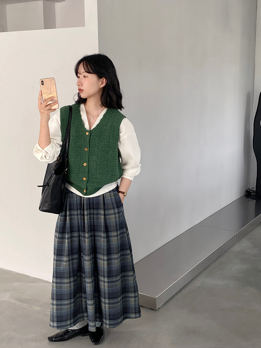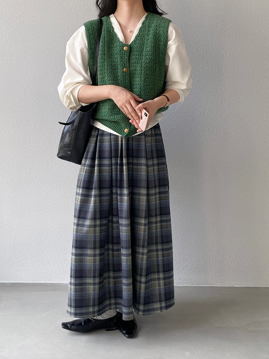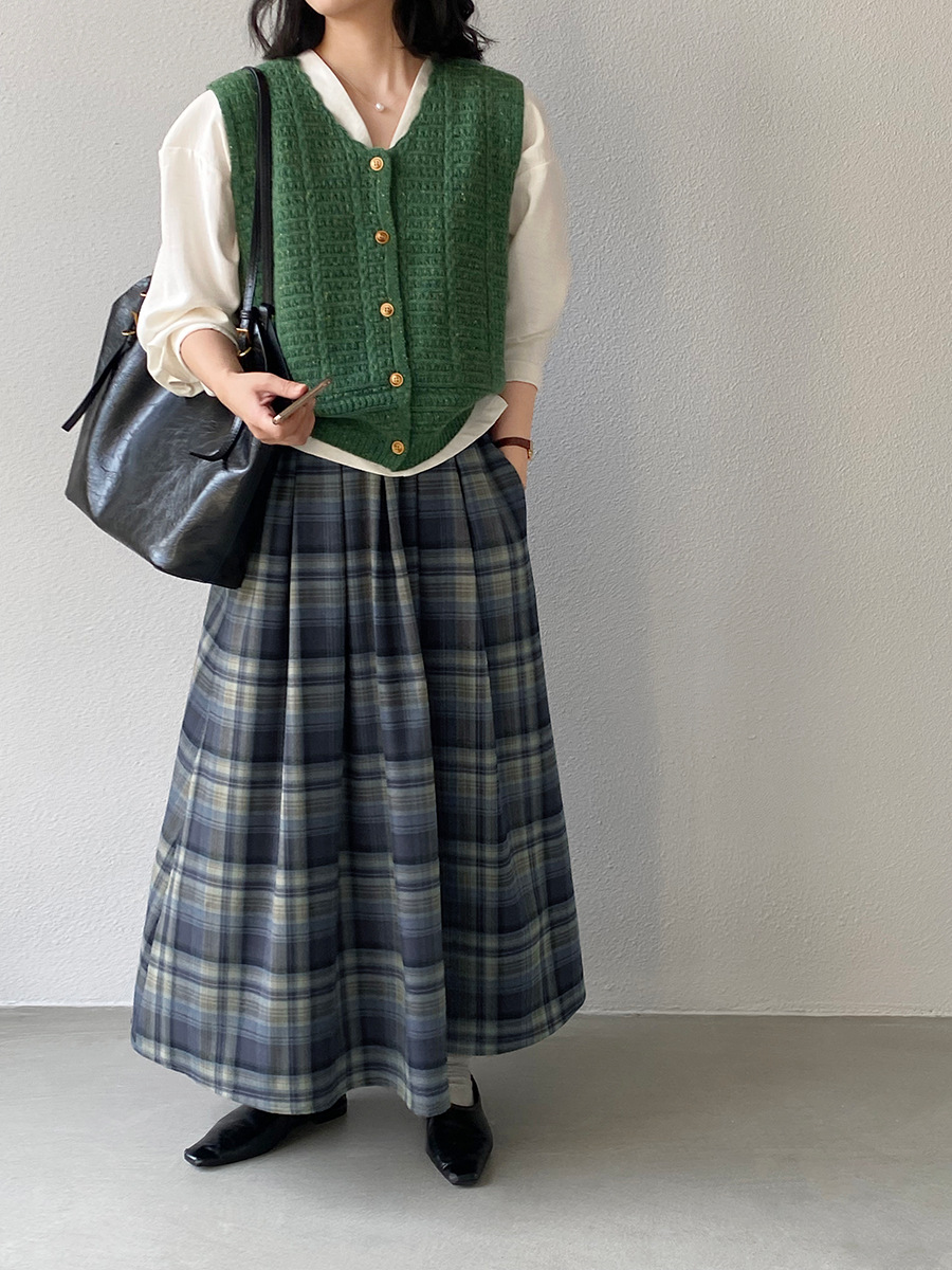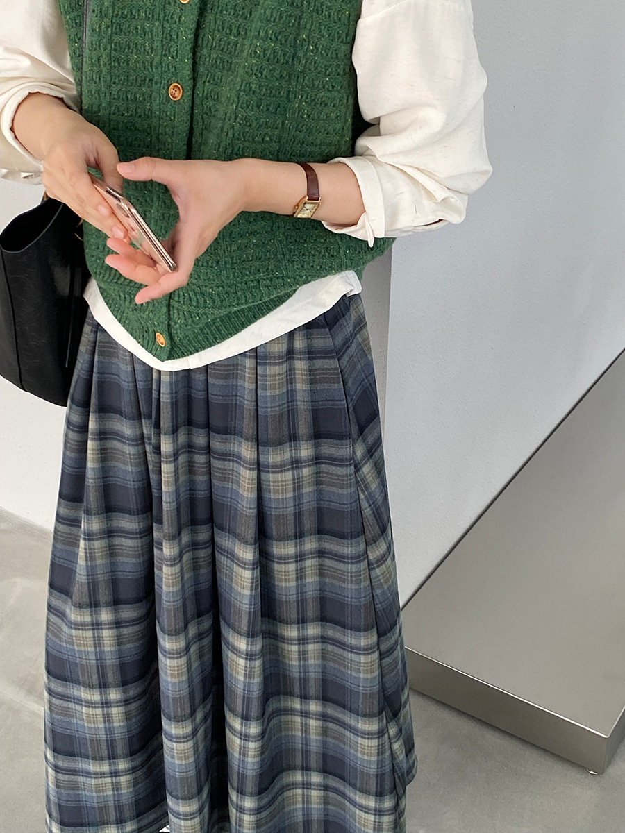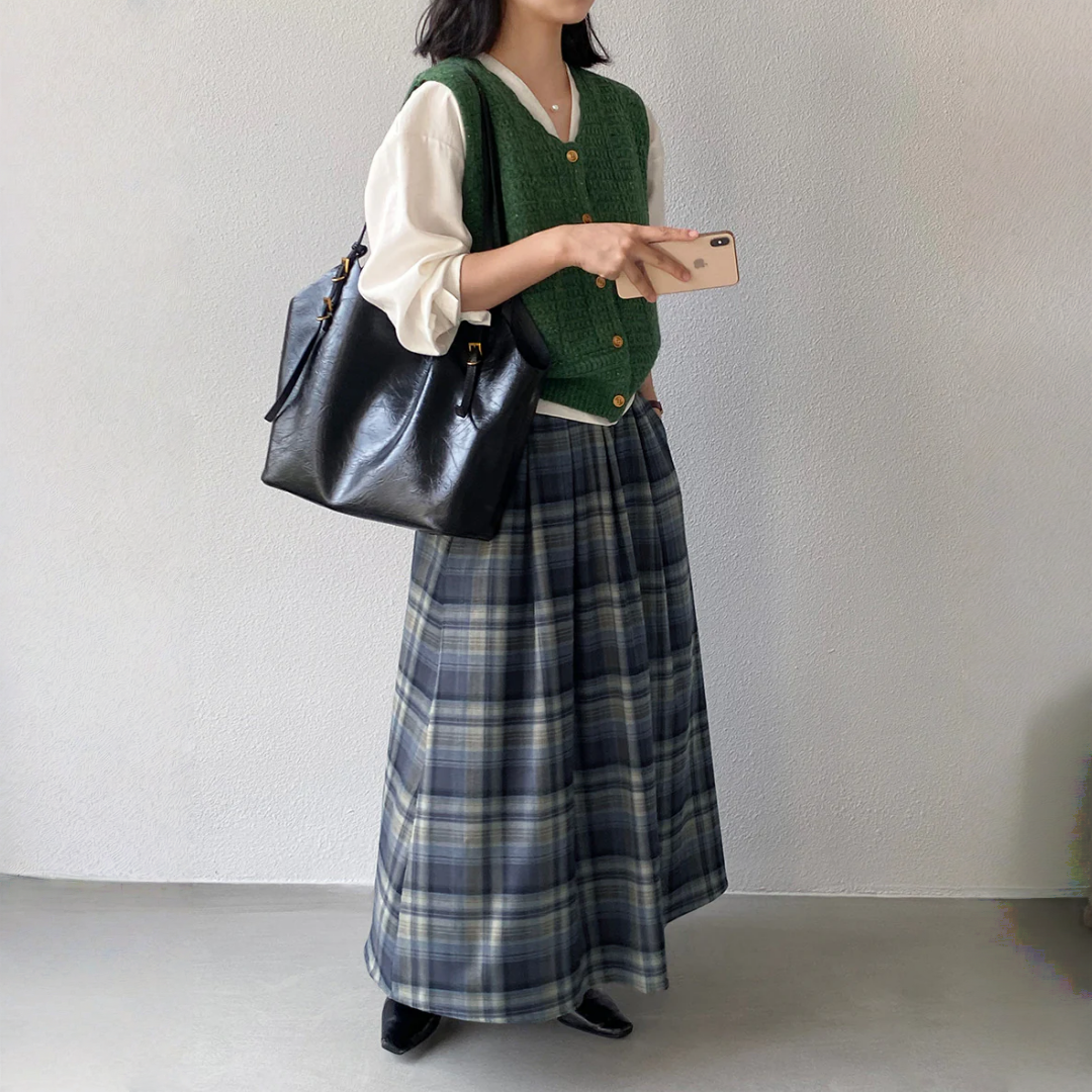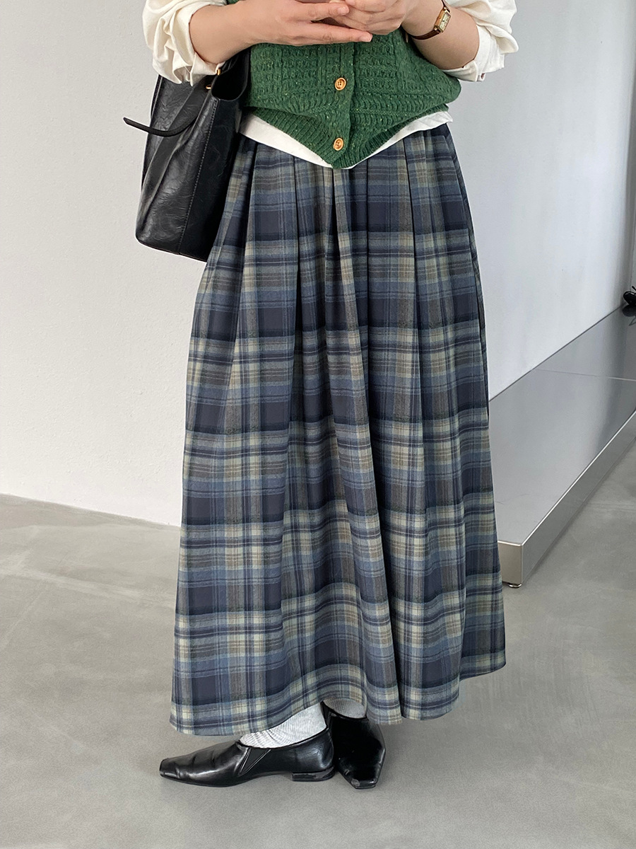 【ボトムス】春 秋 冬 チェック柄 スクール風 ロング丈 Aラインスカート 【JZシリーズ】