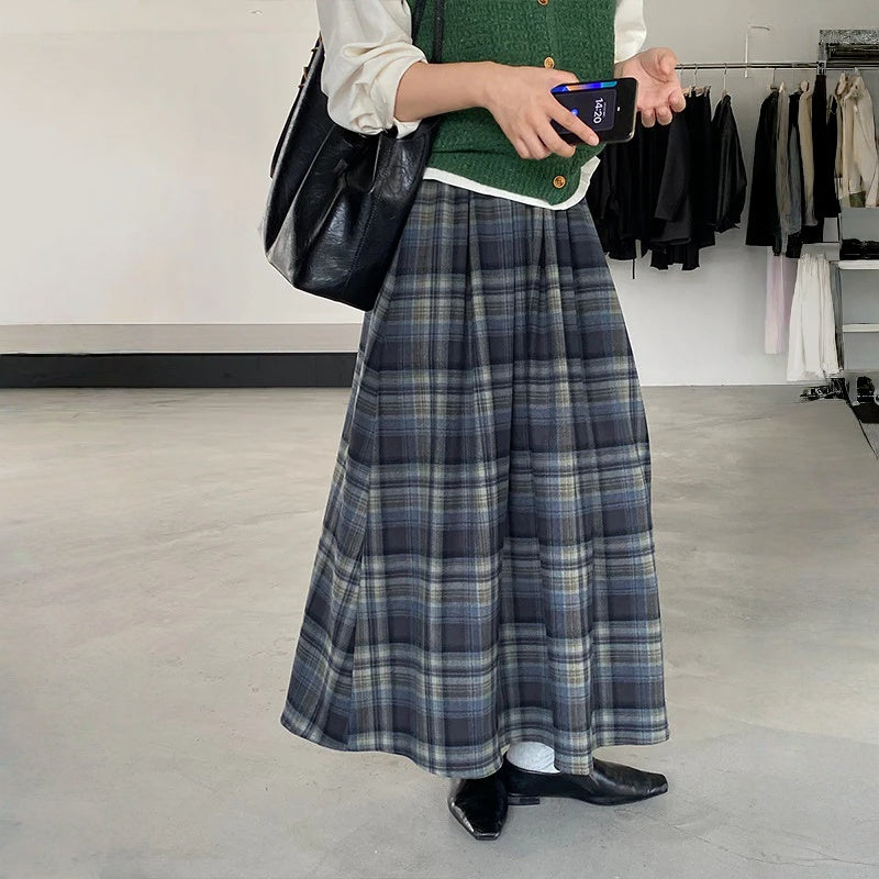 【商品名】【ボトムス】春 秋 冬 チェック柄 スクール風 ロング丈 Aラインスカート 【JZシリーズ】