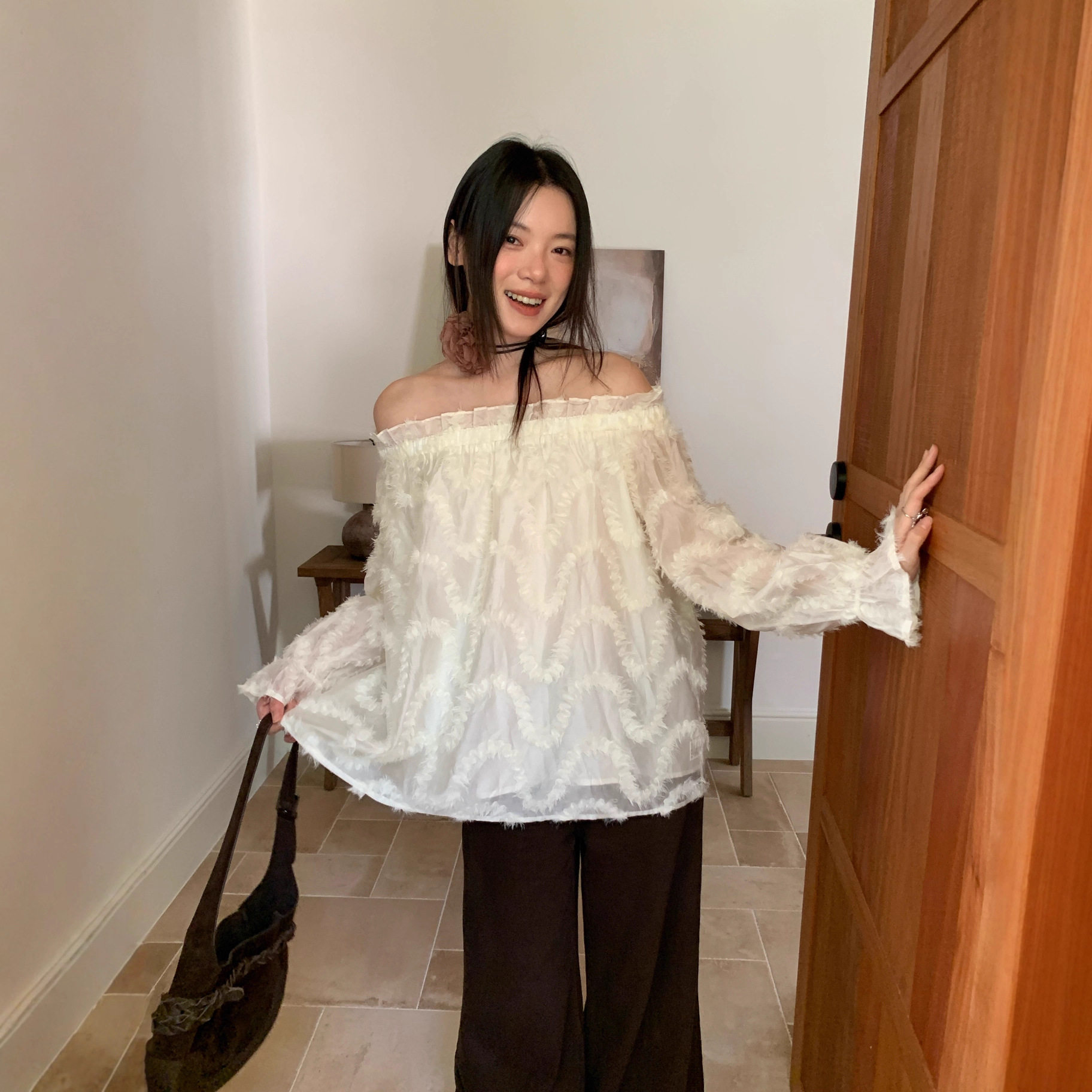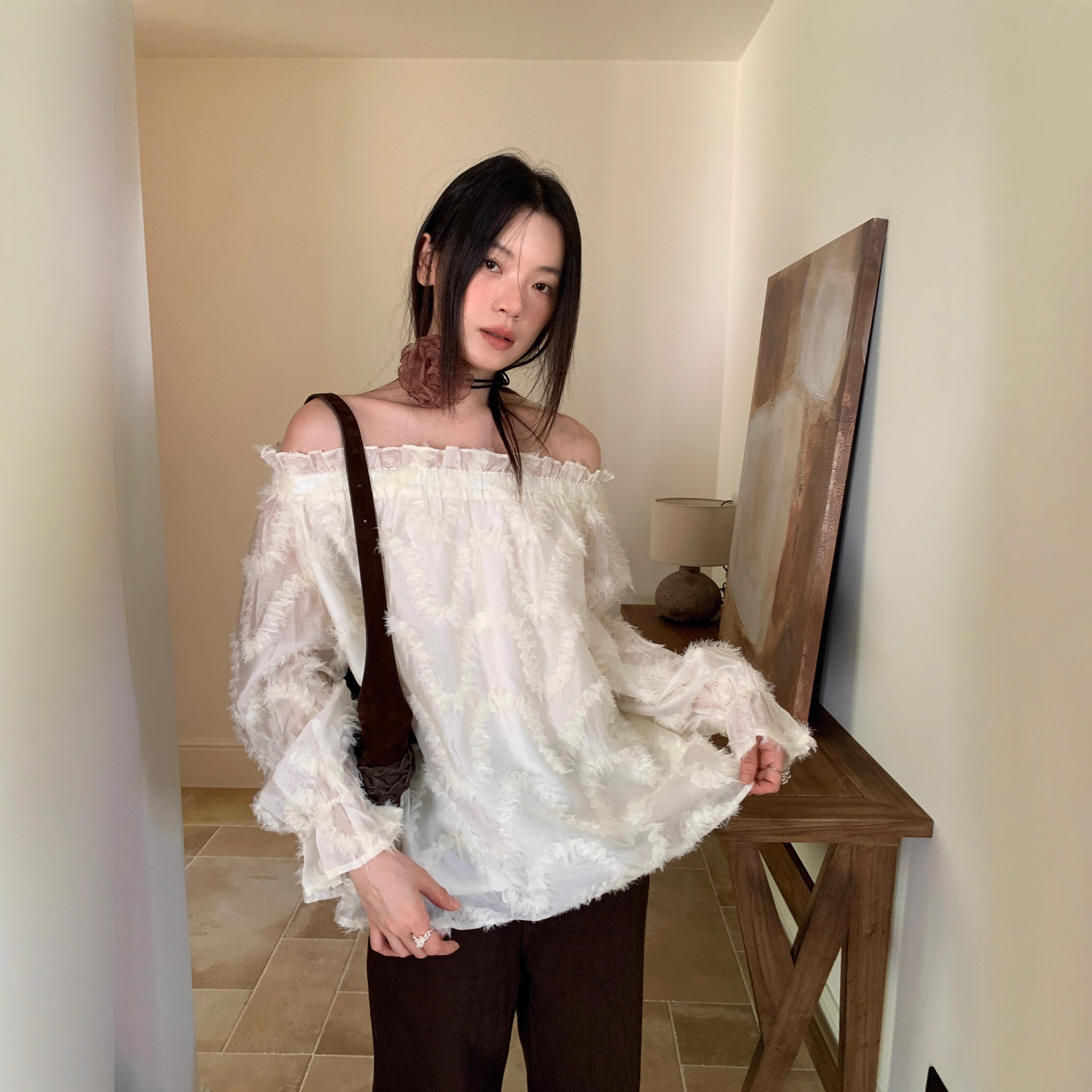 【商品名】【トップス】春 秋 冬 起毛加工 オフショルダー 若々しい印象 シャツ 【JZシリーズ】