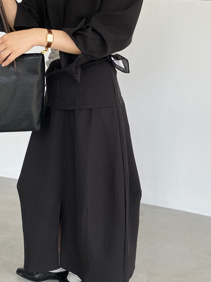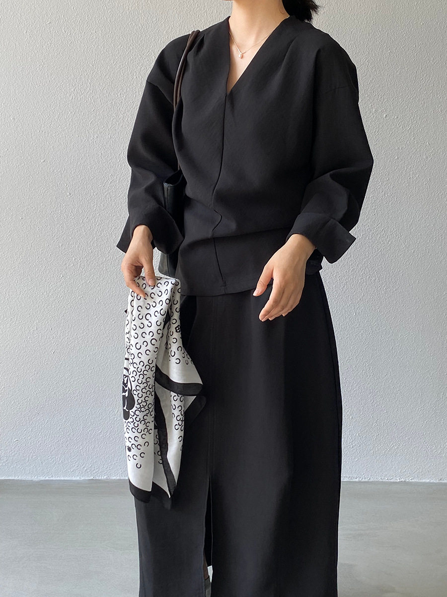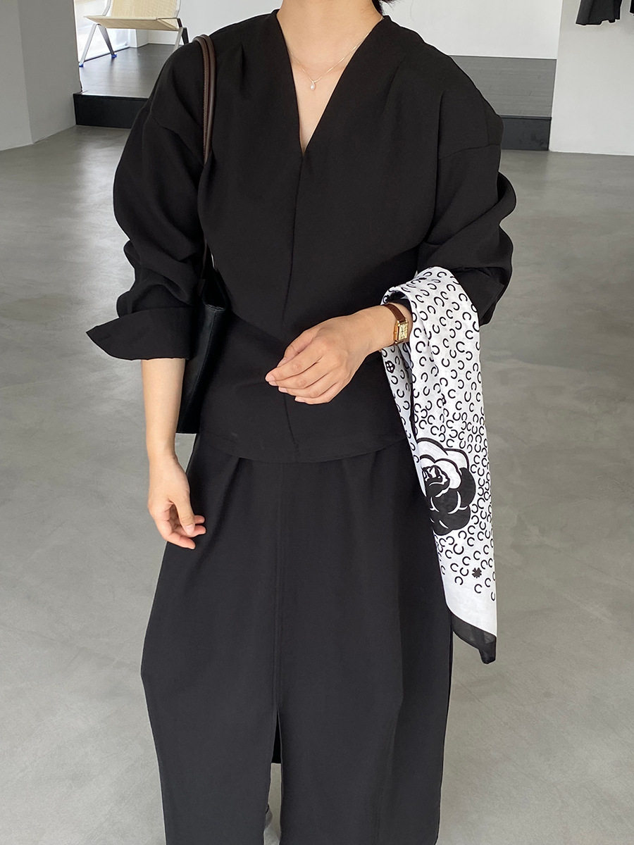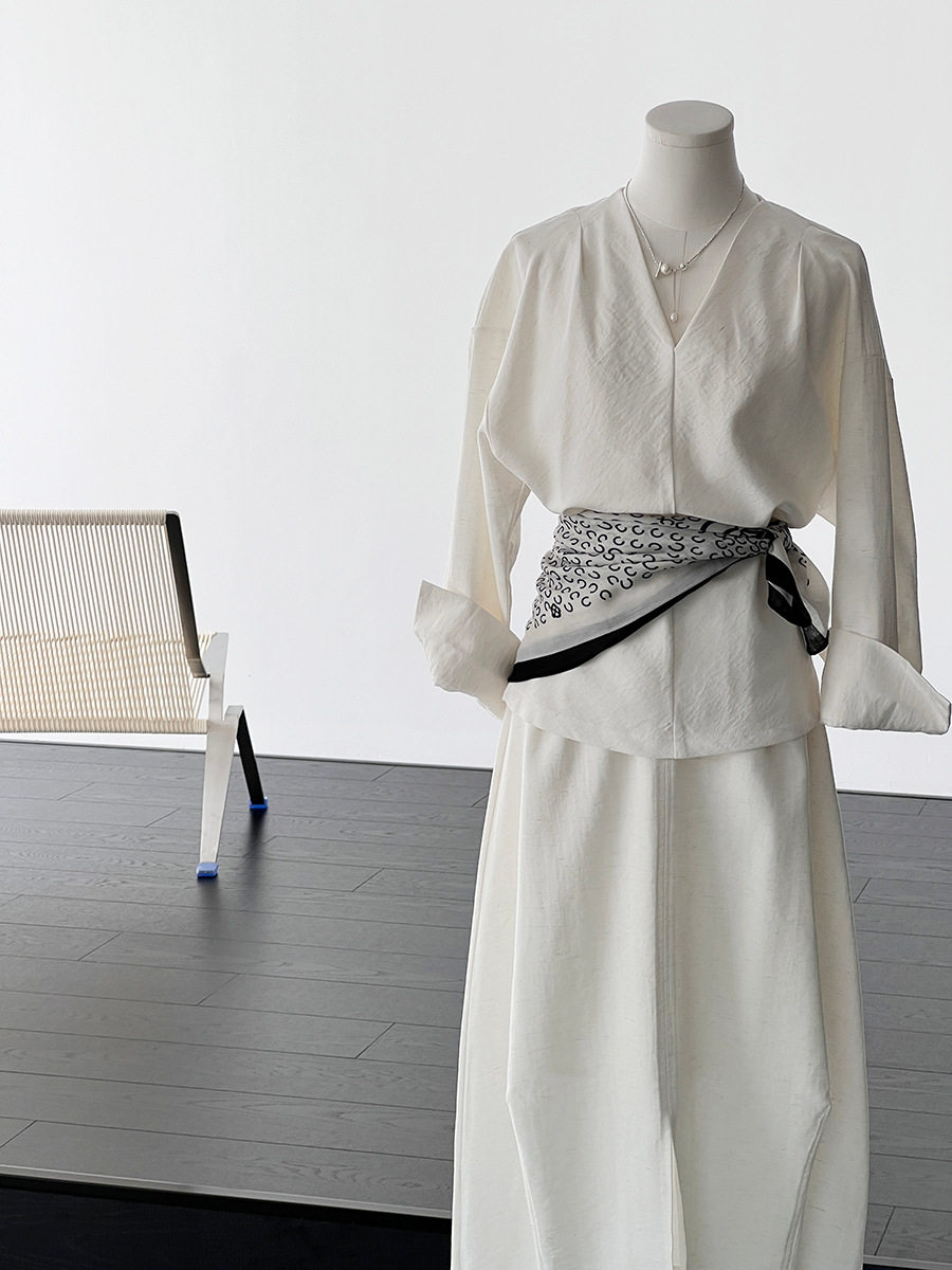 【商品名】【セットアップ】春 秋 ウエストシェイプシャツ + バルーンスカート + スカーフ付き 3点上下セット 【JZシリーズ】