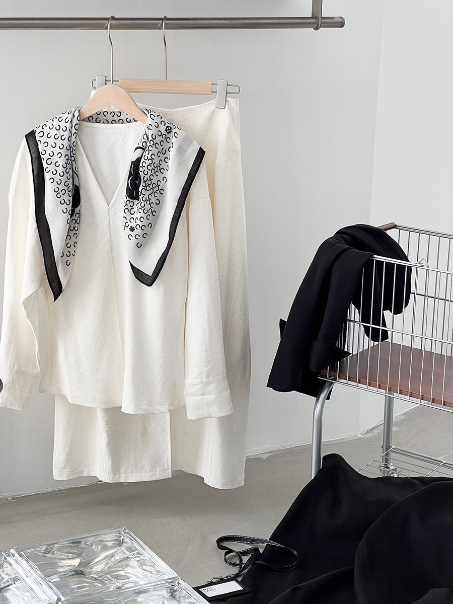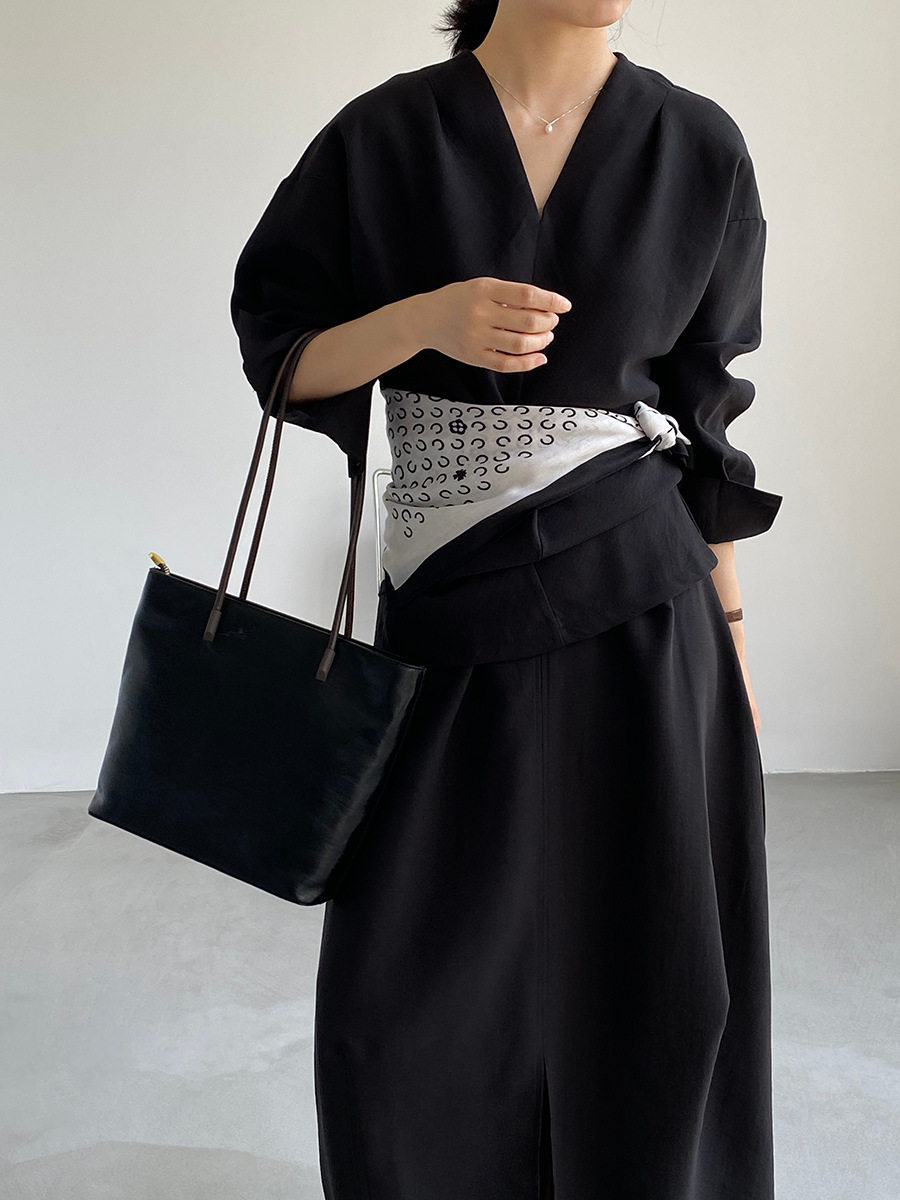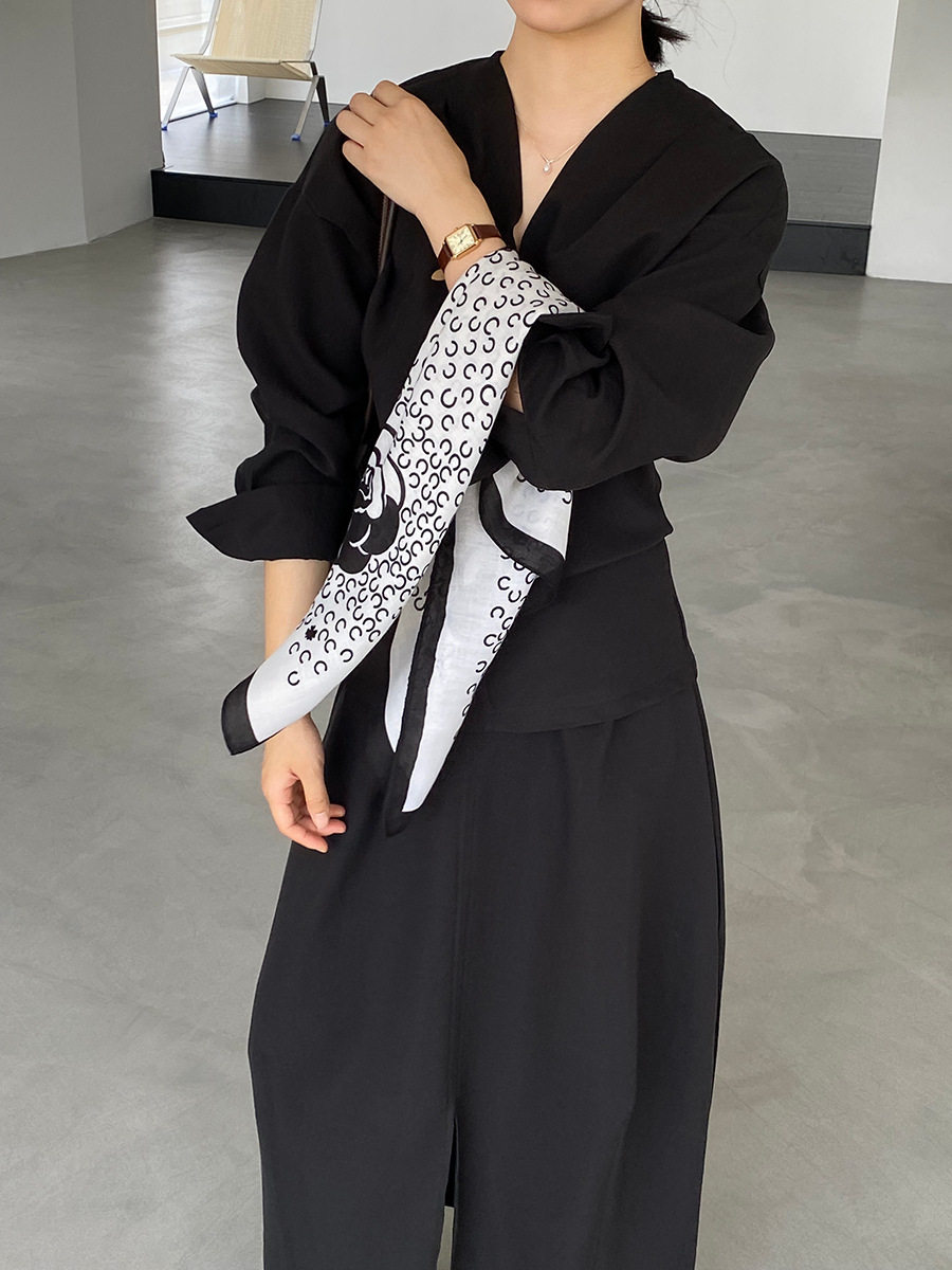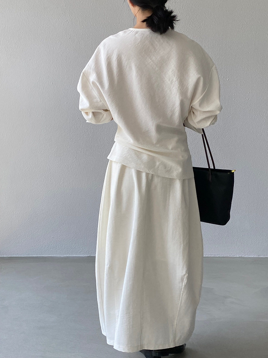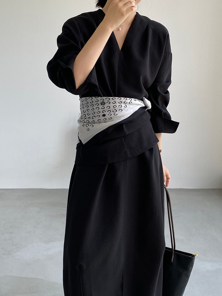 【商品名】【セットアップ】春 秋 ウエストシェイプシャツ + バルーンスカート + スカーフ付き 3点上下セット 【JZシリーズ】