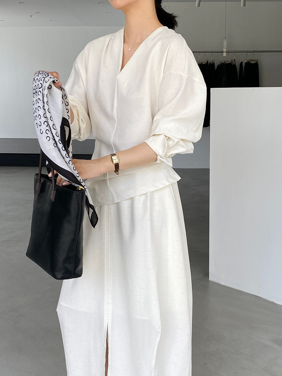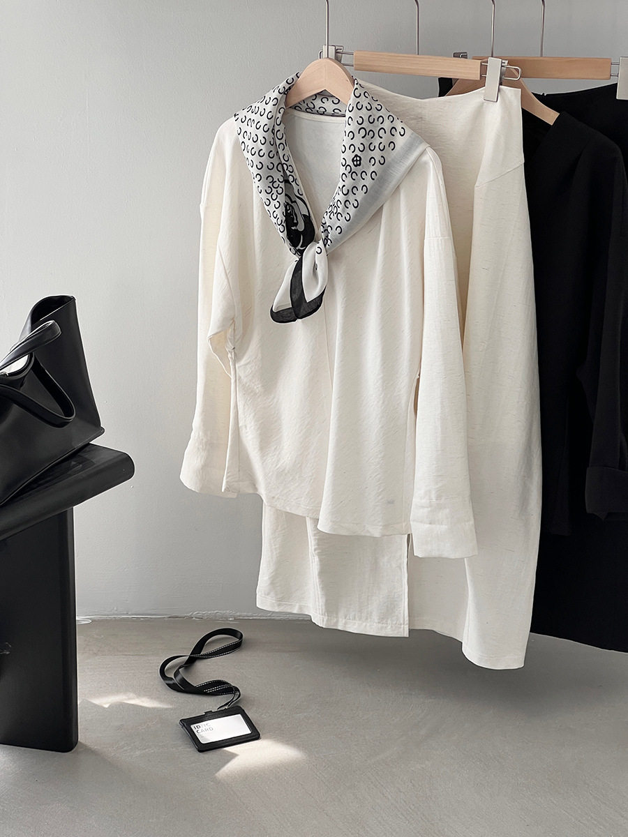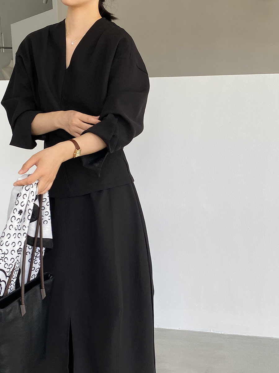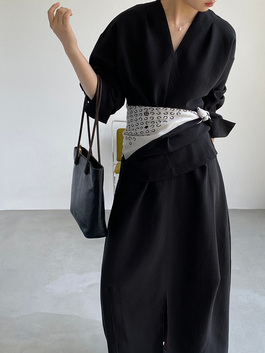 【商品名】【セットアップ】春 秋 ウエストシェイプシャツ + バルーンスカート + スカーフ付き 3点上下セット 【JZシリーズ】