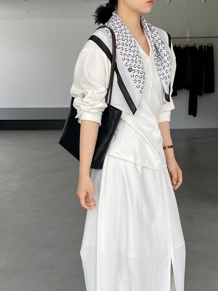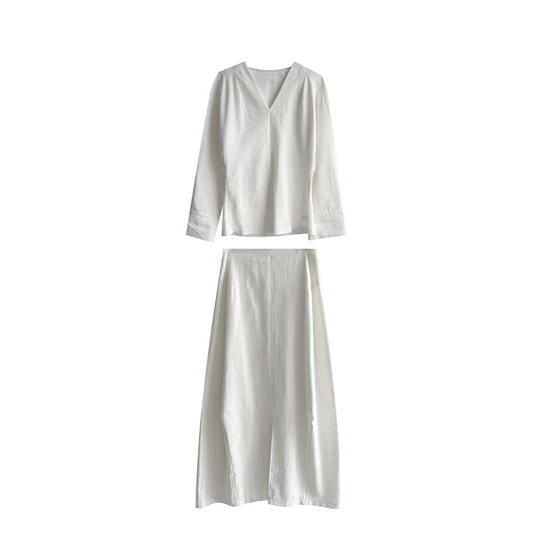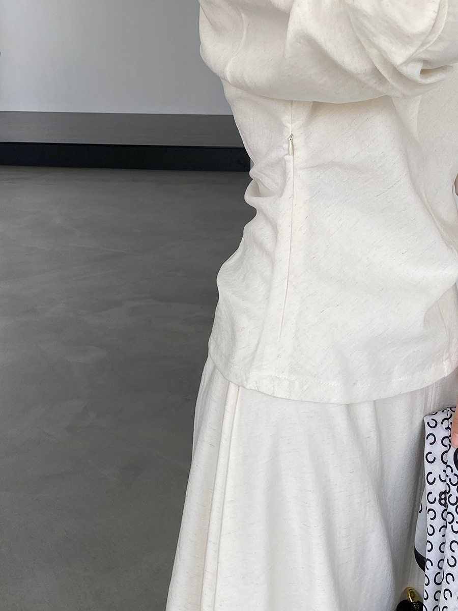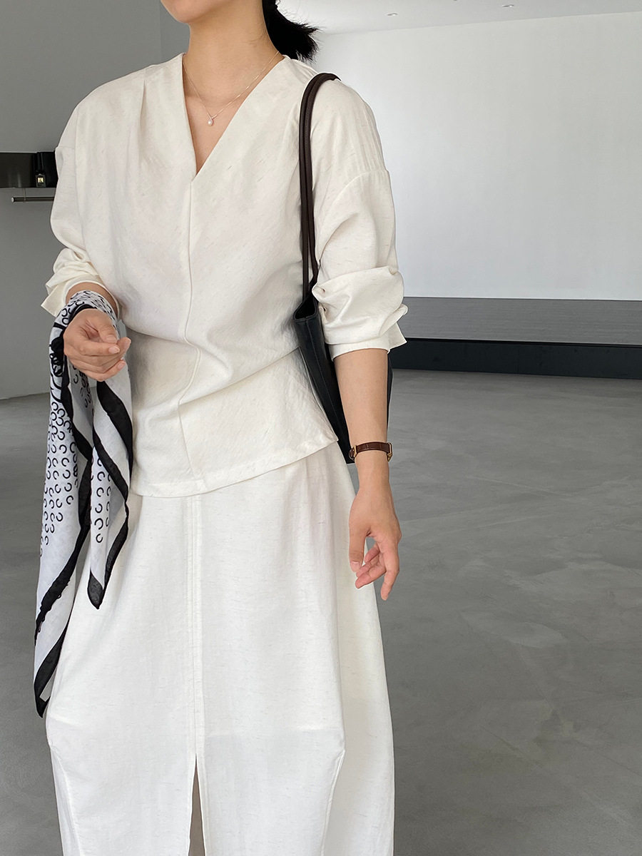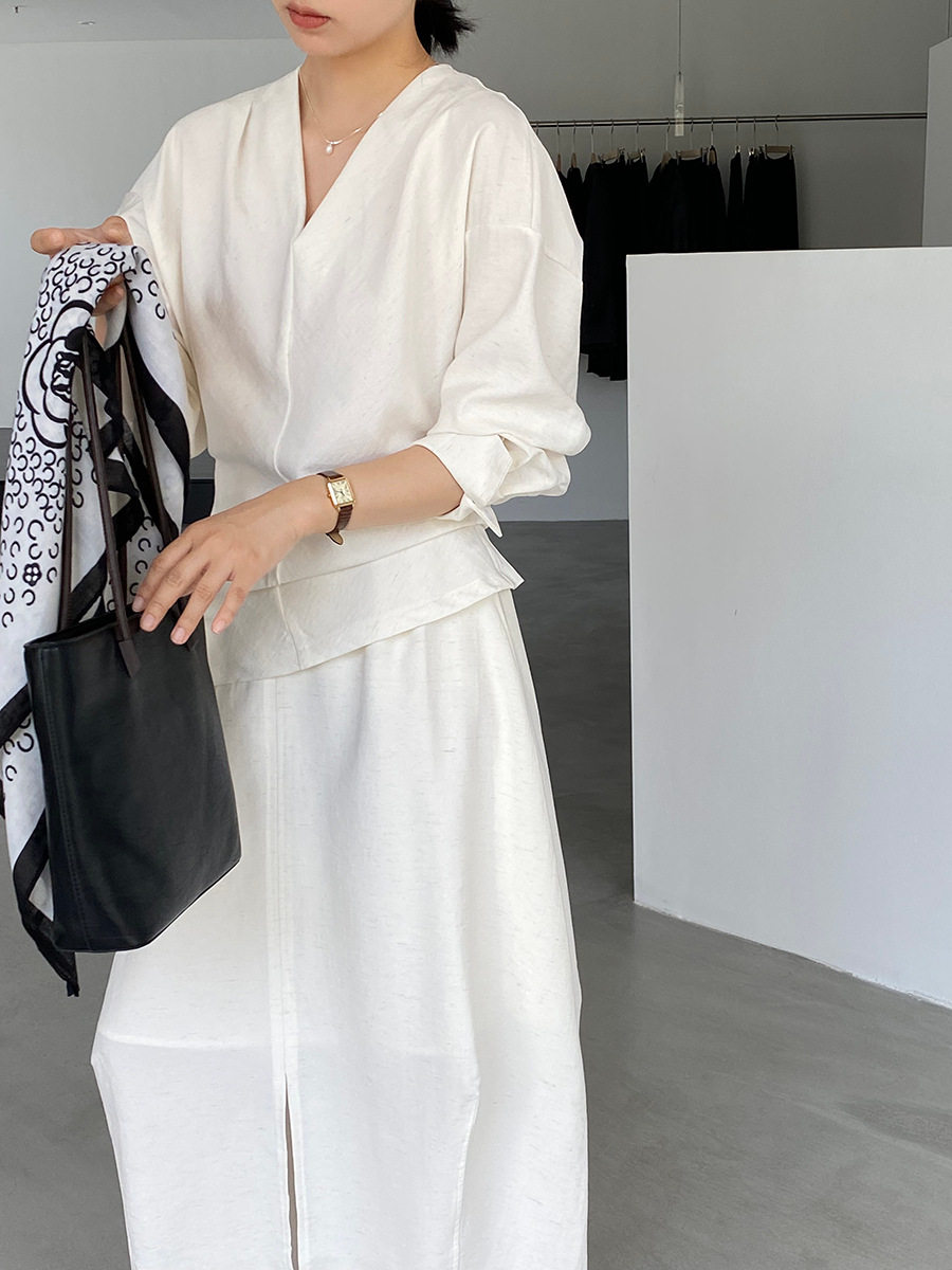 【商品名】【セットアップ】春 秋 ウエストシェイプシャツ + バルーンスカート + スカーフ付き 3点上下セット 【JZシリーズ】