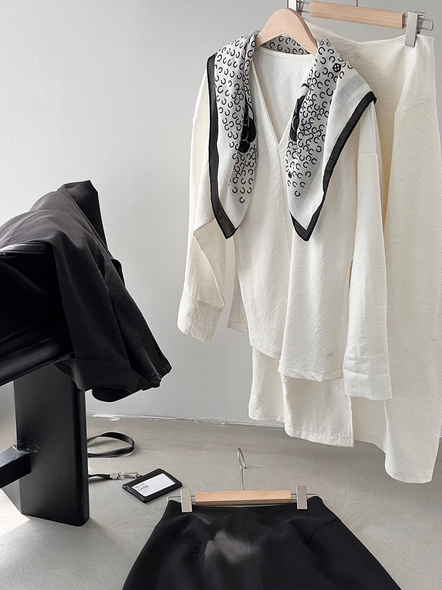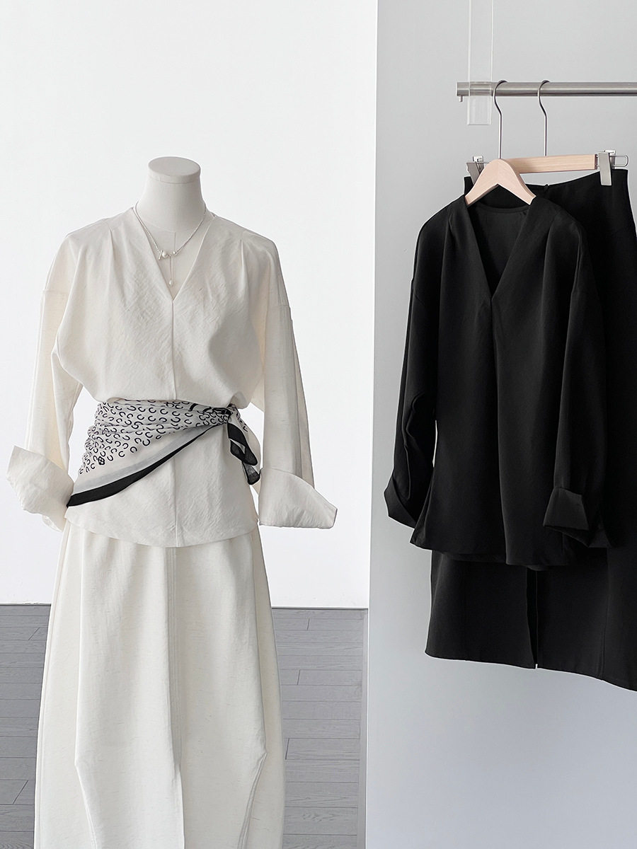 【セットアップ】春 秋 ウエストシェイプシャツ + バルーンスカート + スカーフ付き 3点上下セット 【JZシリーズ】