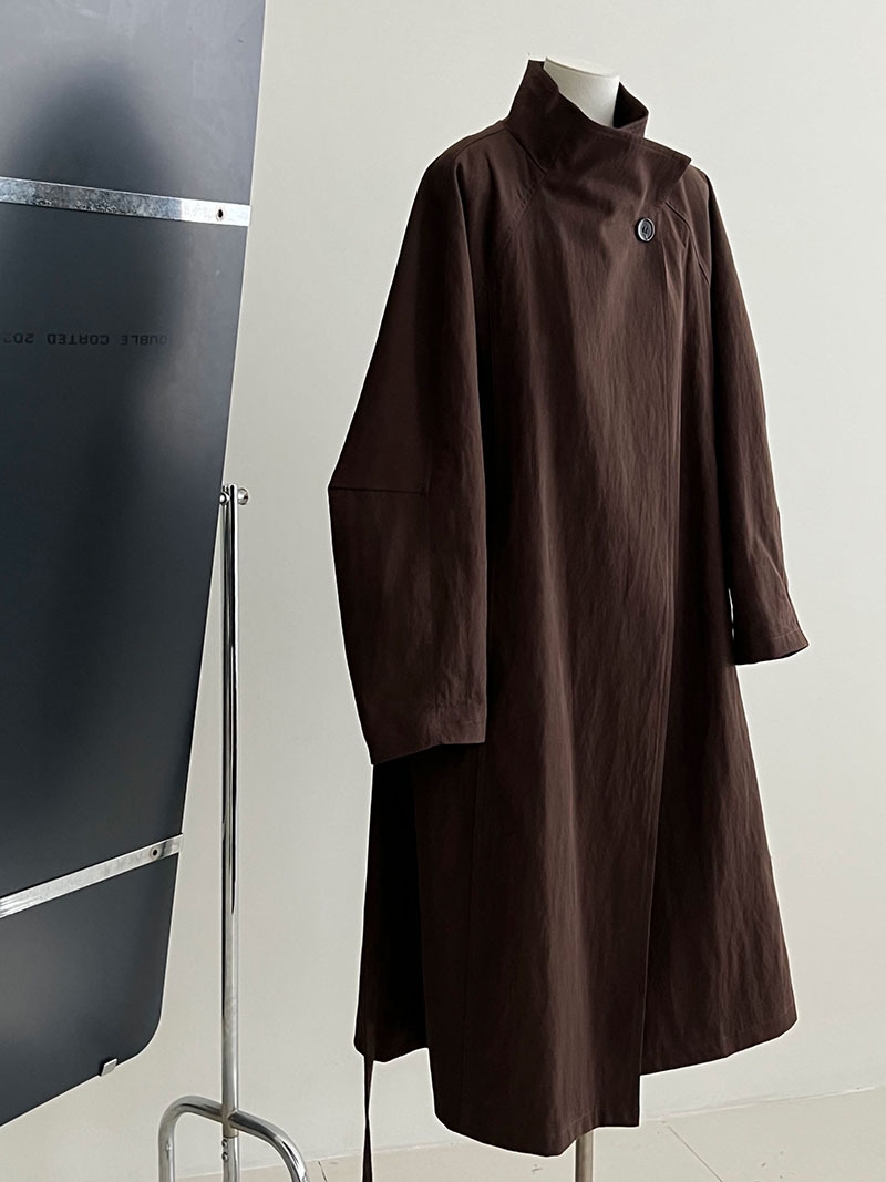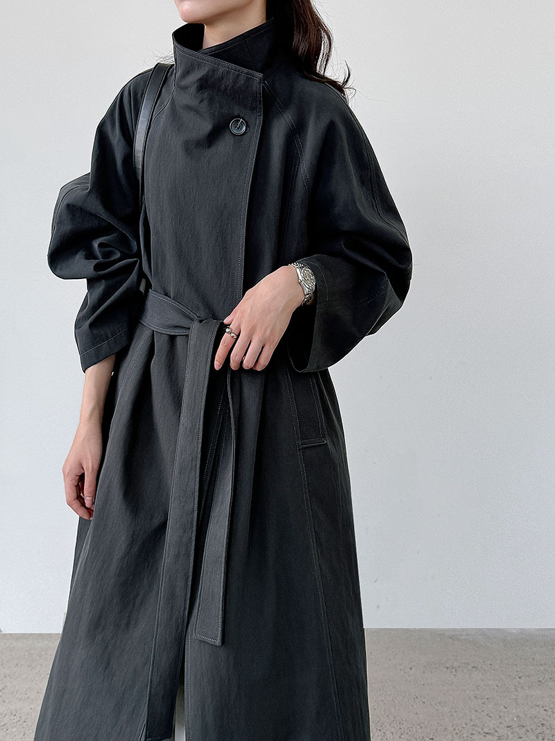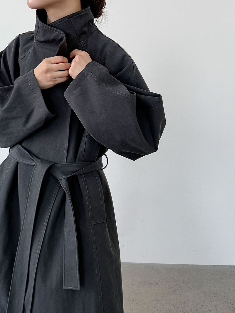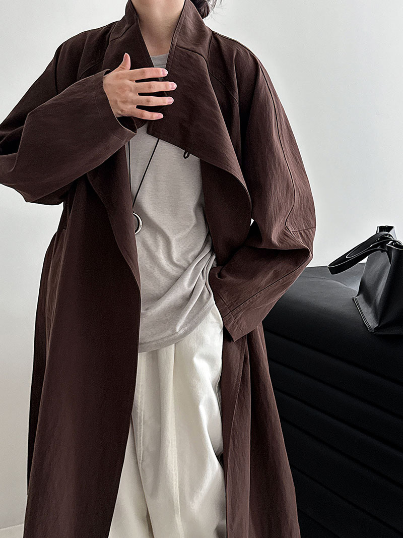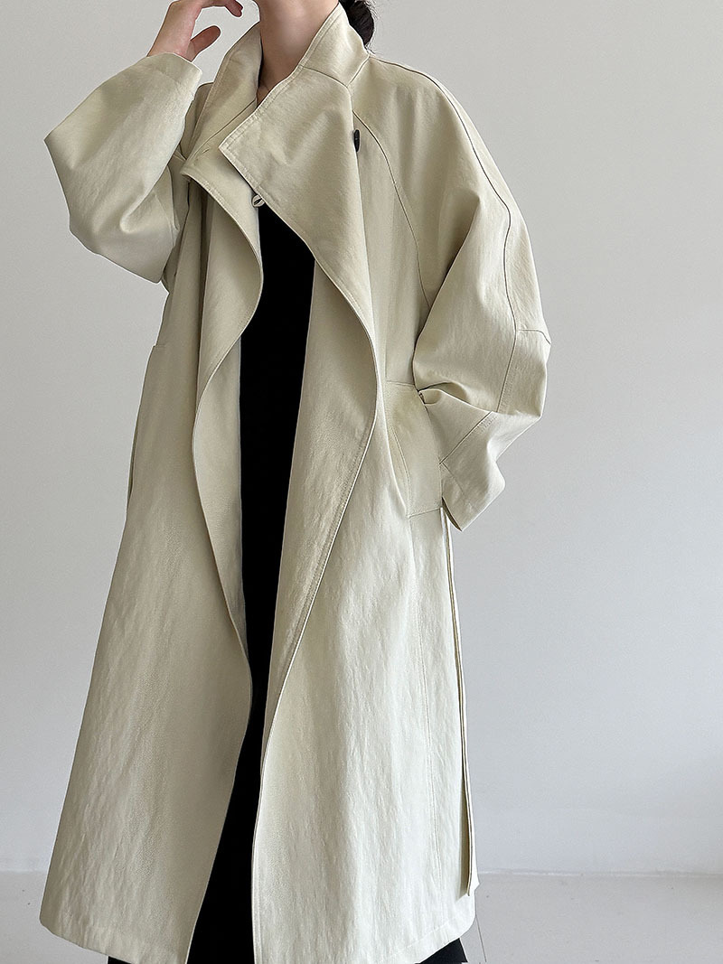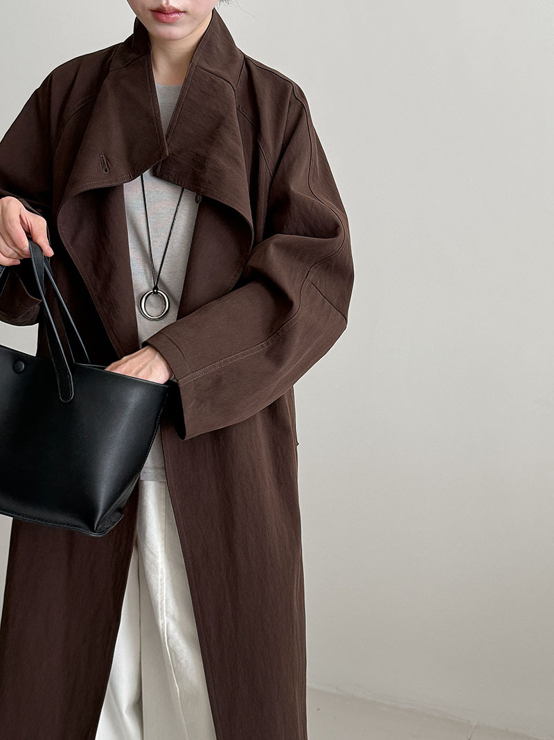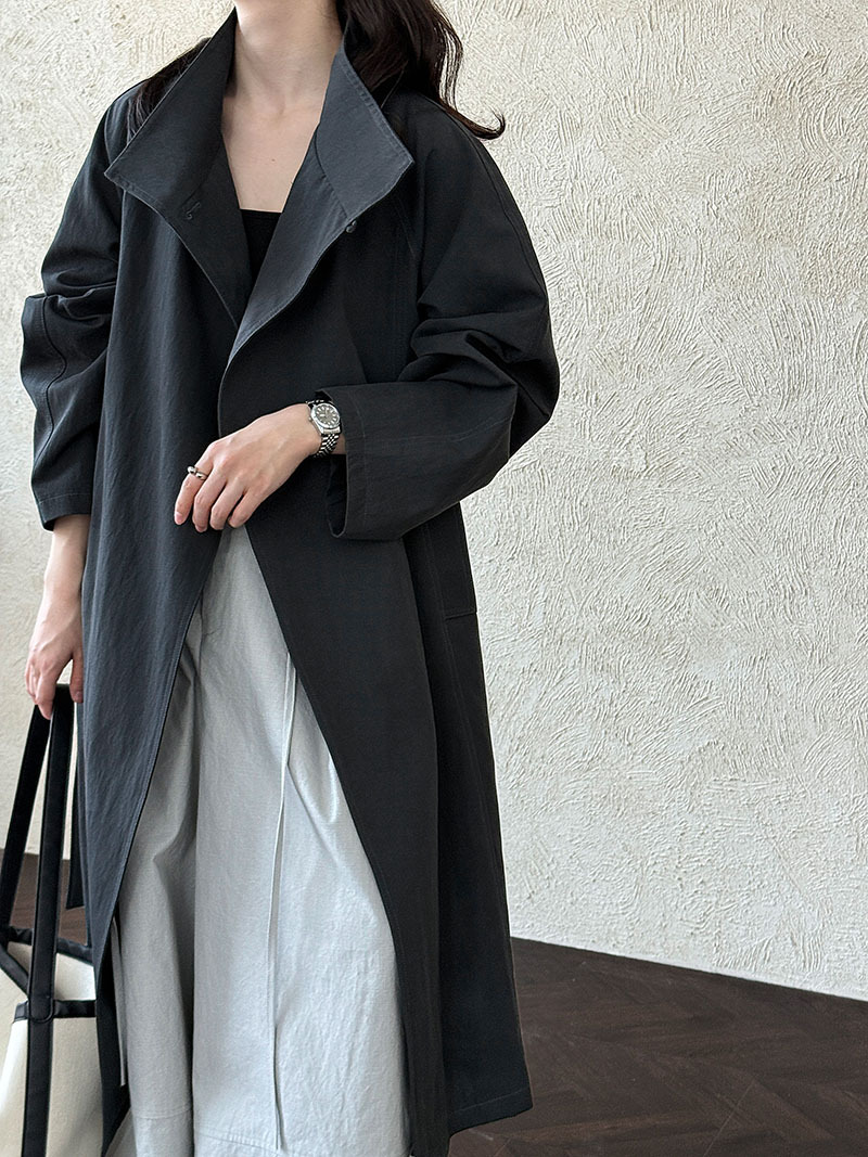 【商品名】【アウター】春 秋 オーバーシルエット ミディアムロング丈 シングルボタン トレンチコート 【JZシリーズ】