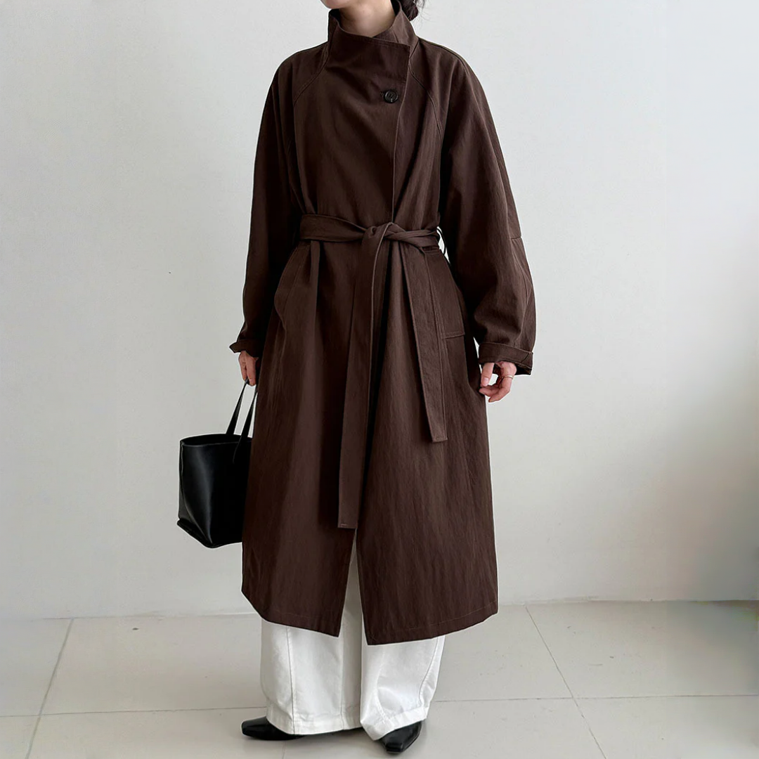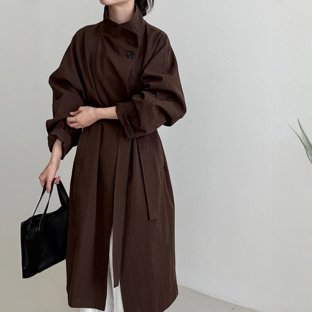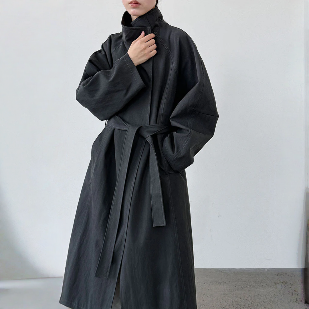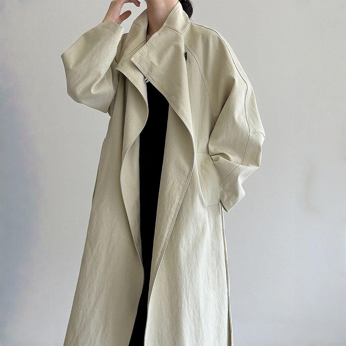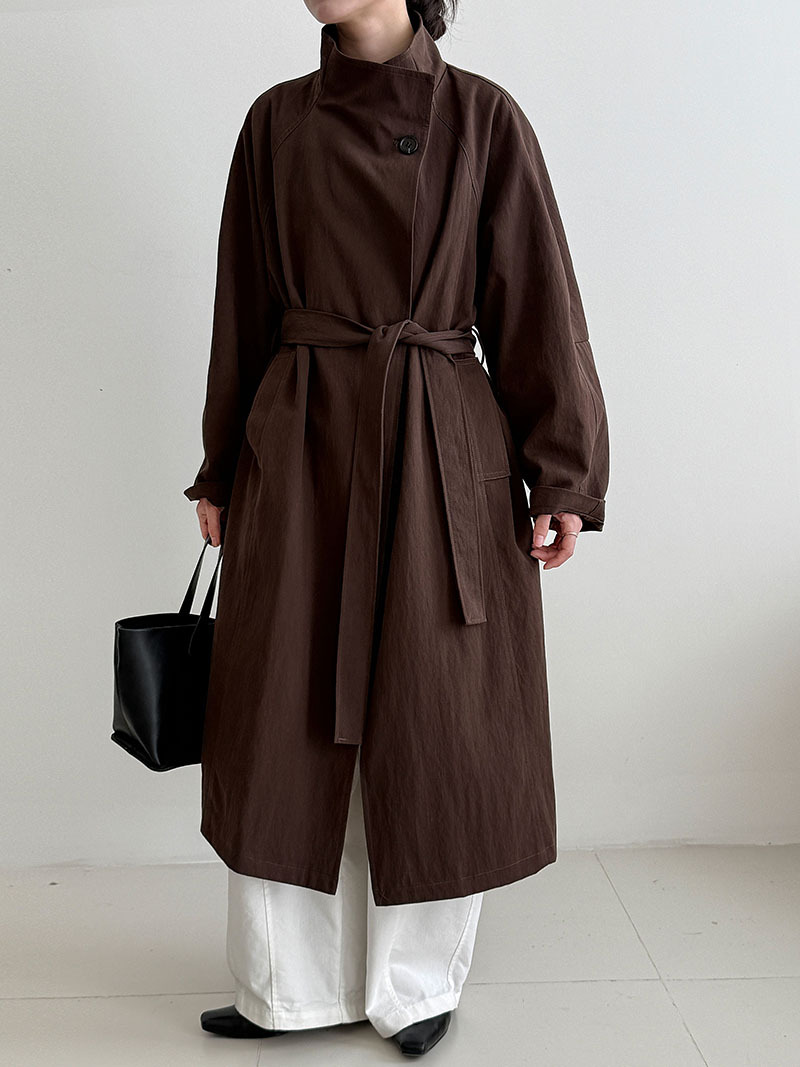 【商品名】【アウター】春 秋 オーバーシルエット ミディアムロング丈 シングルボタン トレンチコート 【JZシリーズ】