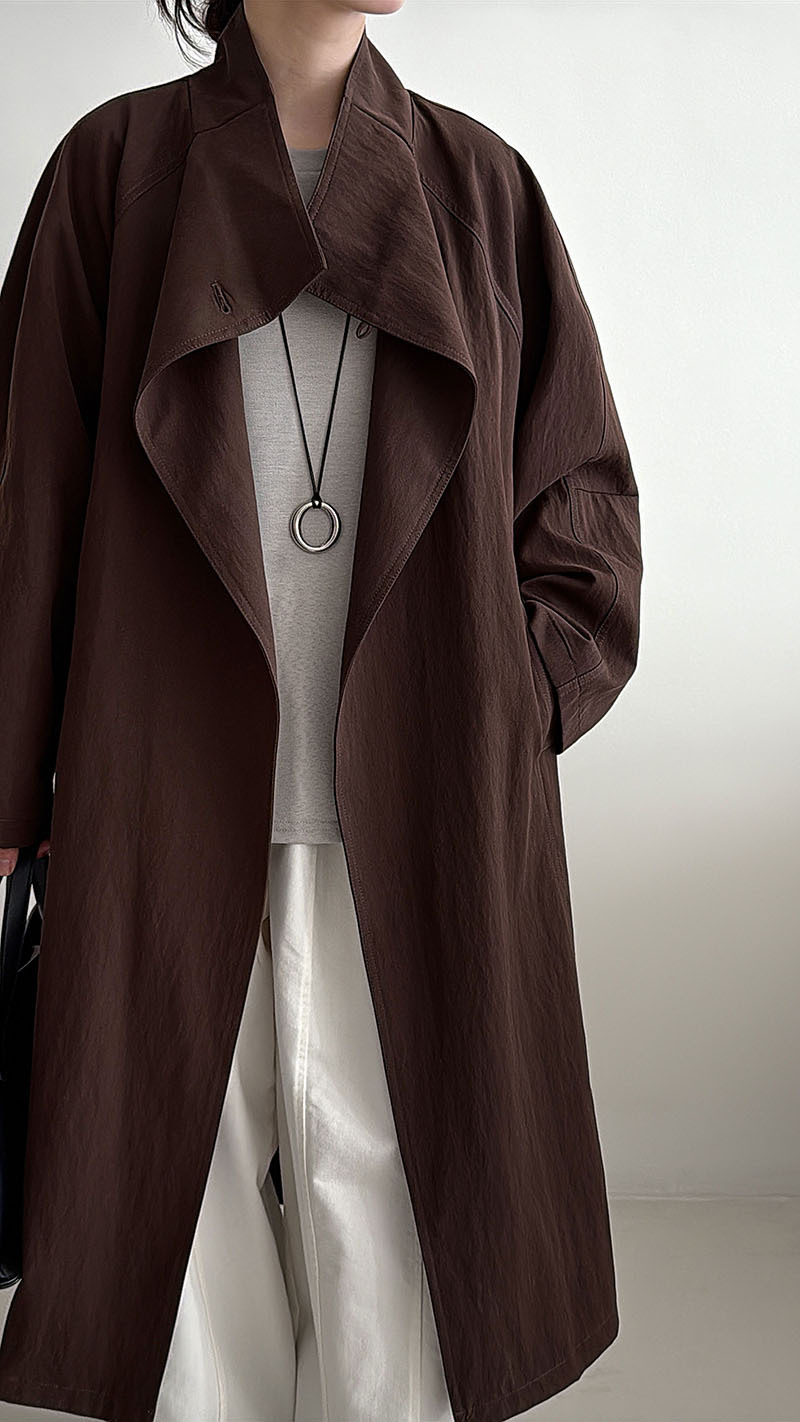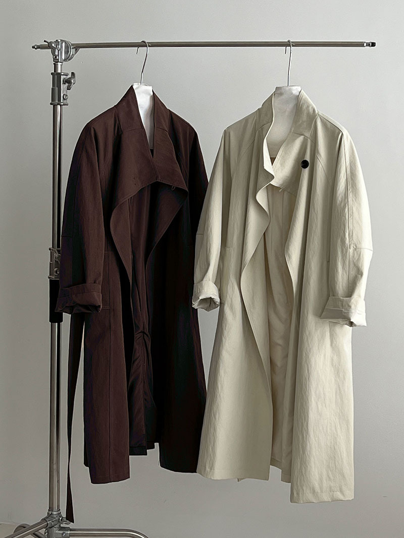 【アウター】春 秋 オーバーシルエット ミディアムロング丈 シングルボタン トレンチコート 【JZシリーズ】