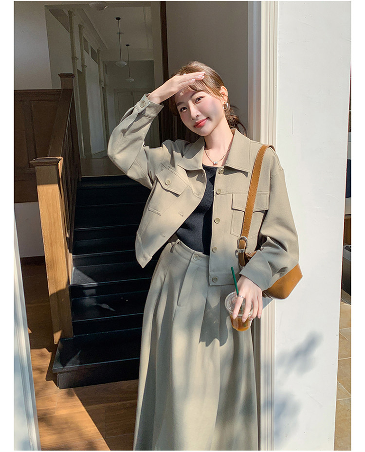2点セット!【セットアップ】韓国風 超可愛い カジュアル ワークスタイル 高級感 気質 ジャケット+スカート 上下セット【JZシリーズ】