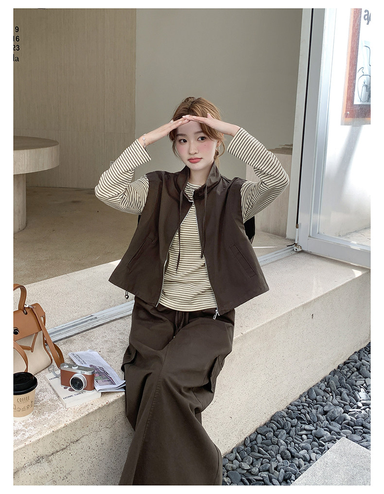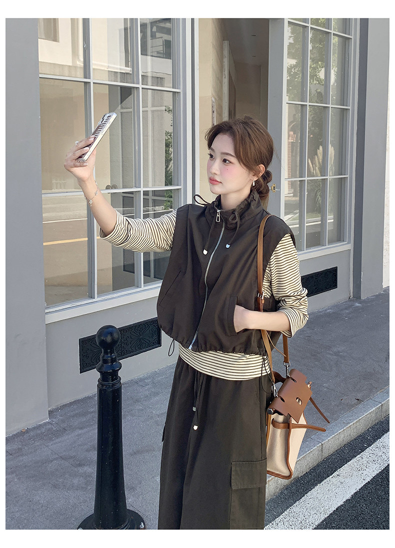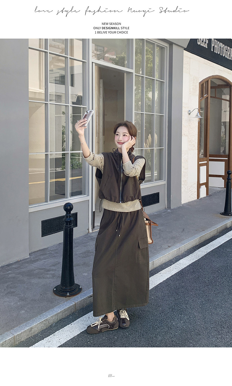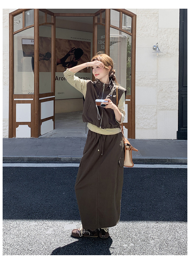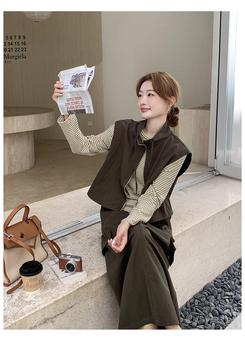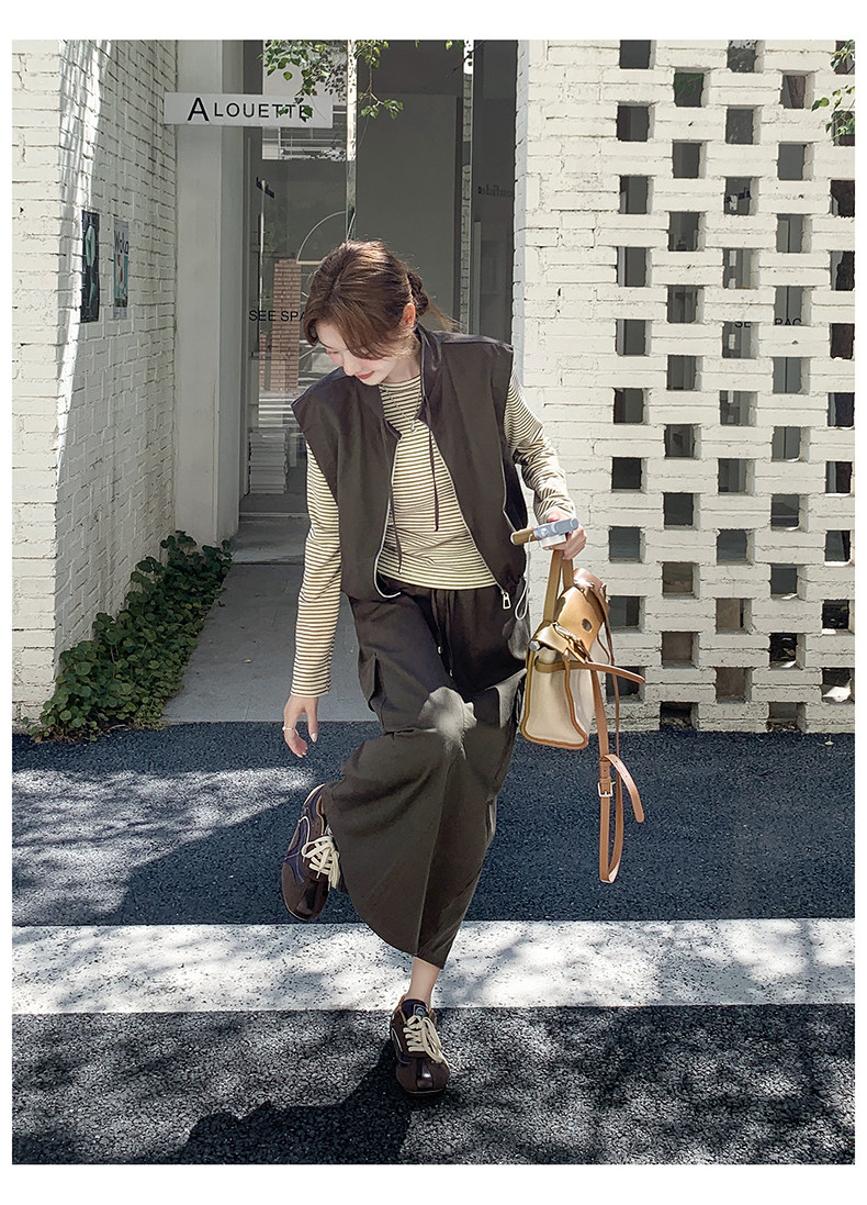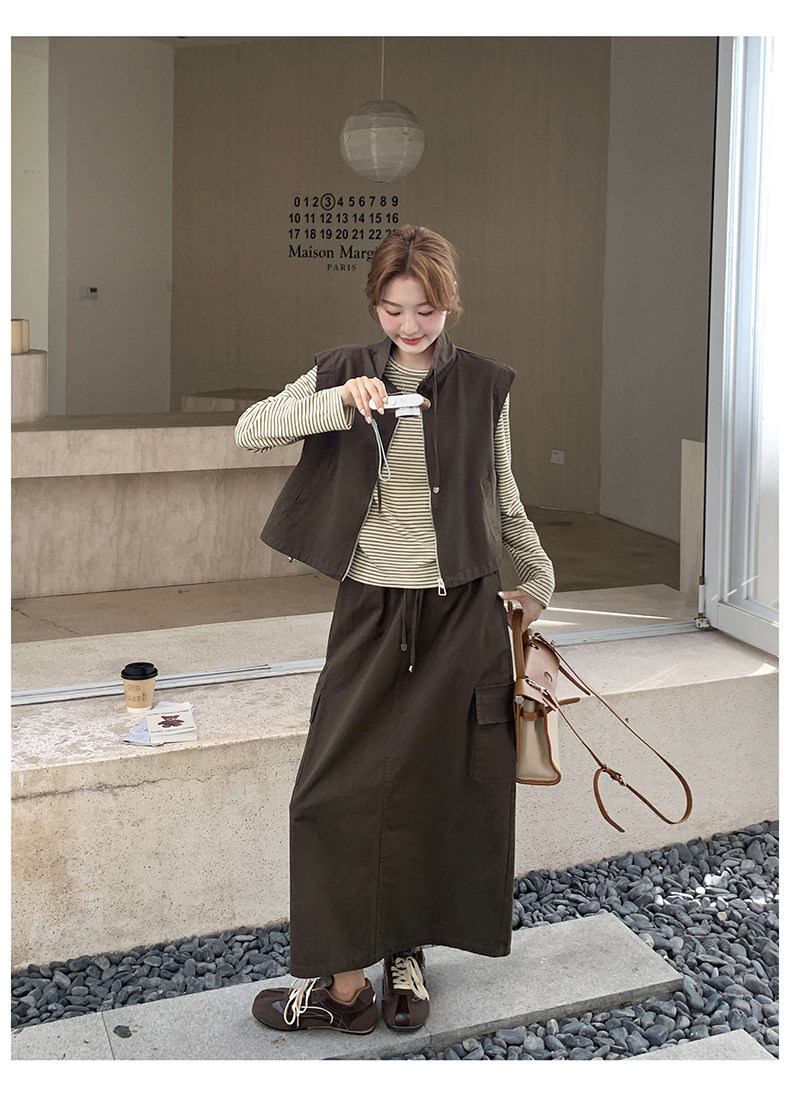 【商品名】3点セット!【セットアップ】マラード風 ベスト+ストライプタイトスカート+ロンT 上下セット レディース【JZシリーズ】